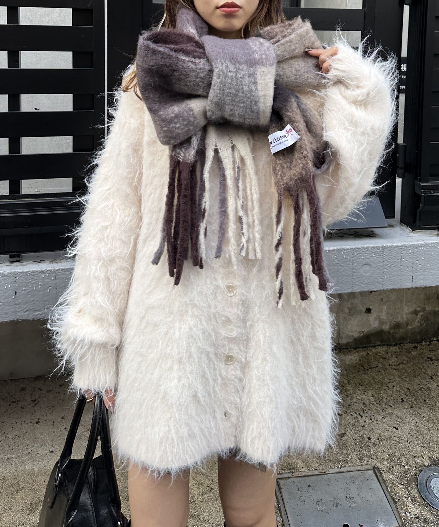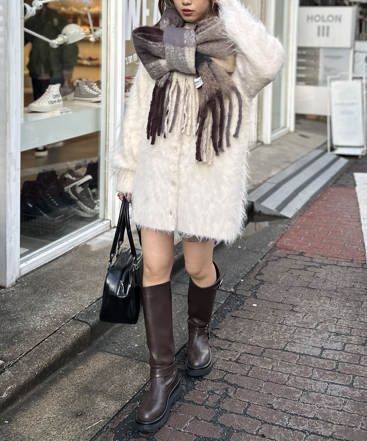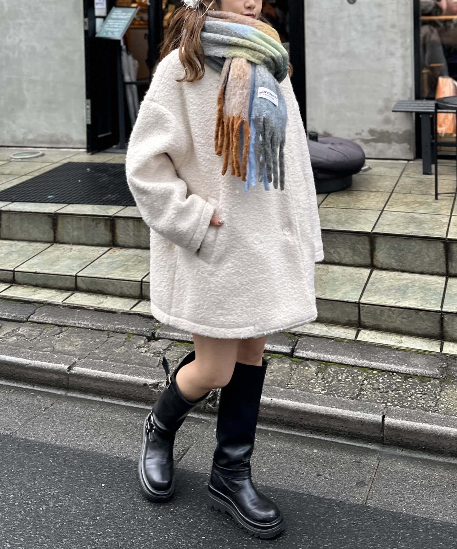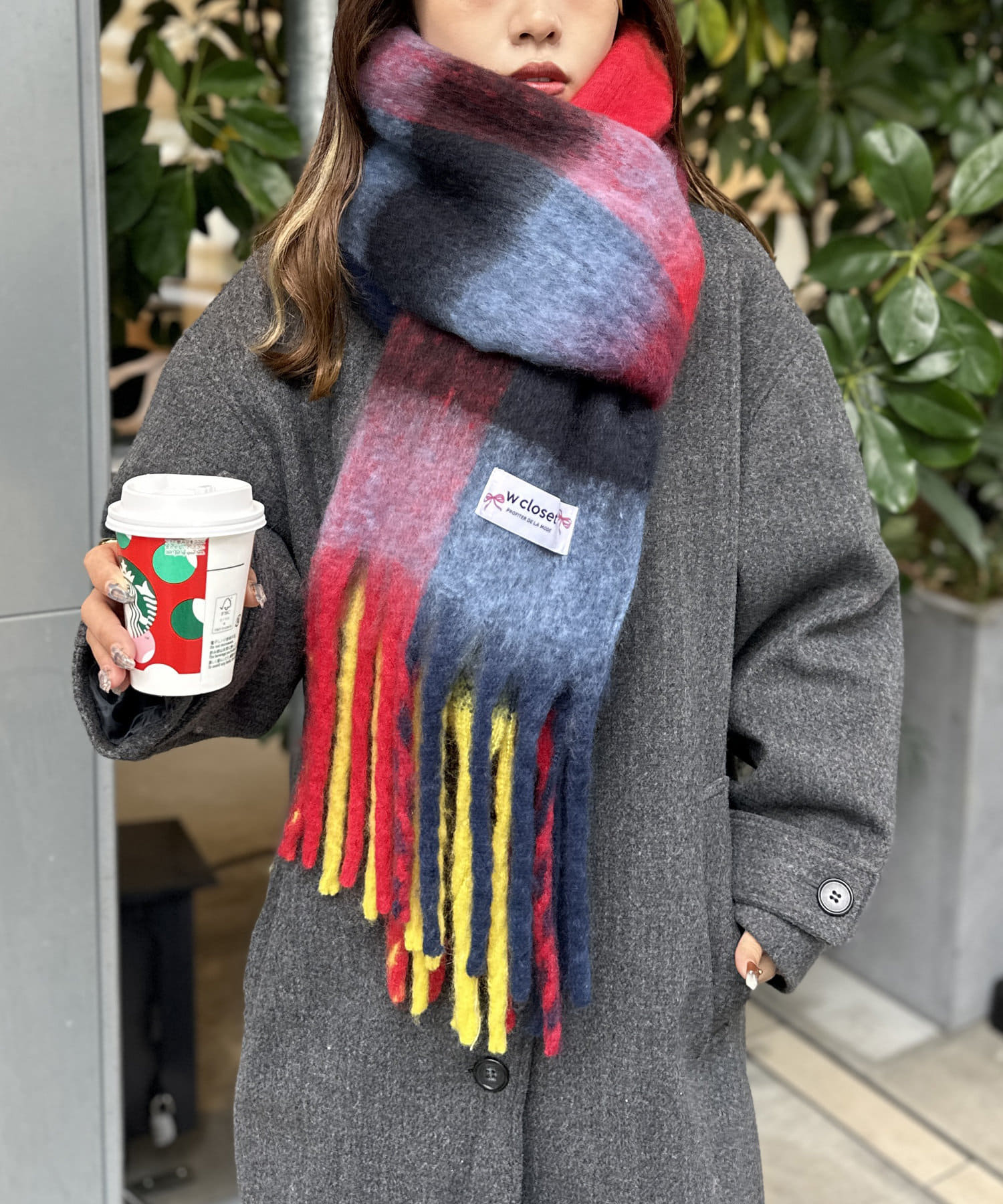 ・顔まわりを覆うボリュームのあるマフラーは小顔効果も◎