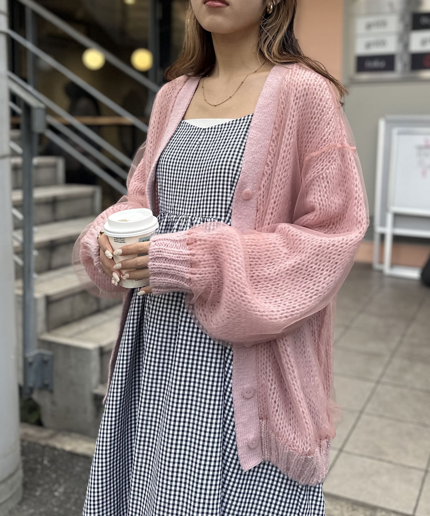 TOP > w closet > レディース > トップス > カーディガン/ボレロ > 【4色展開】チュールニットカーディガン