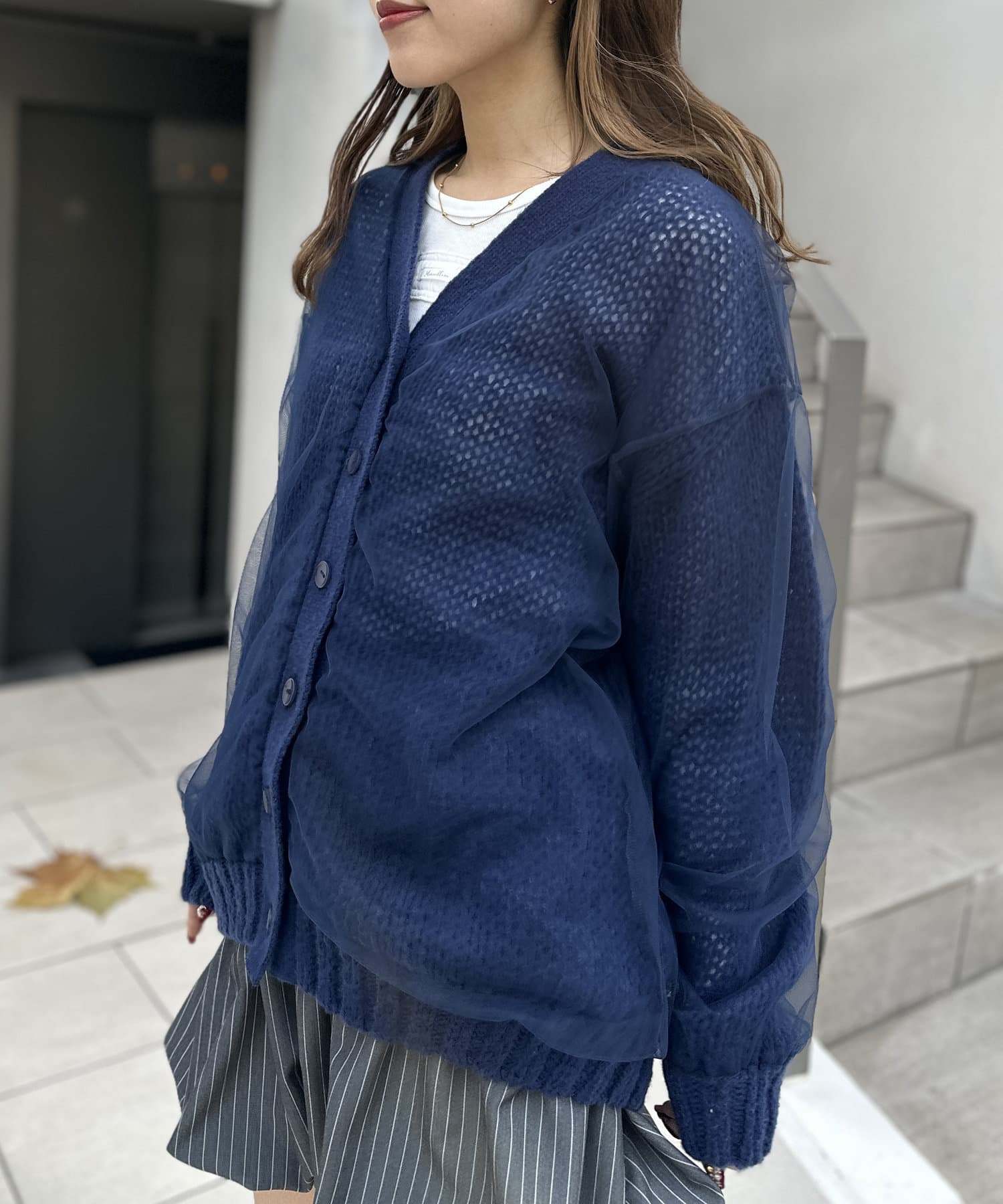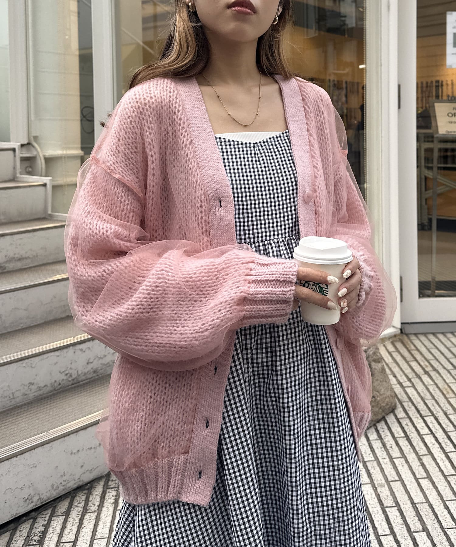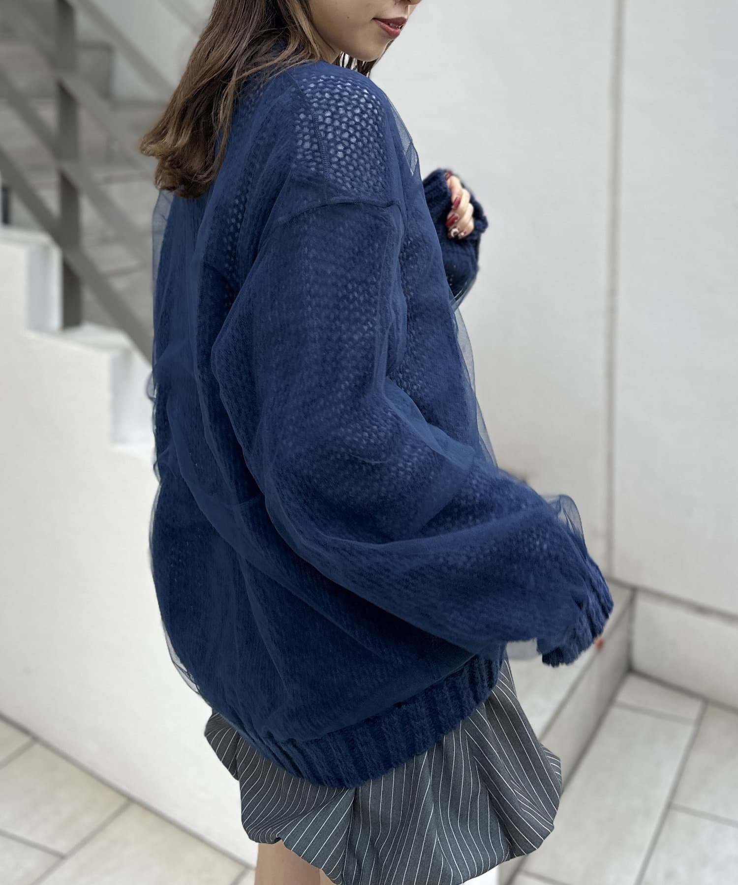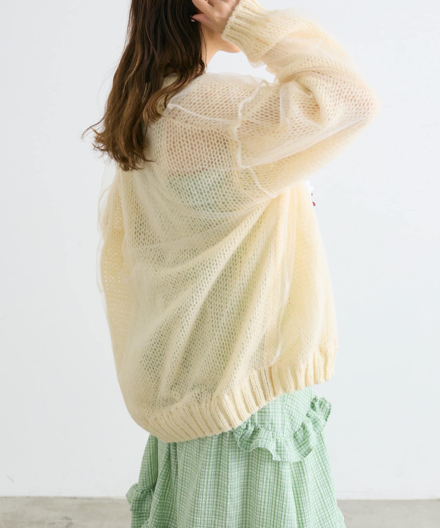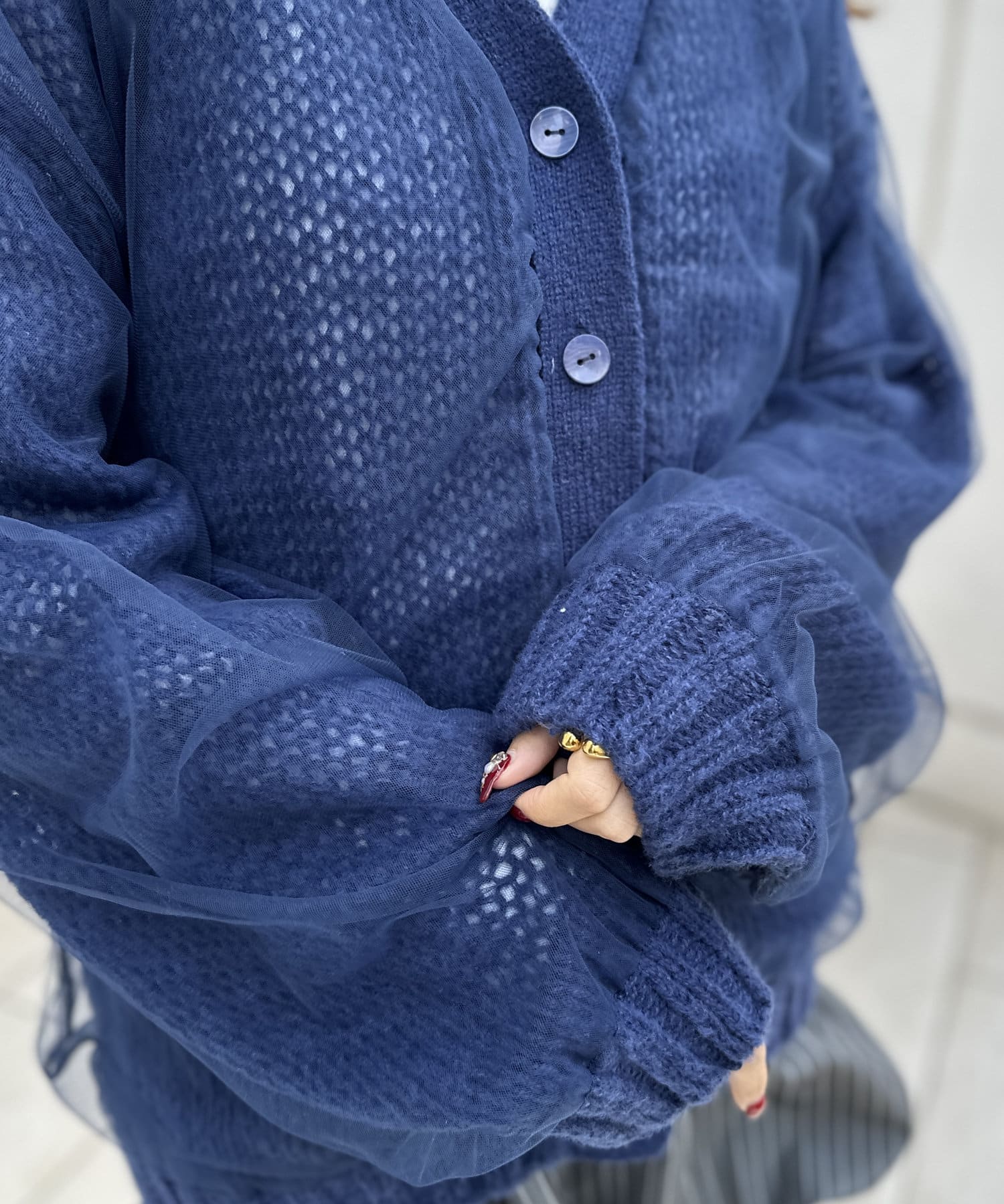 ・ニットカーデにチュールを重ねた繊細なデザイン
