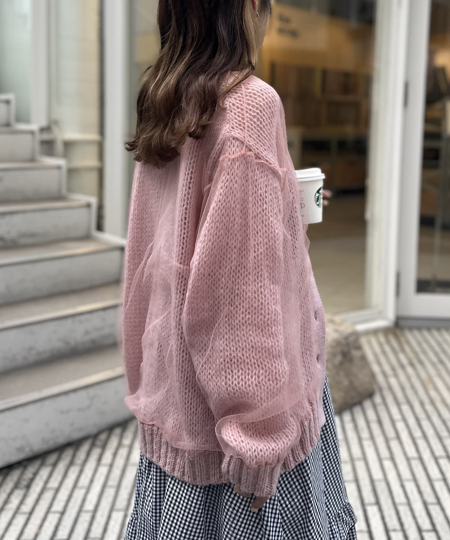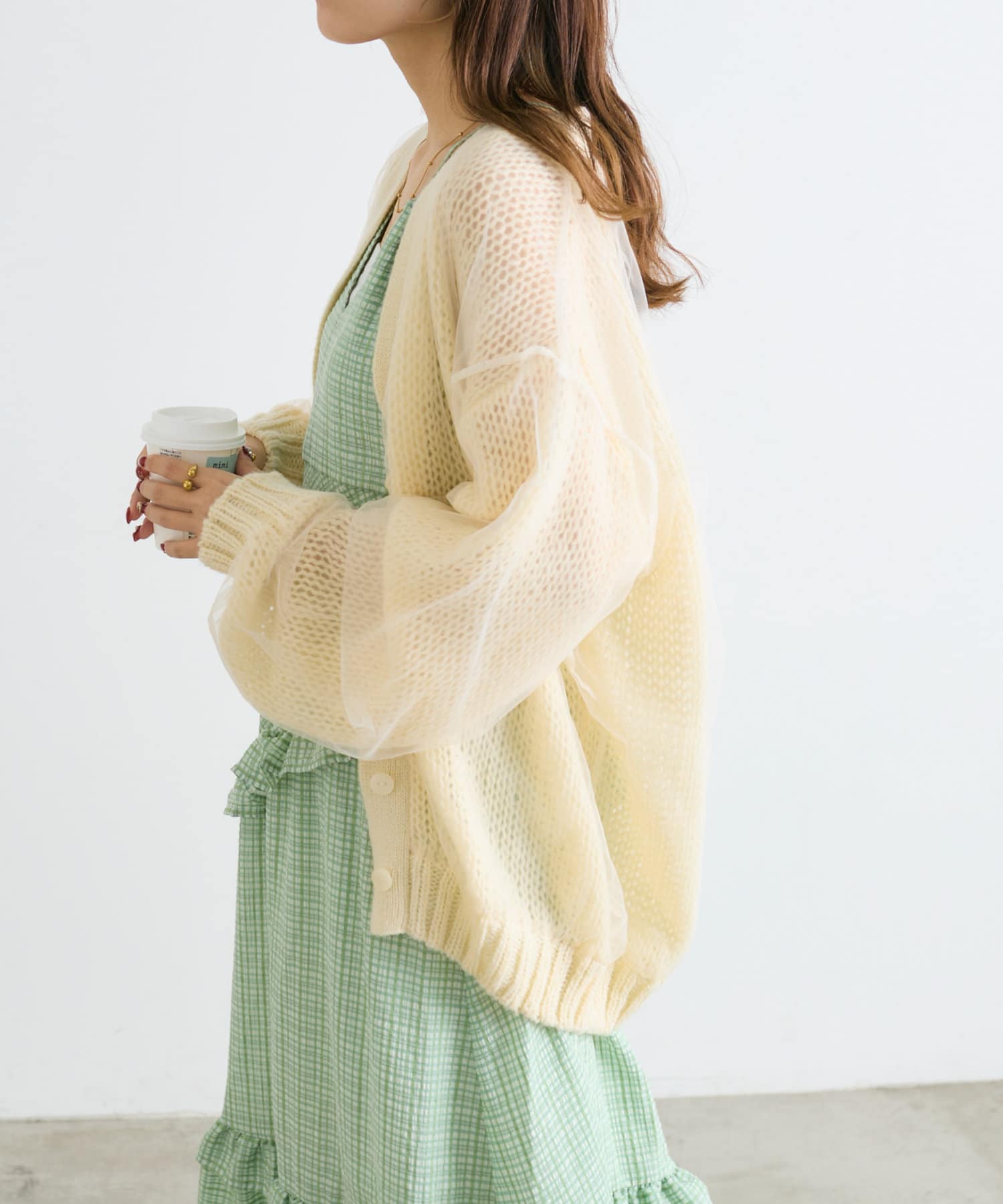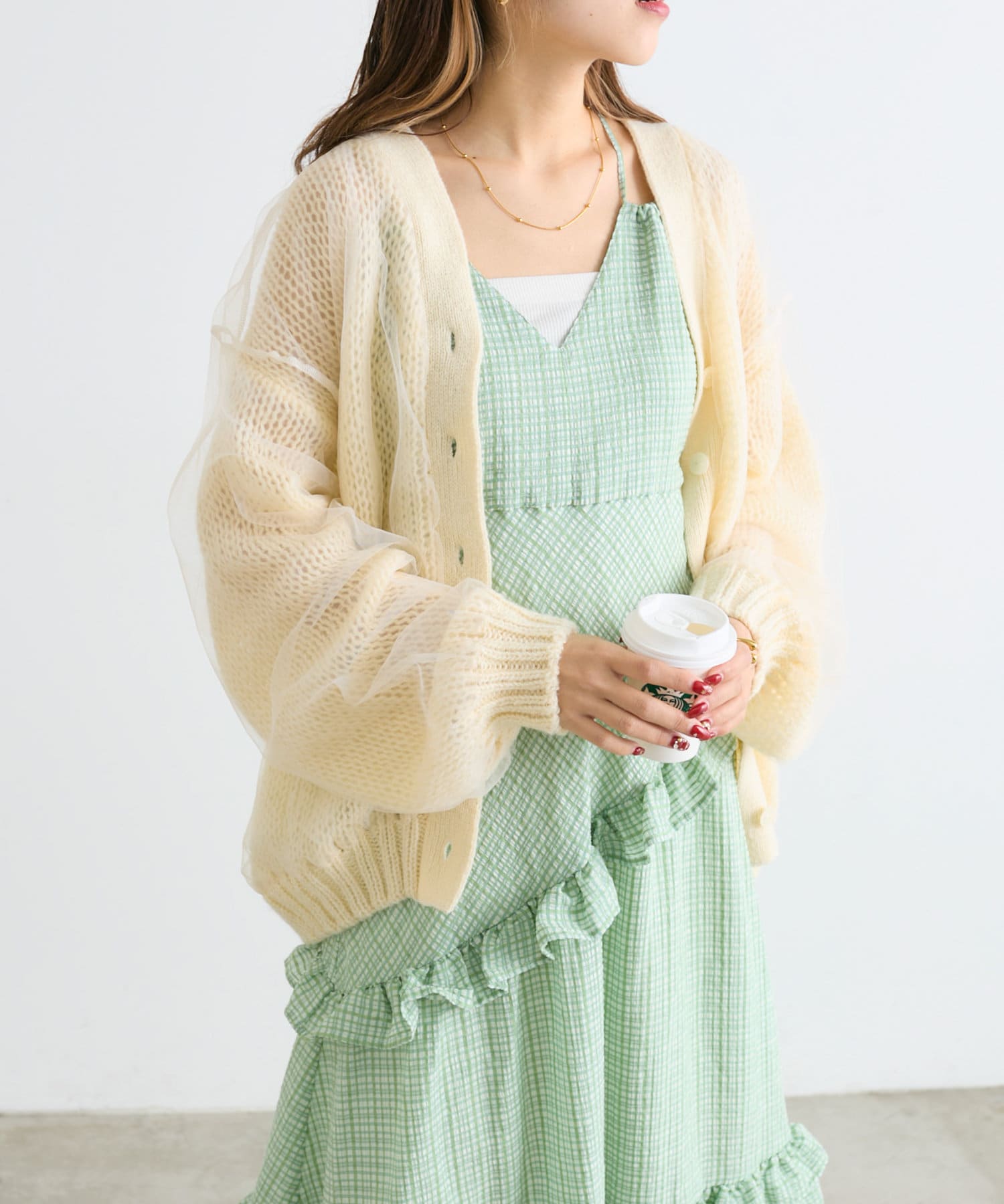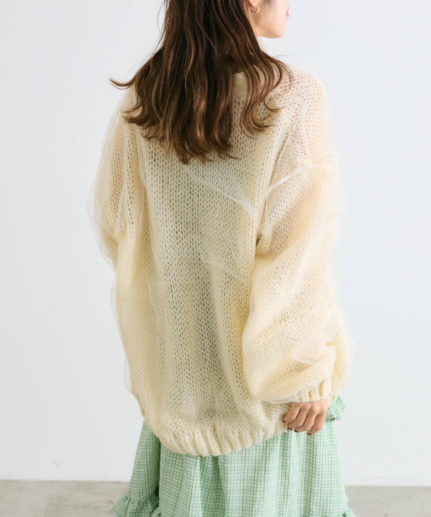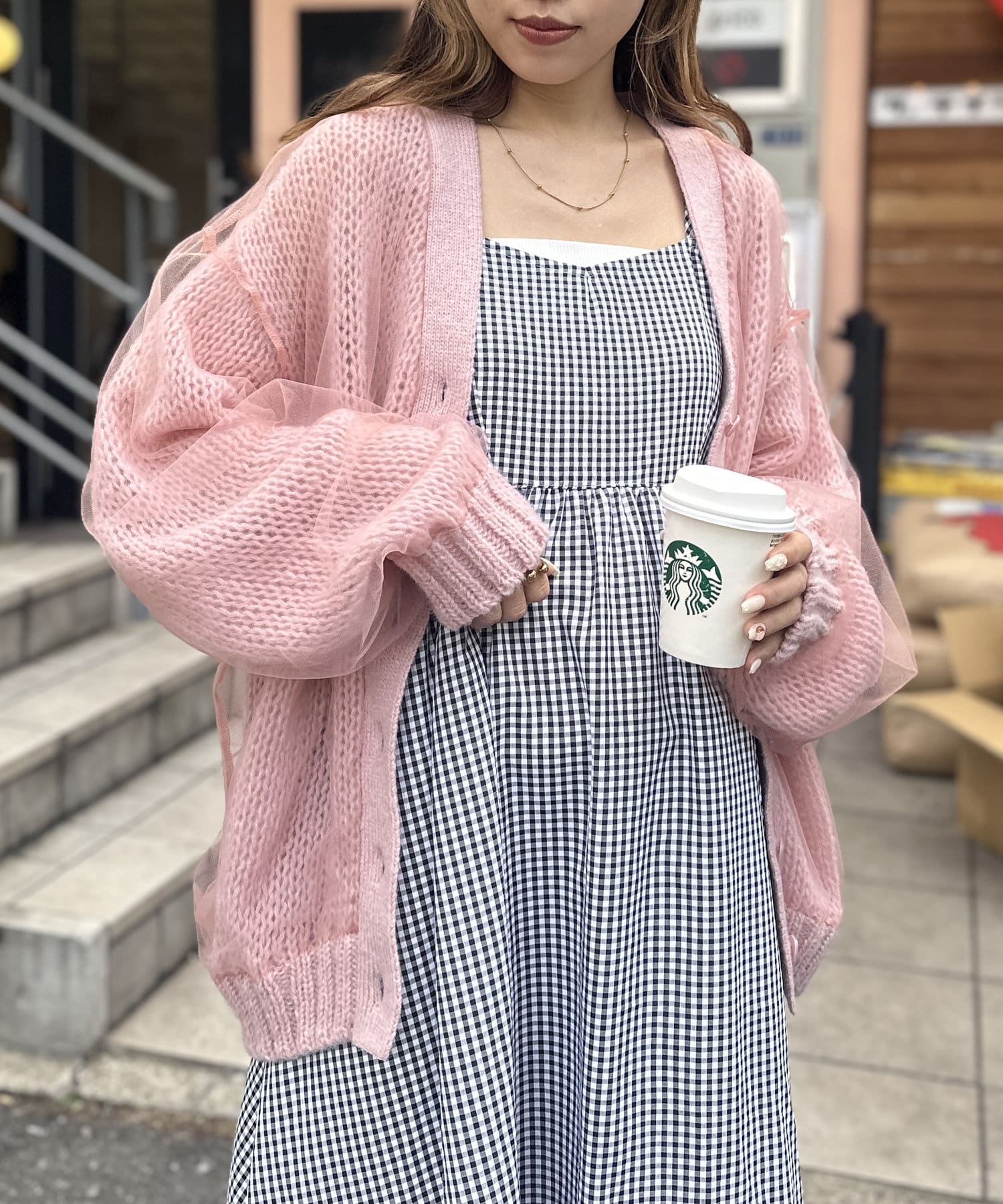 ・ニットカーデにチュールを重ねた繊細なデザイン