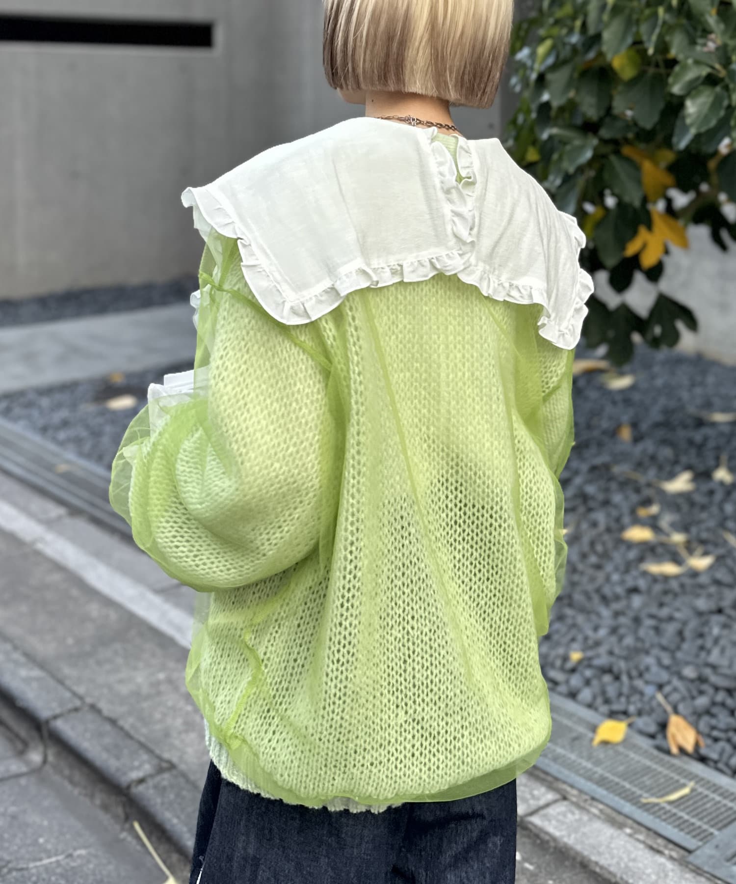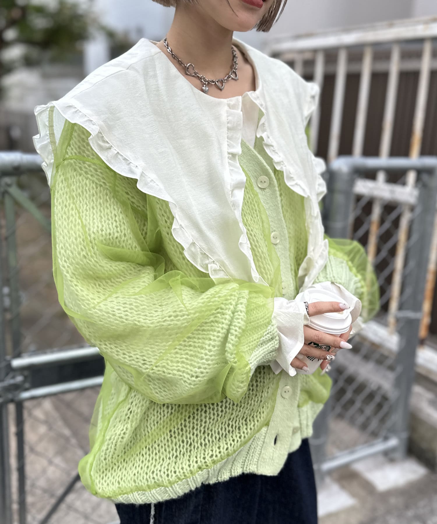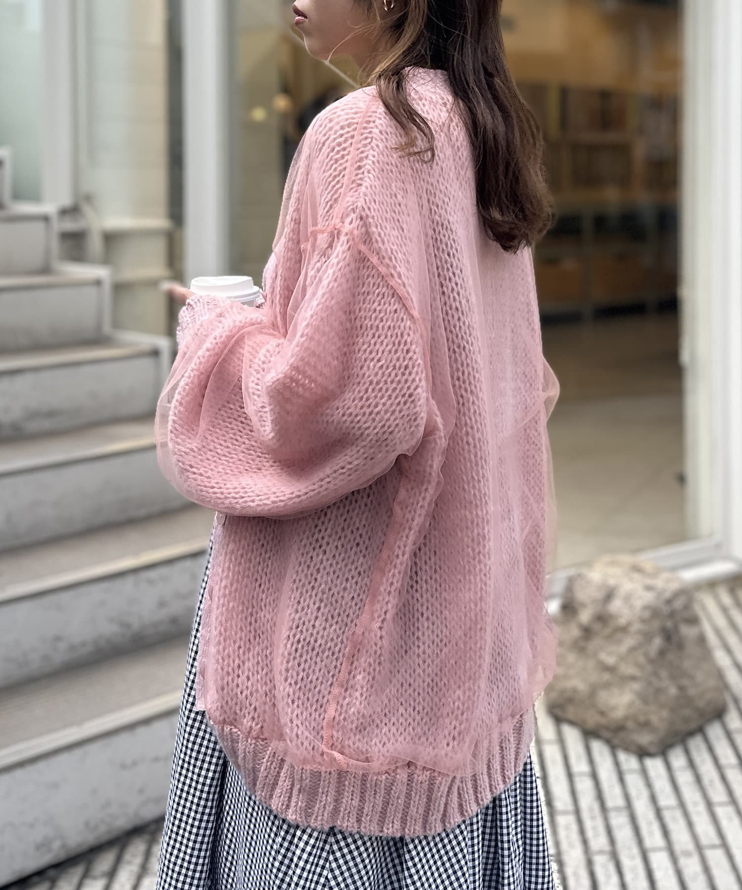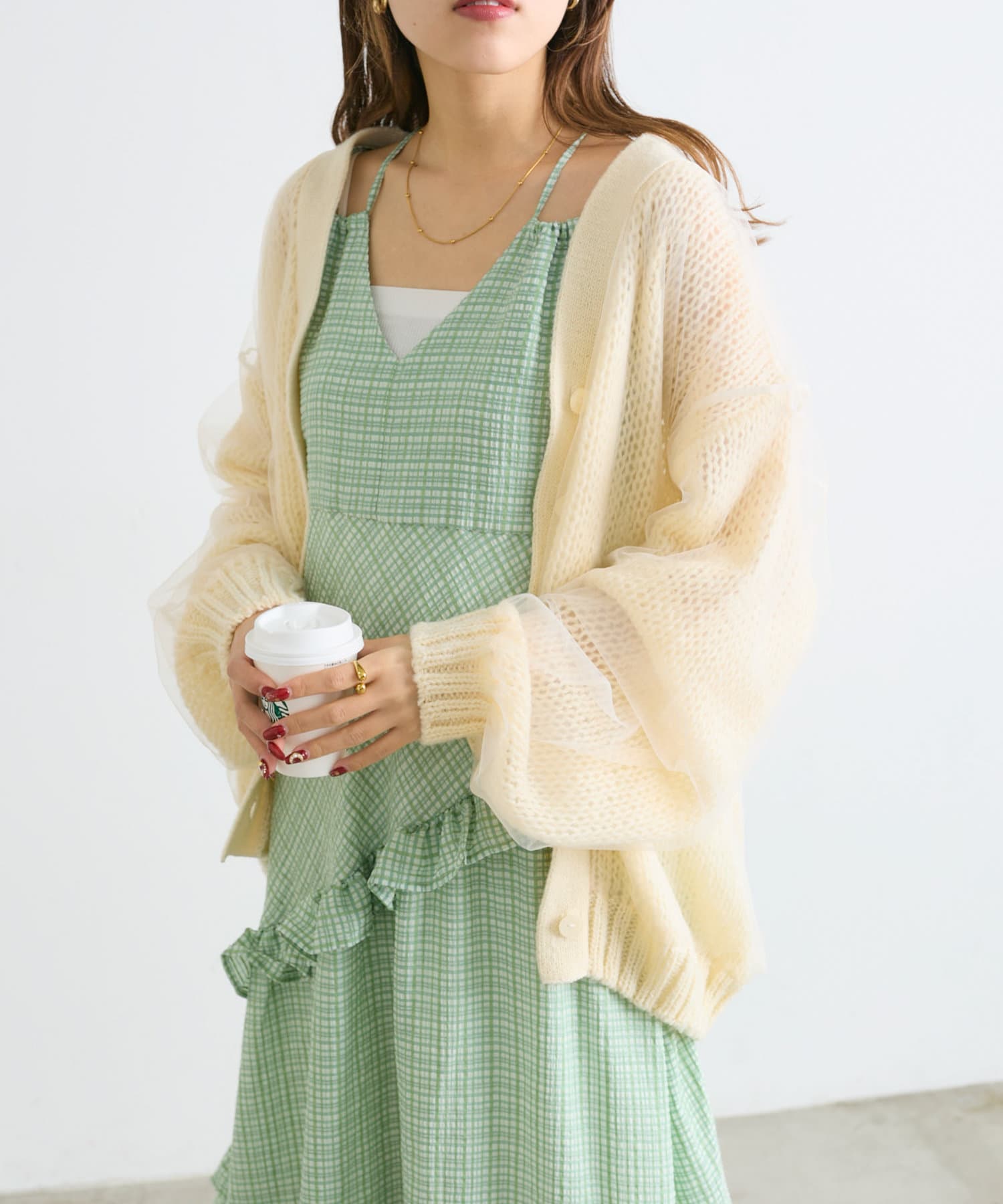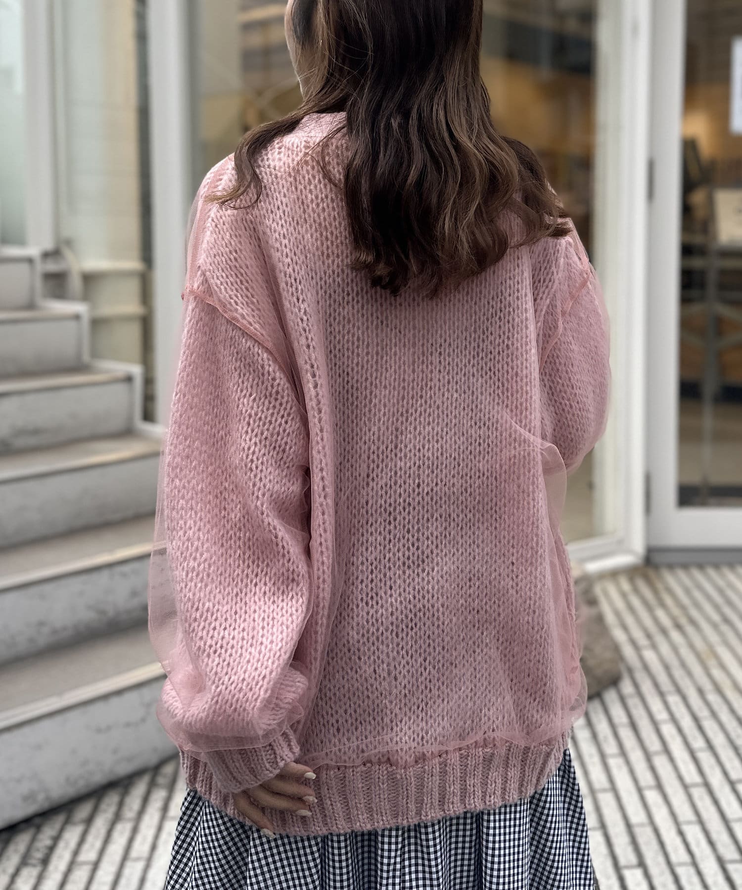 ・ニットカーデにチュールを重ねた繊細なデザイン