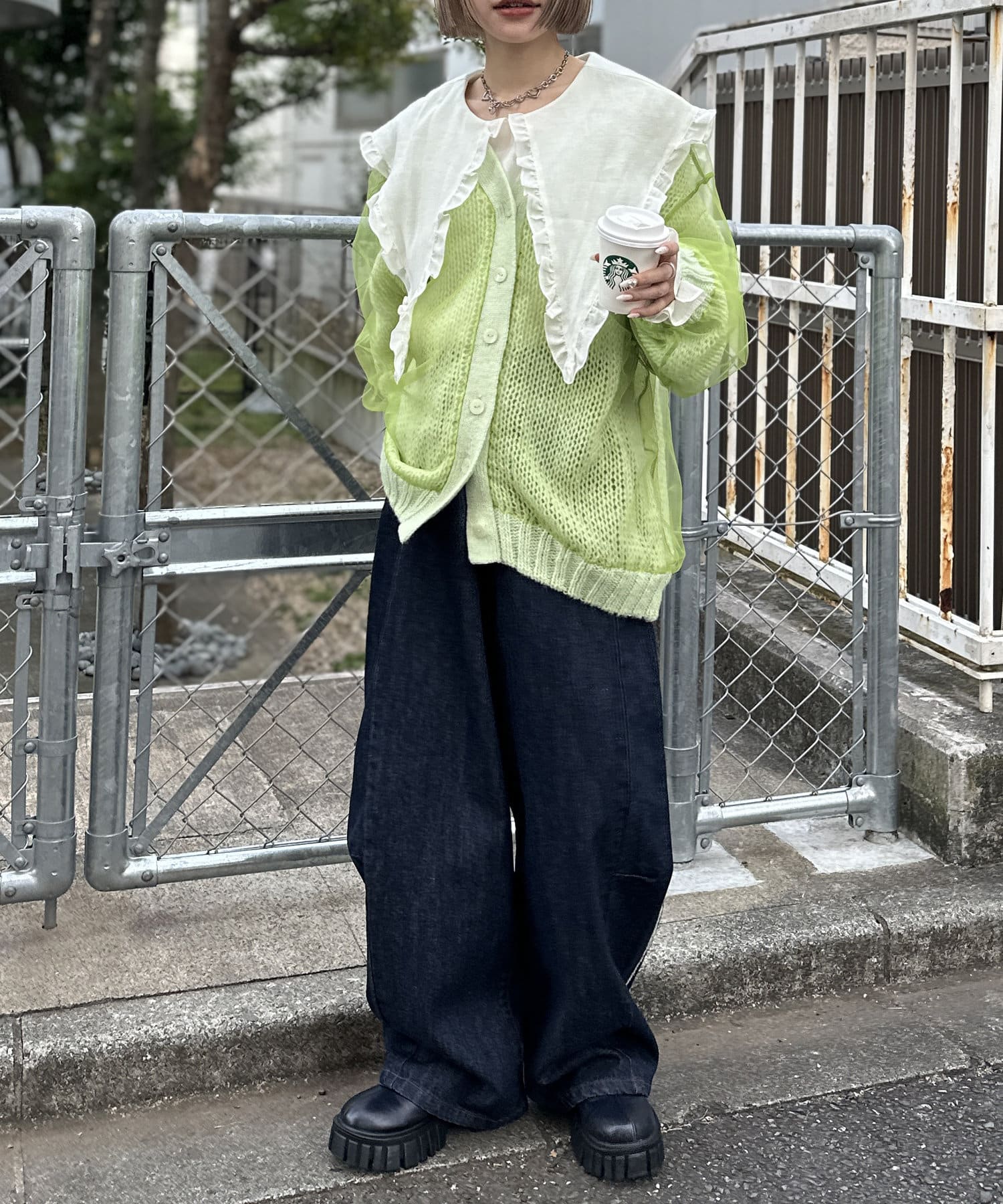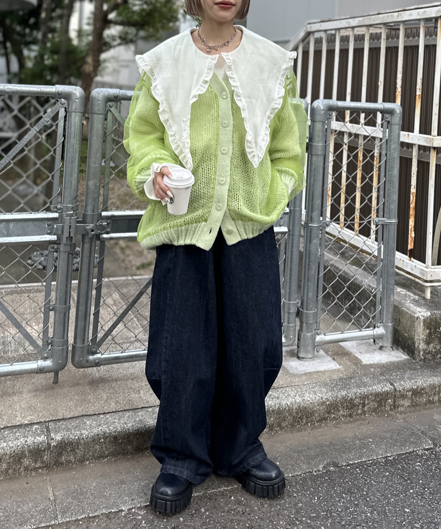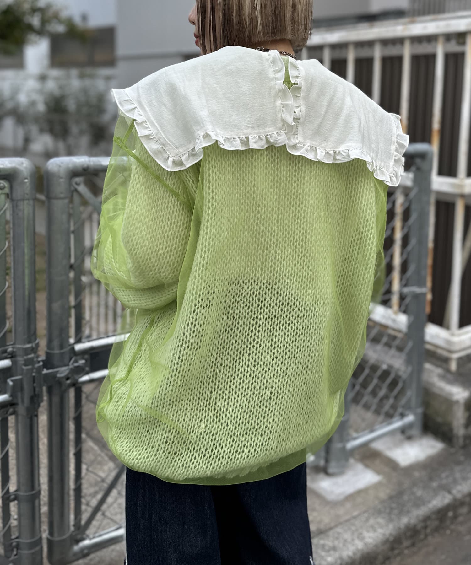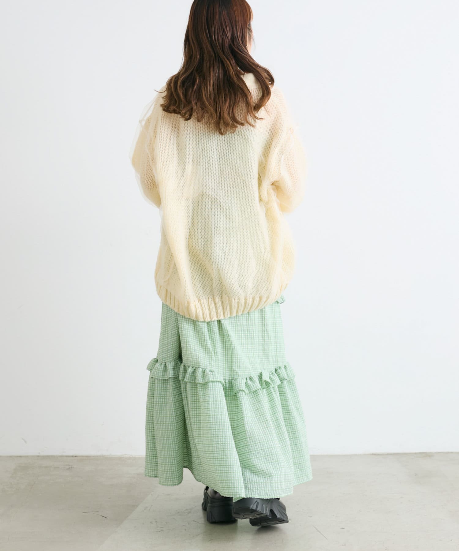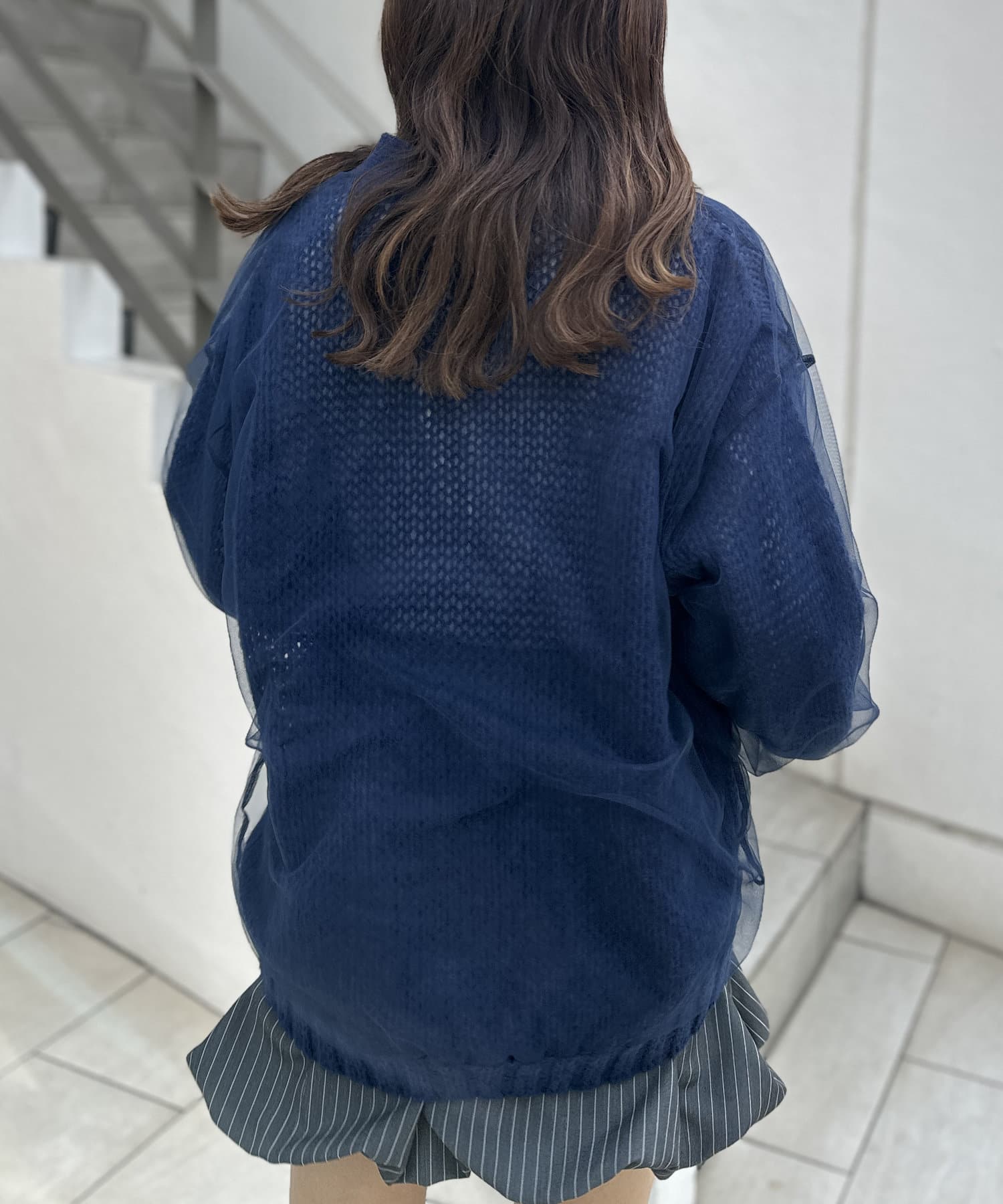 ・ニットカーデにチュールを重ねた繊細なデザイン