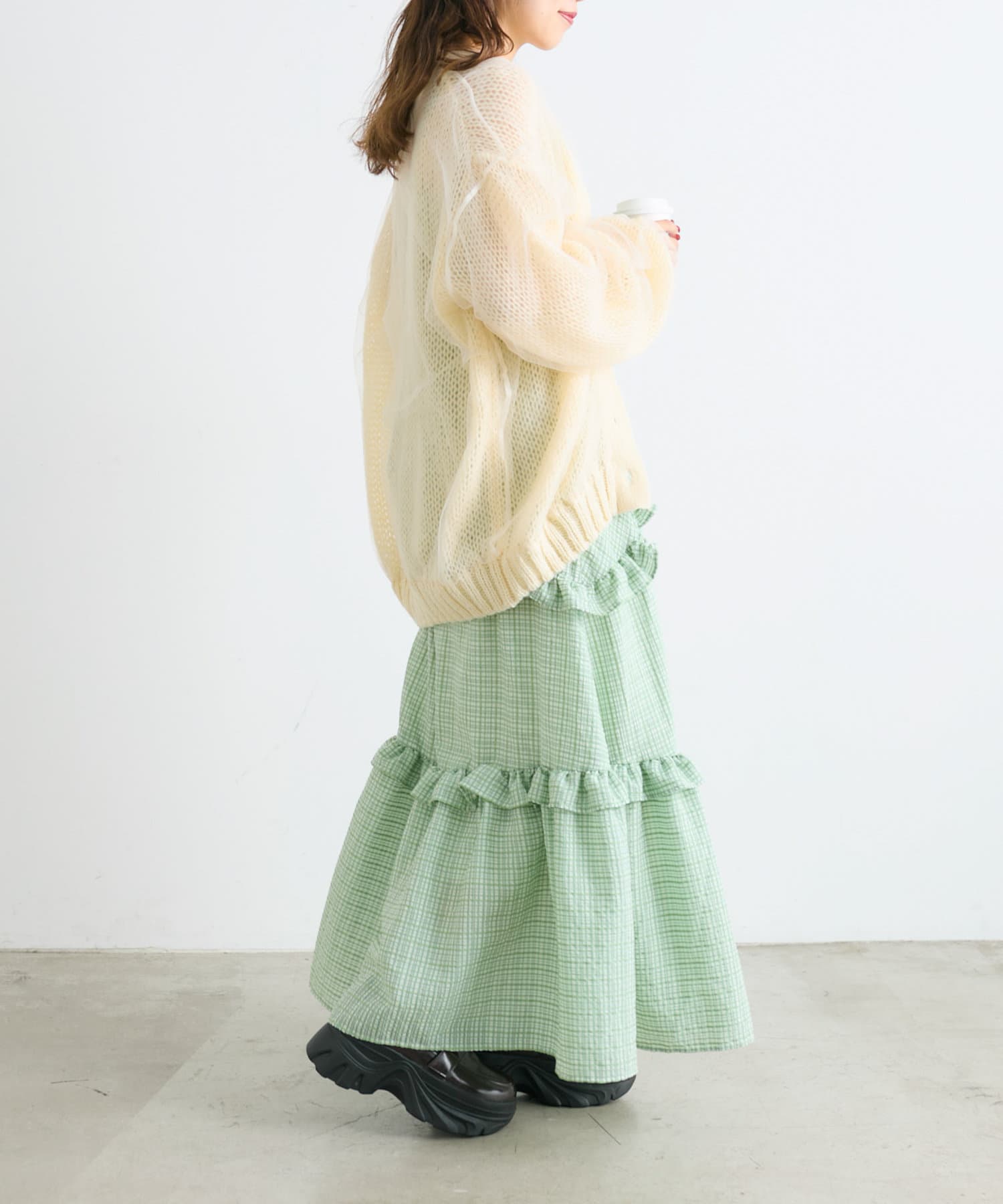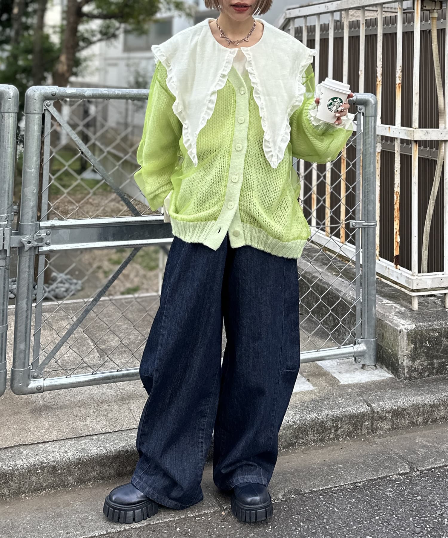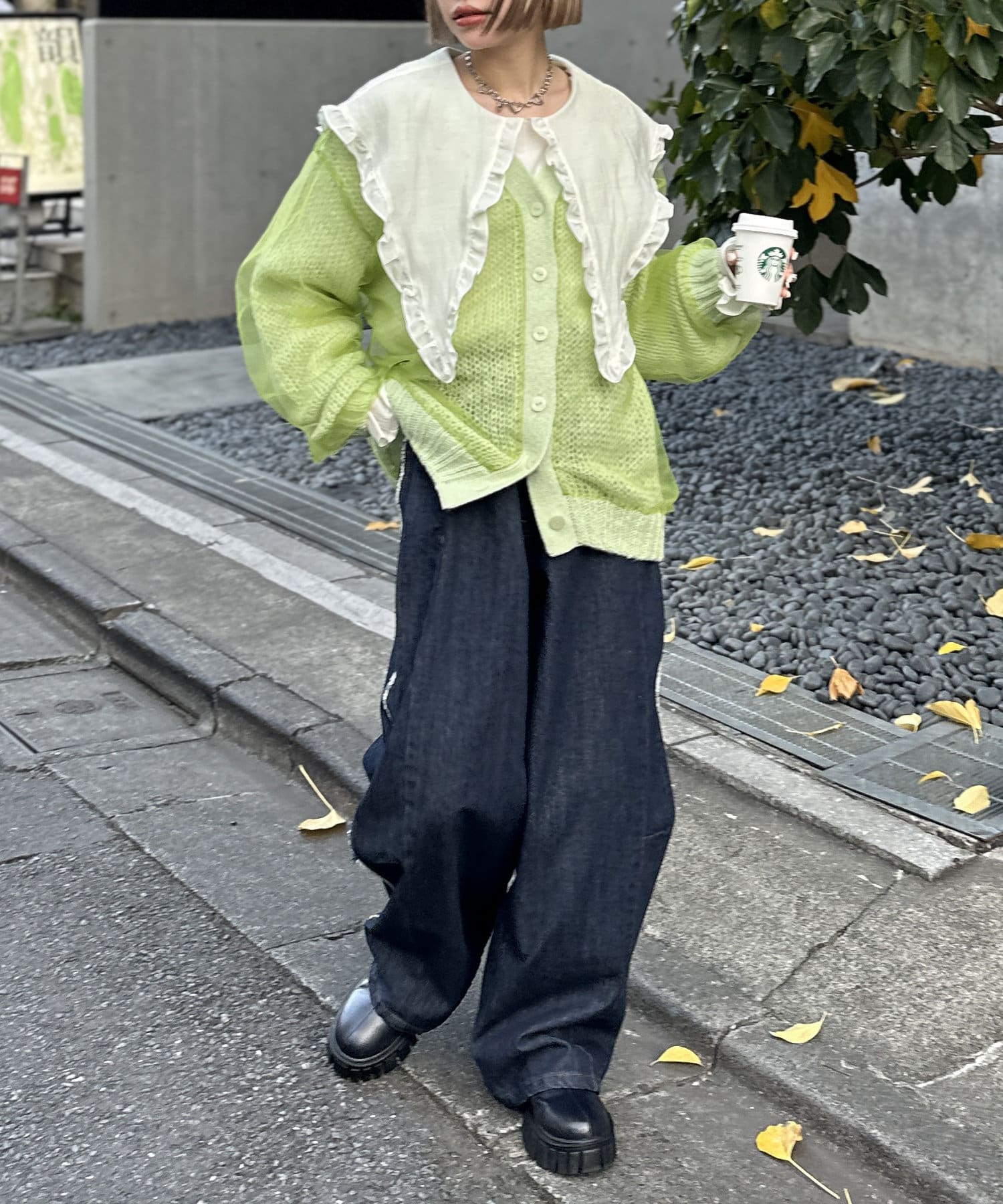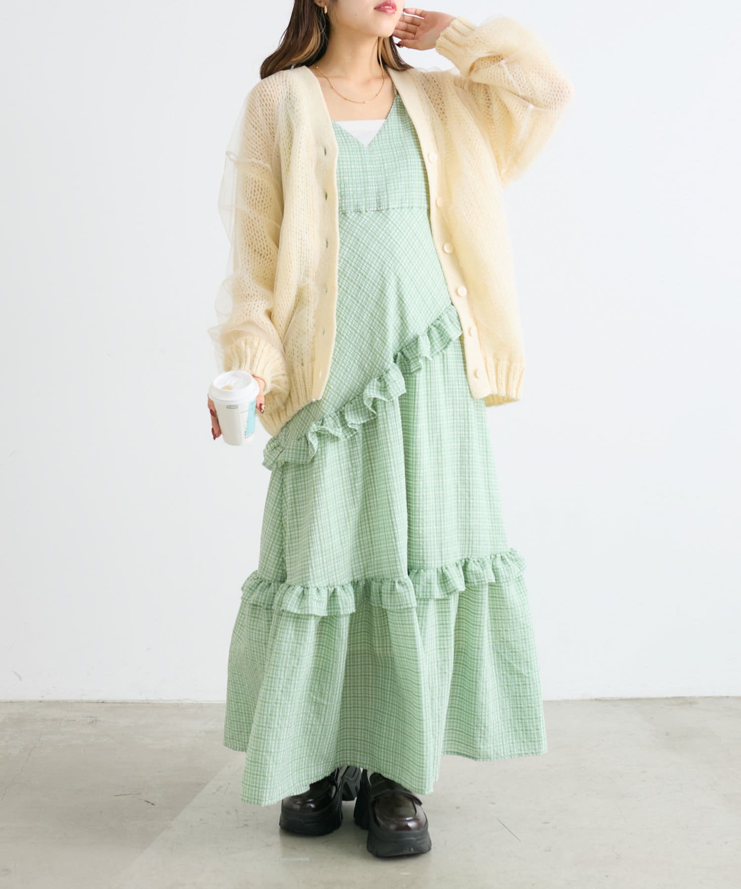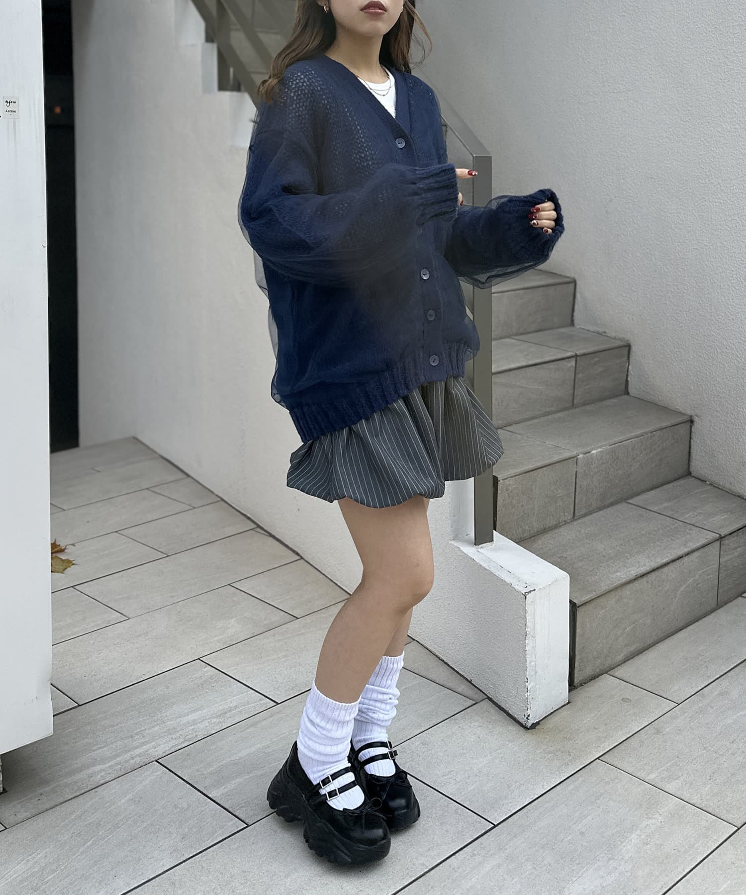 ・ニットカーデにチュールを重ねた繊細なデザイン