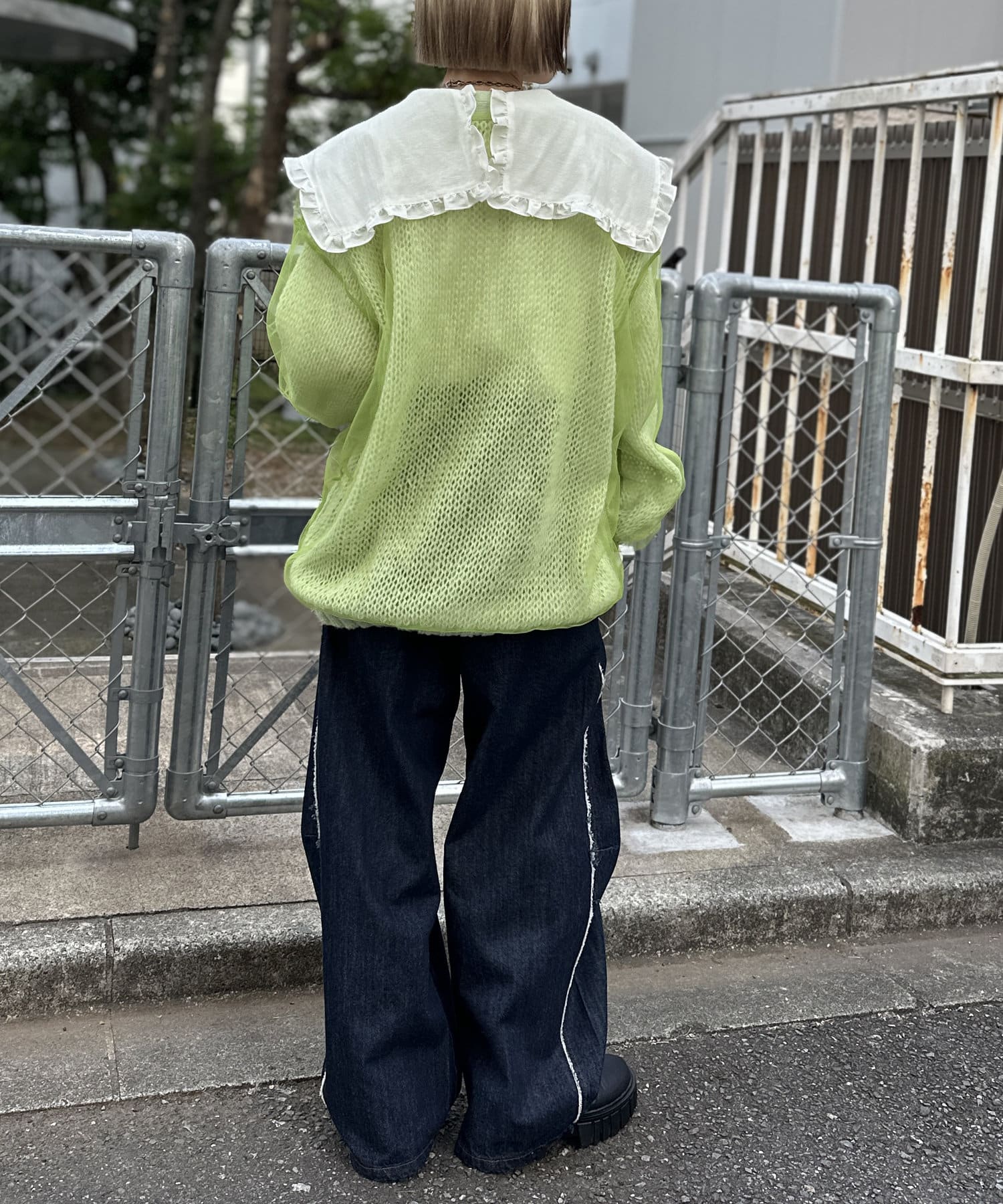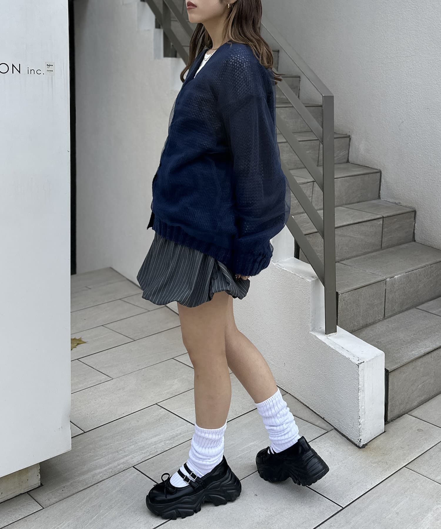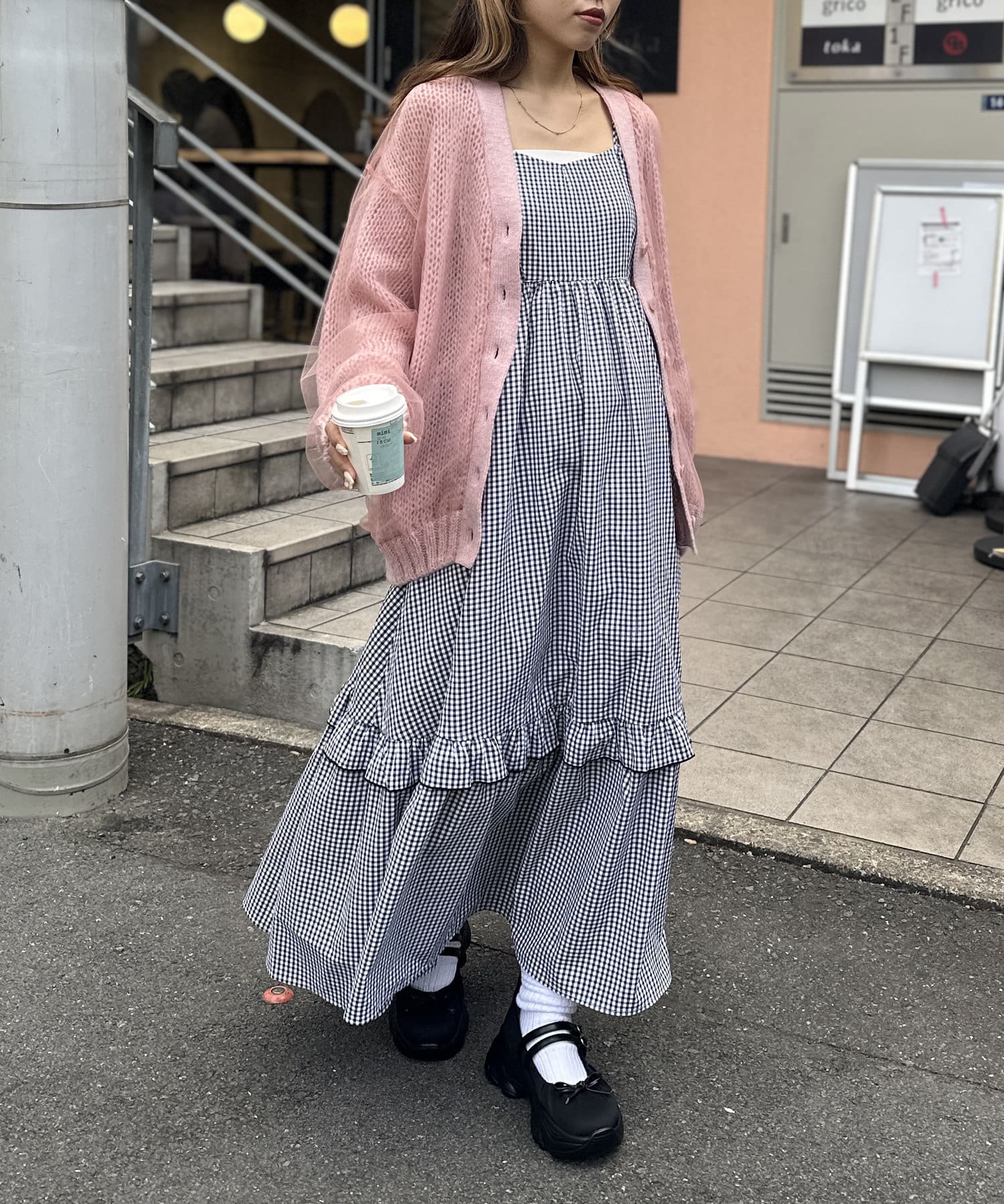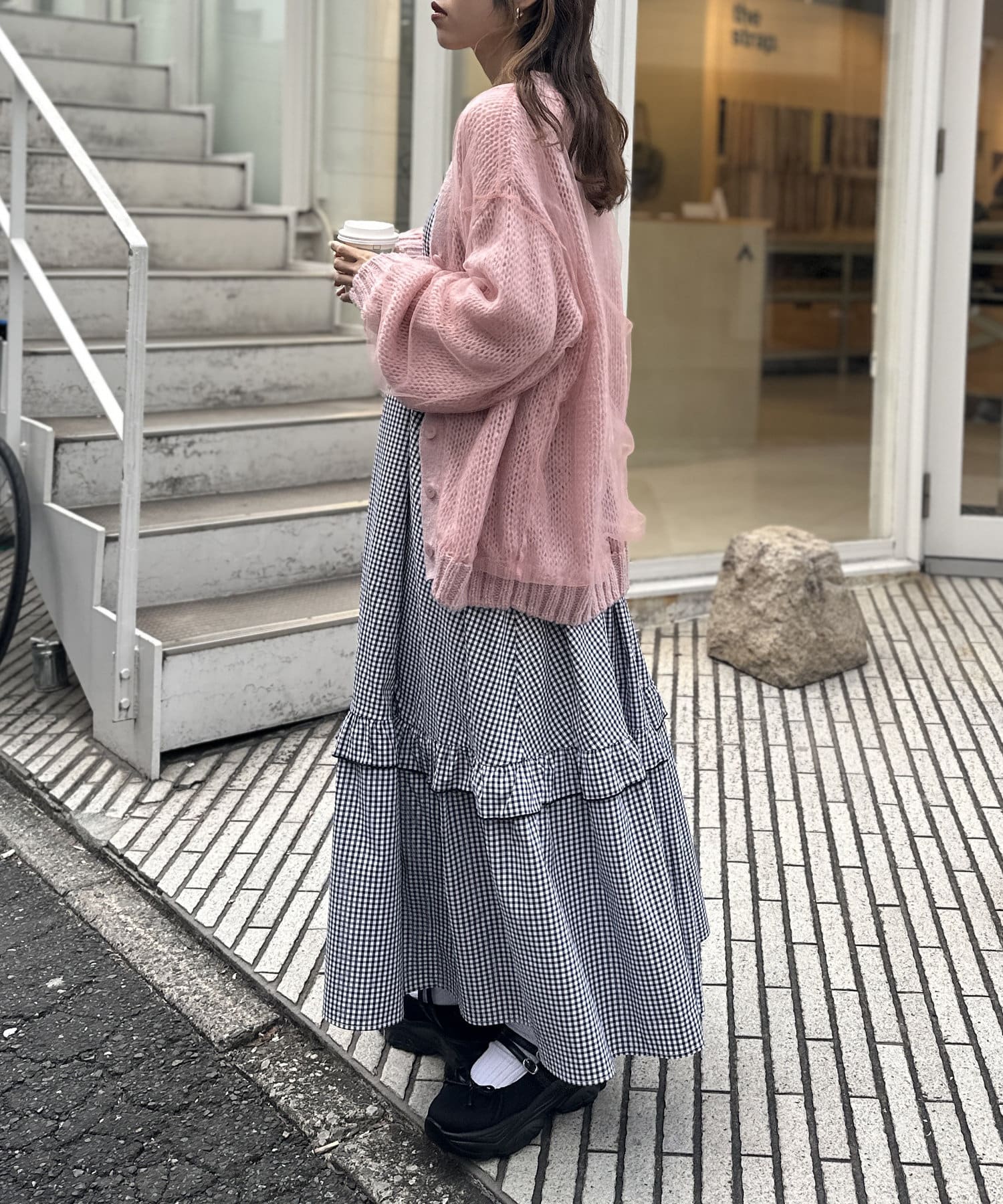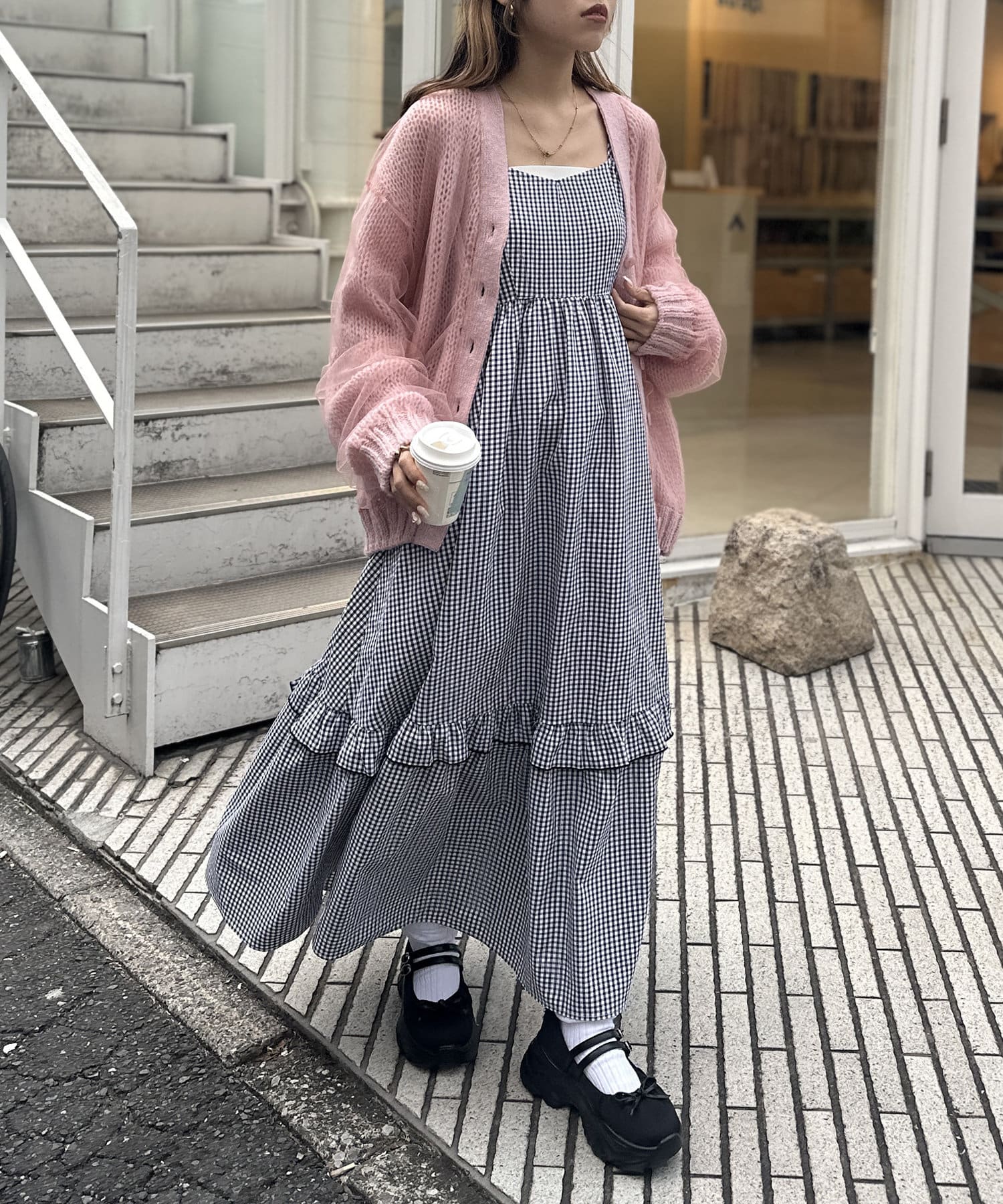 ・ニットカーデにチュールを重ねた繊細なデザイン