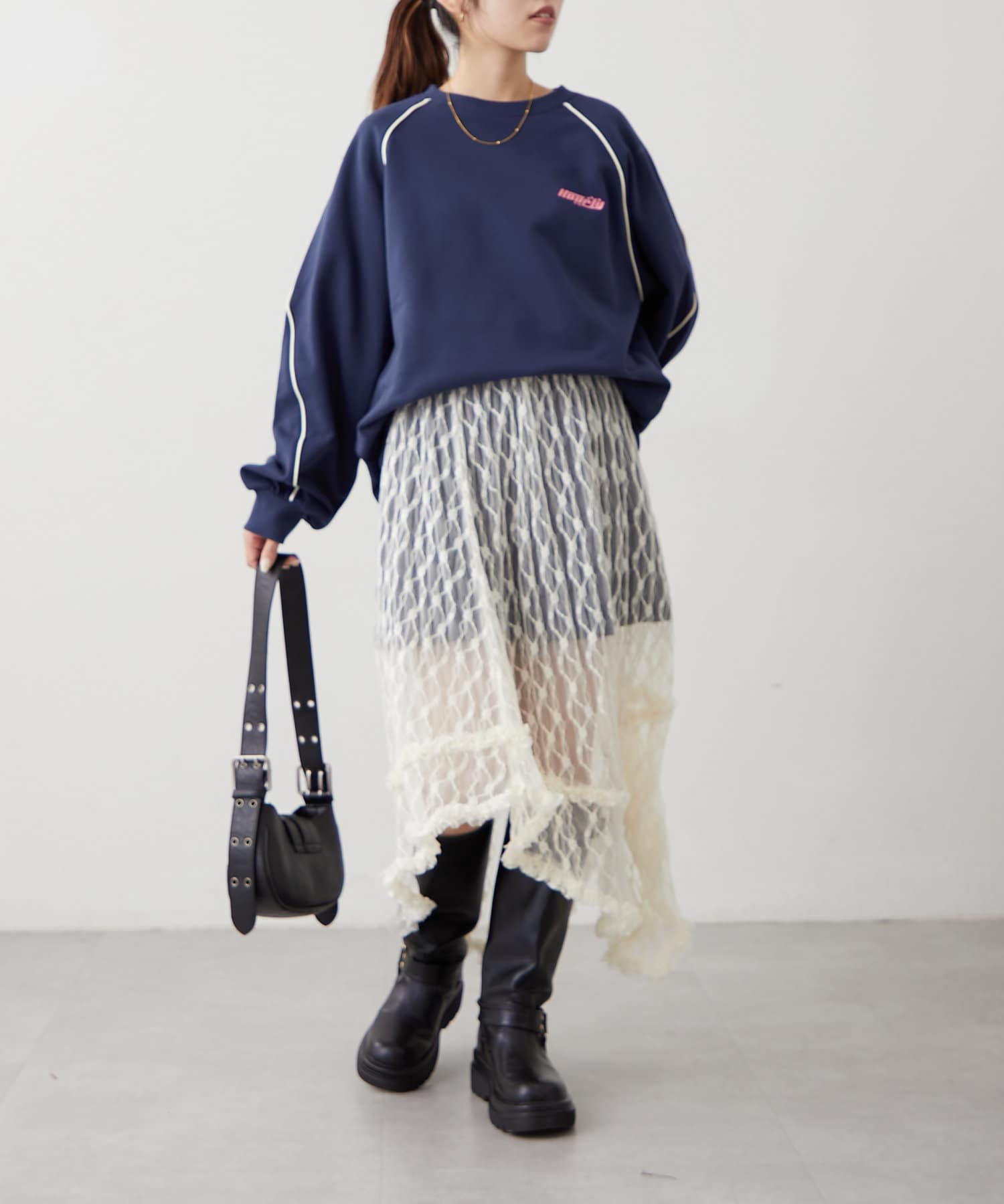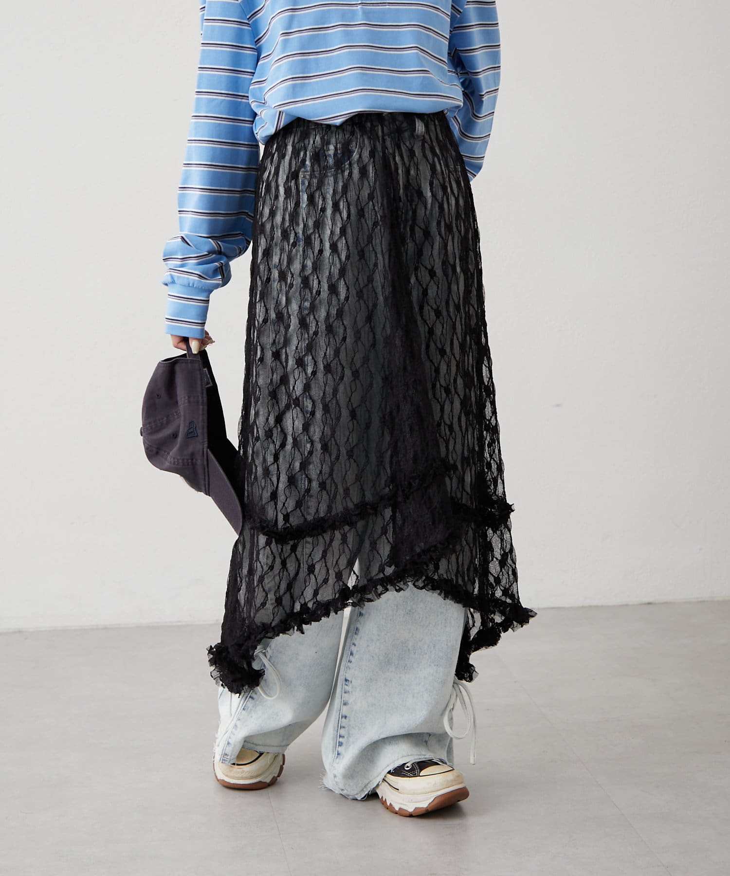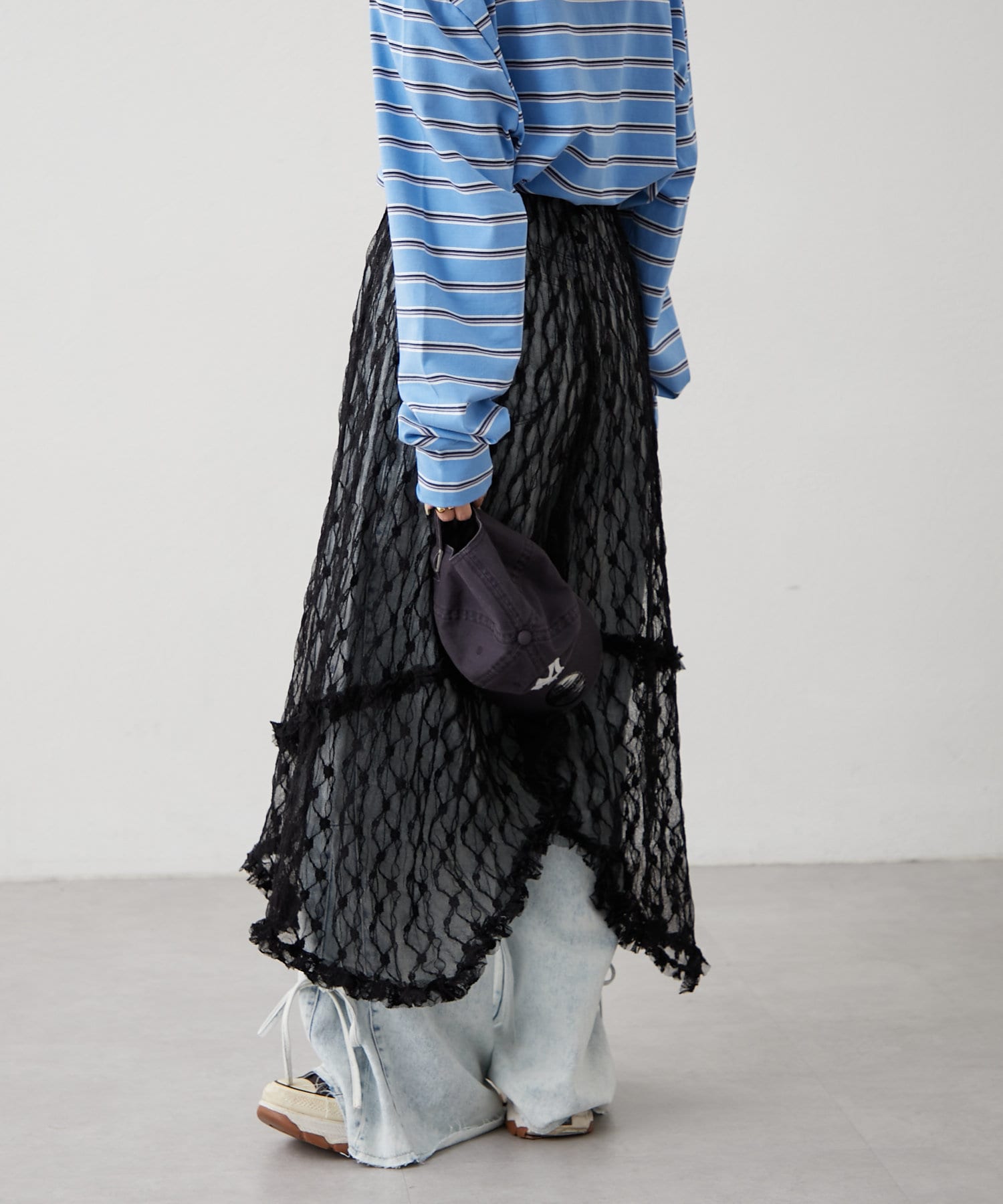 ・歩いたときに動きの出るランダムヘムデザインが目を惹く1枚です