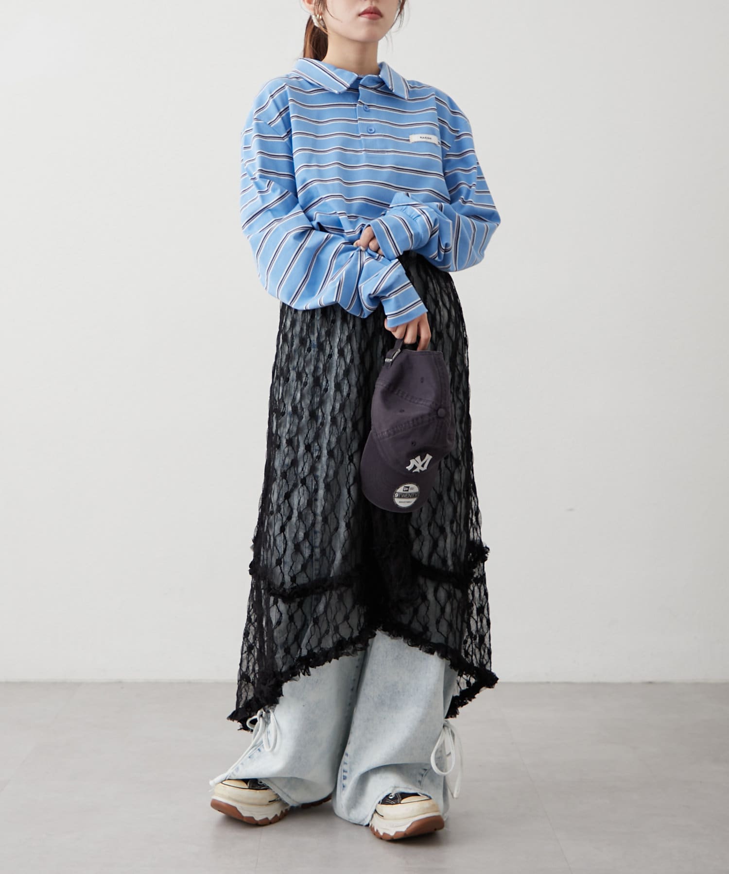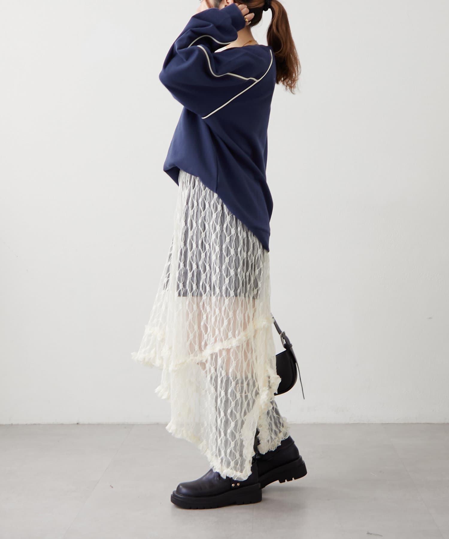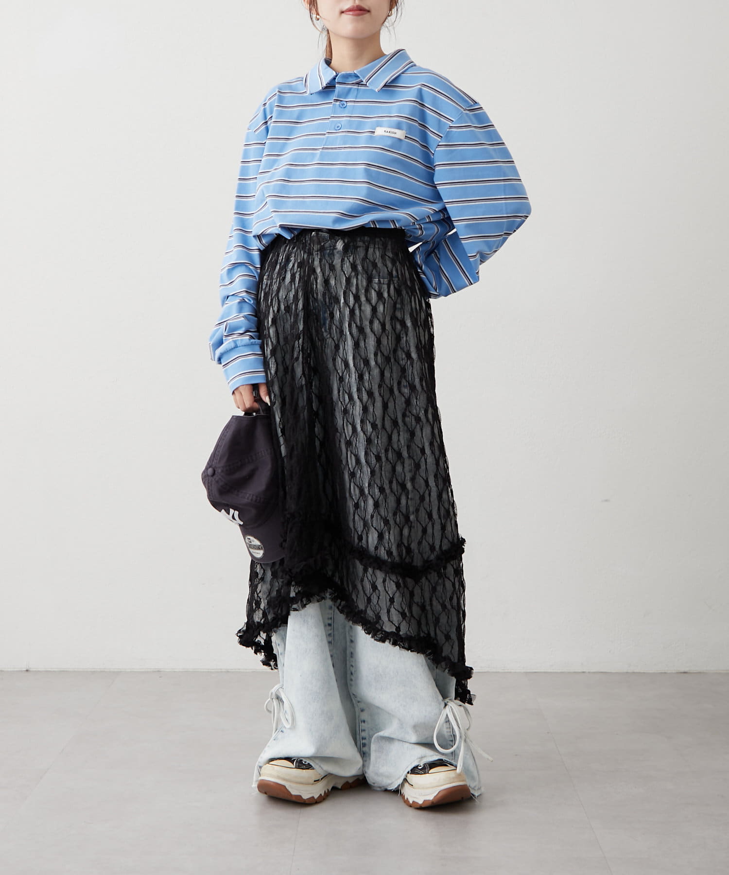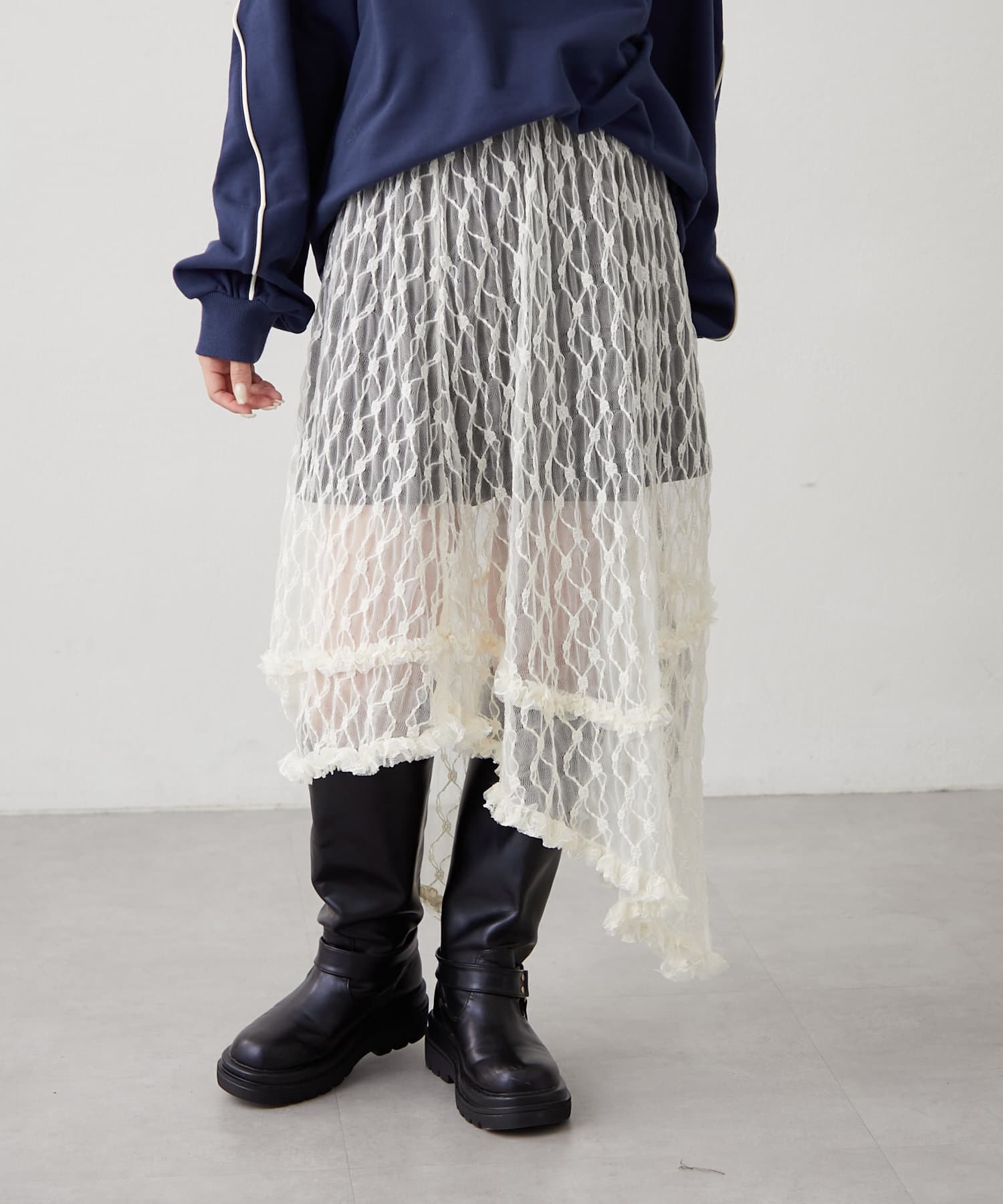・歩いたときに動きの出るランダムヘムデザインが目を惹く1枚です