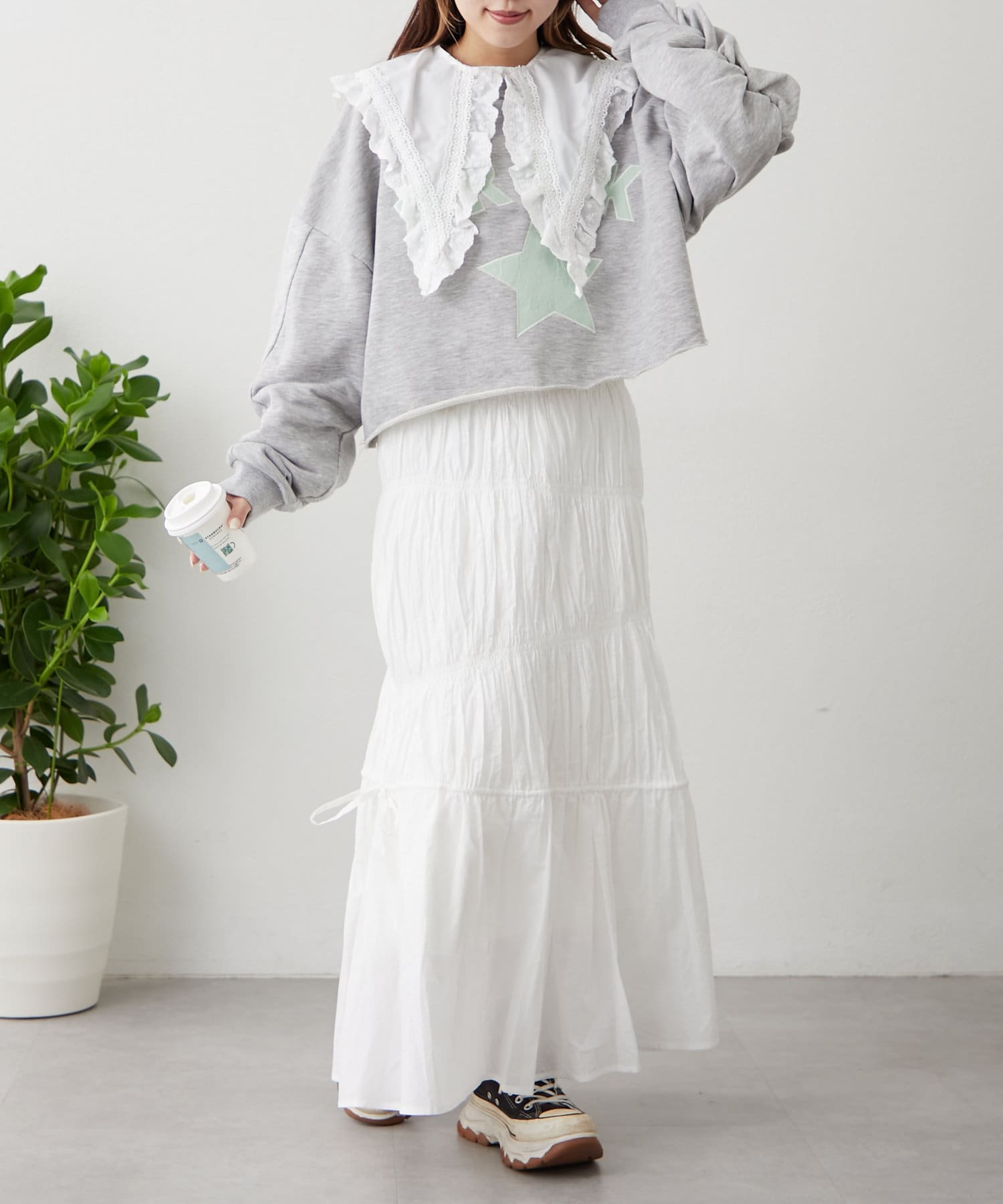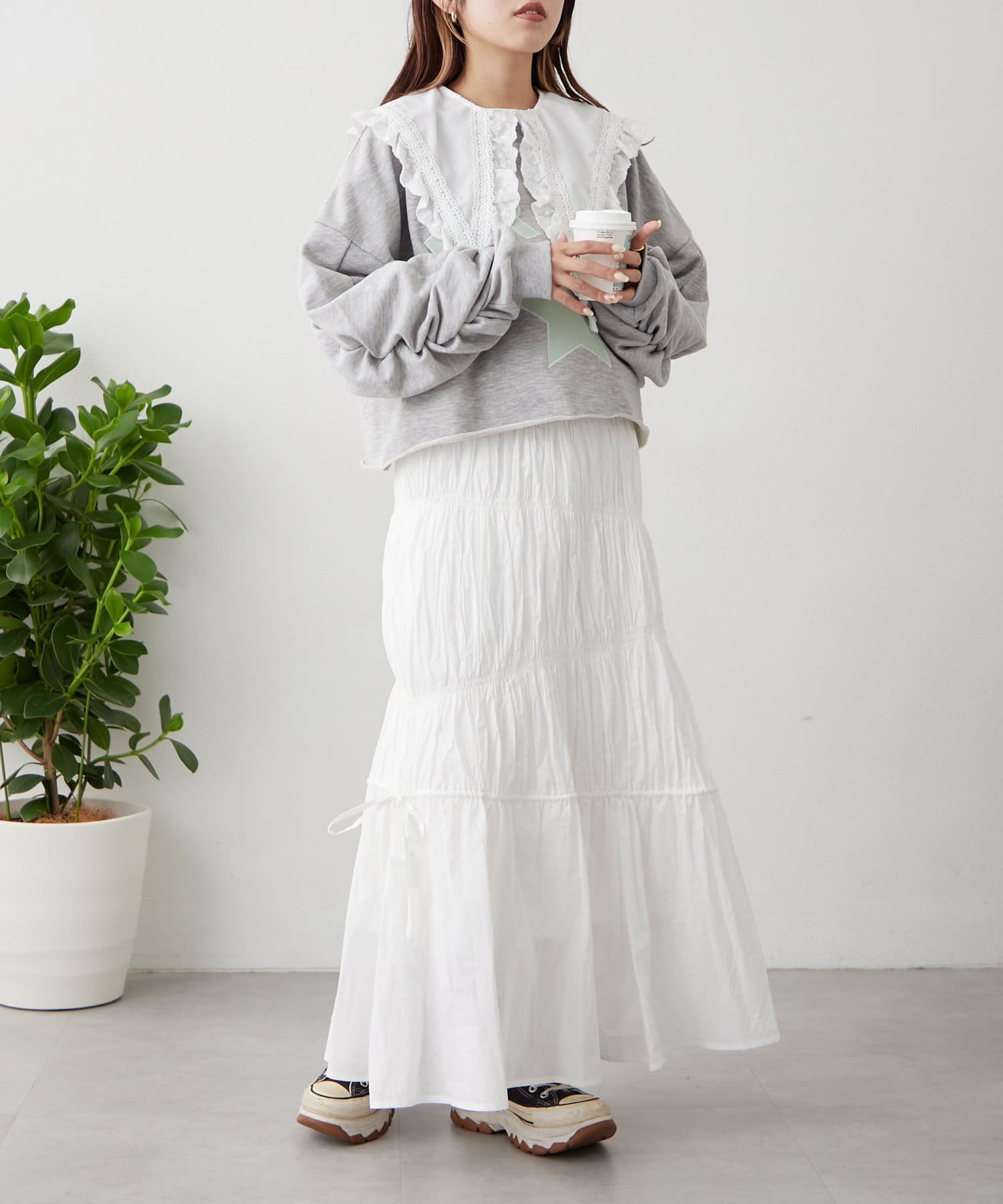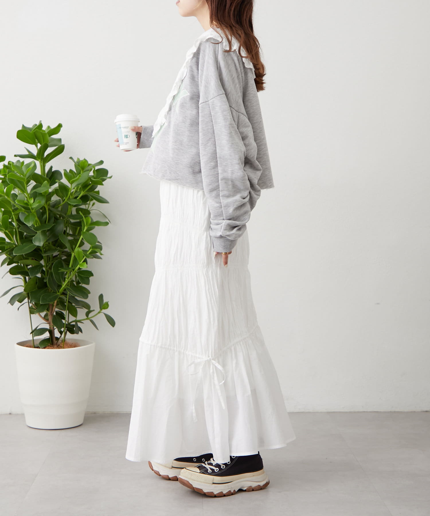 ・冬~春先まではスウェットやニットをあわせてもかわいいです!
