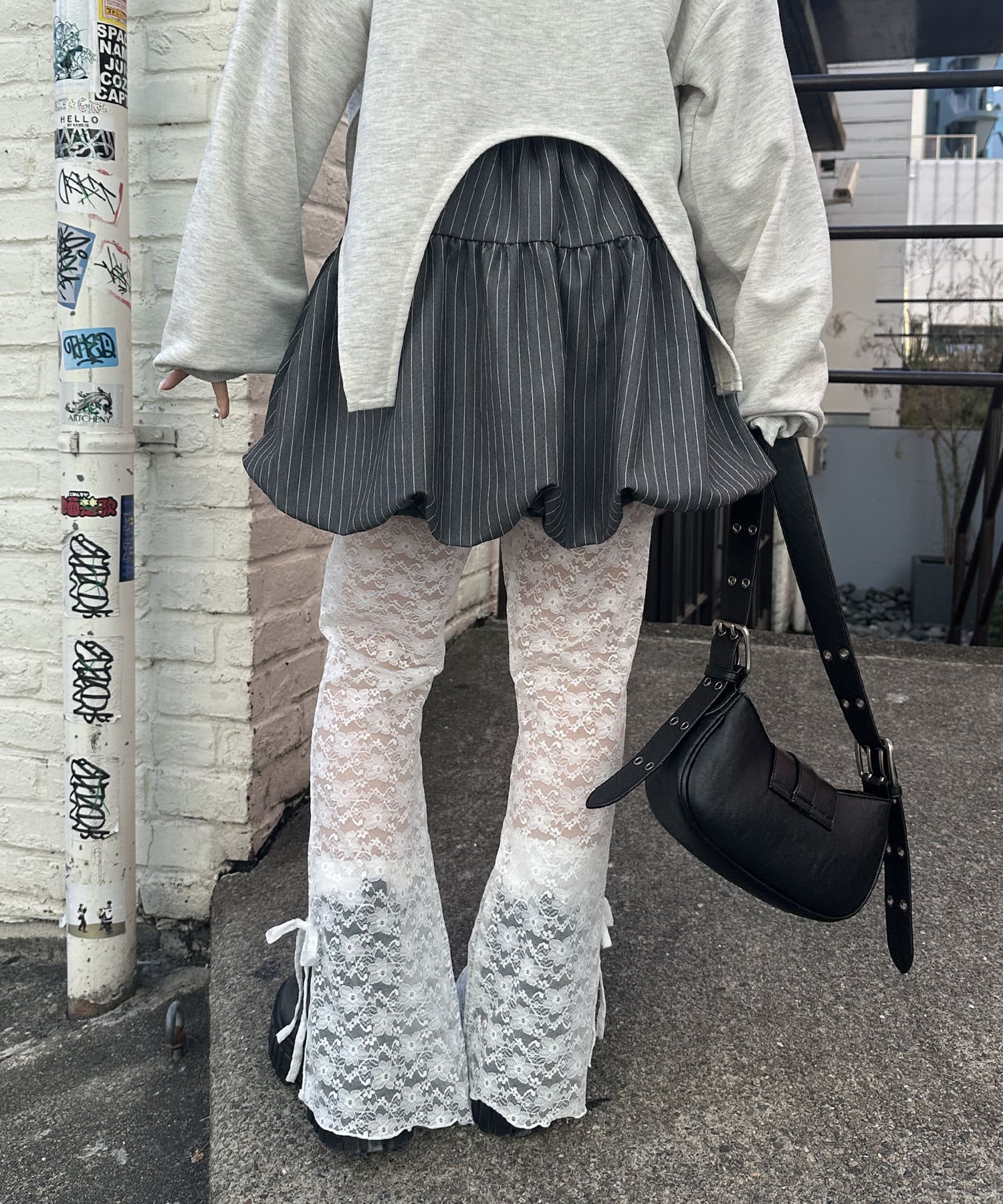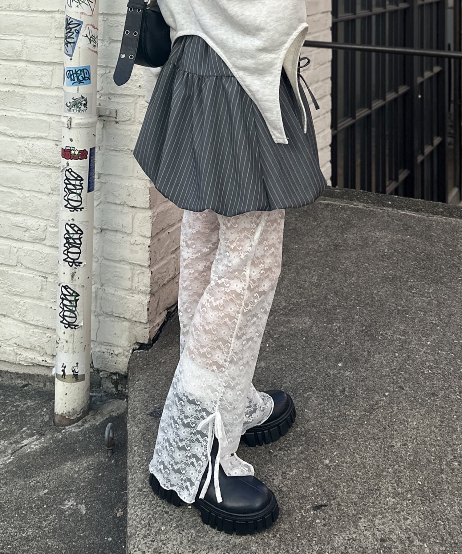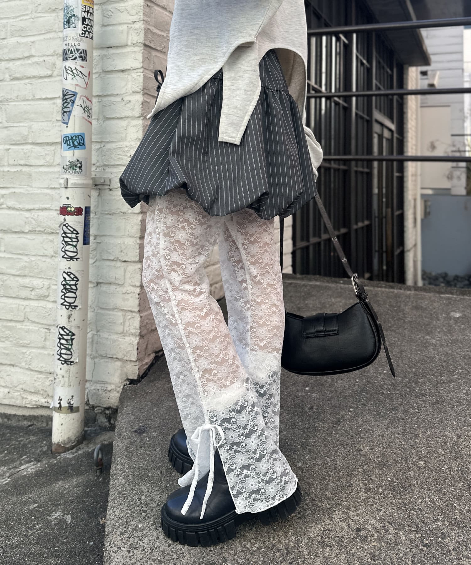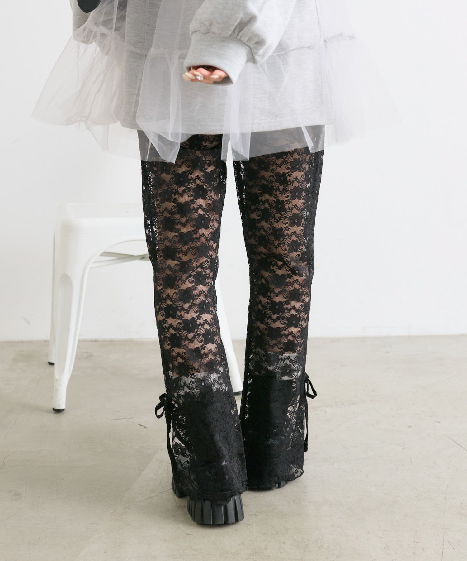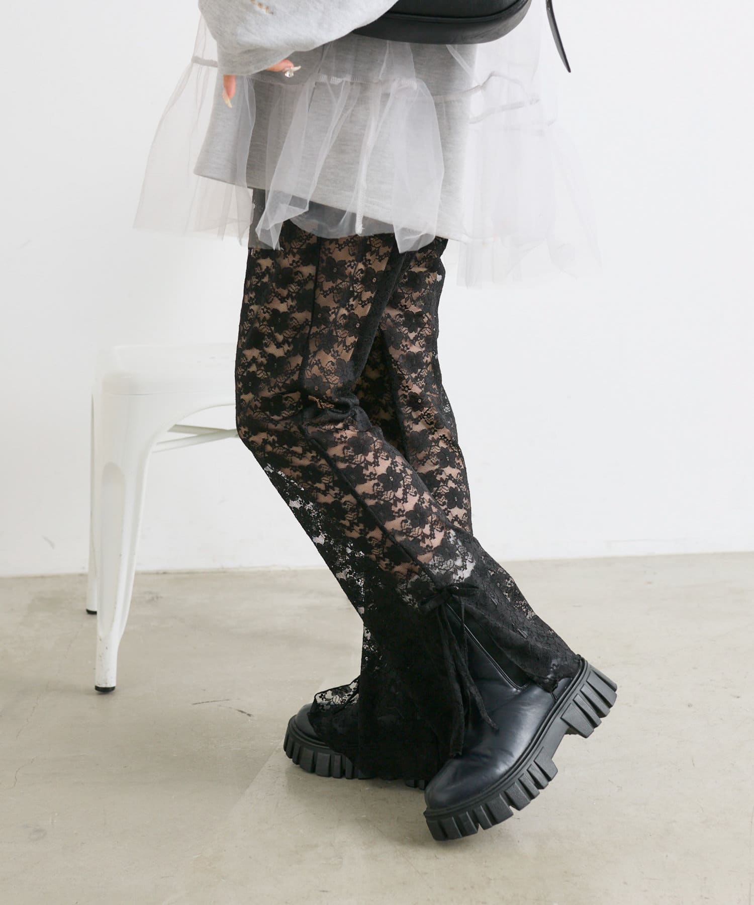 ・フレア型のレースパンツはロマンティックでエレガンスな印象