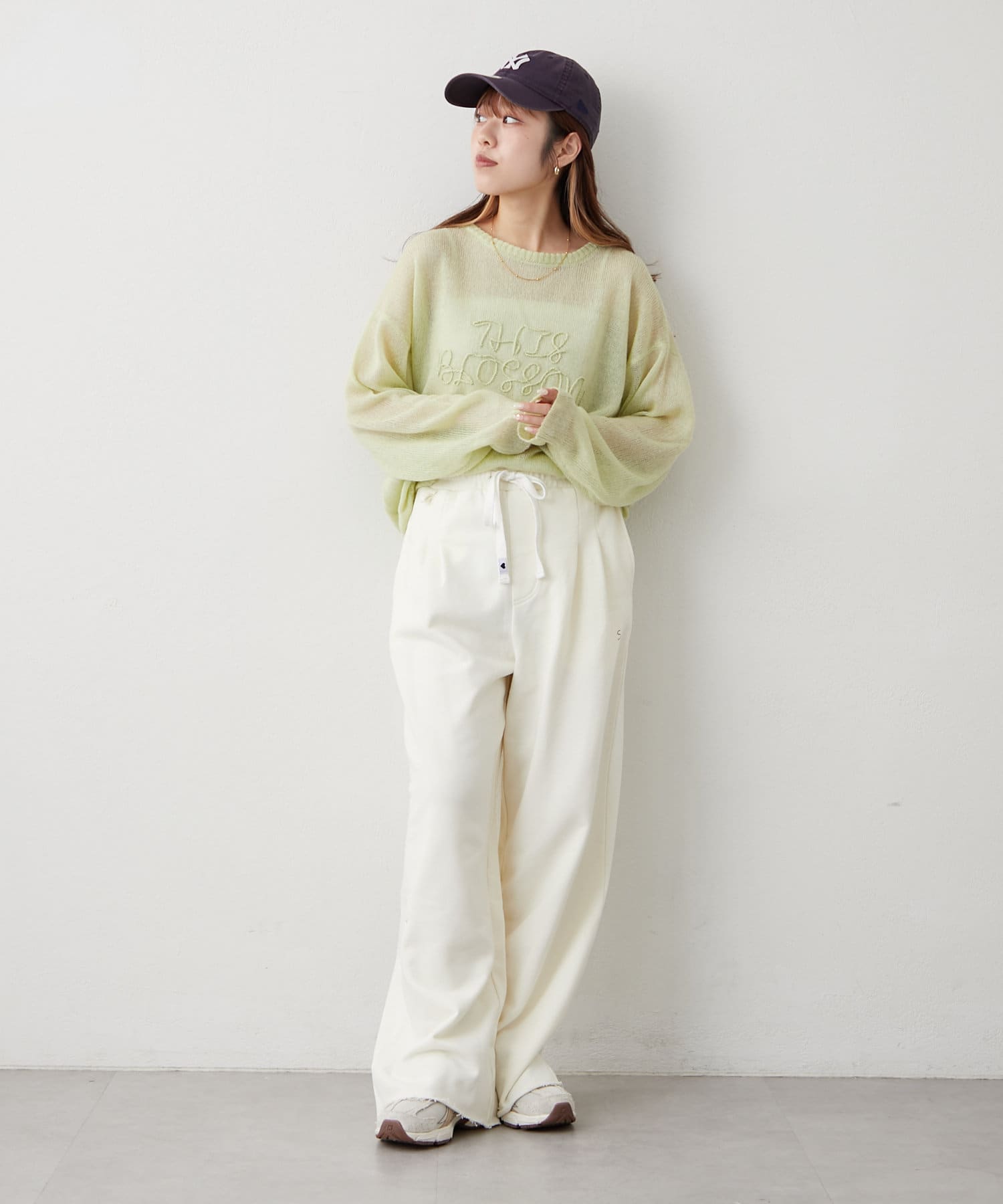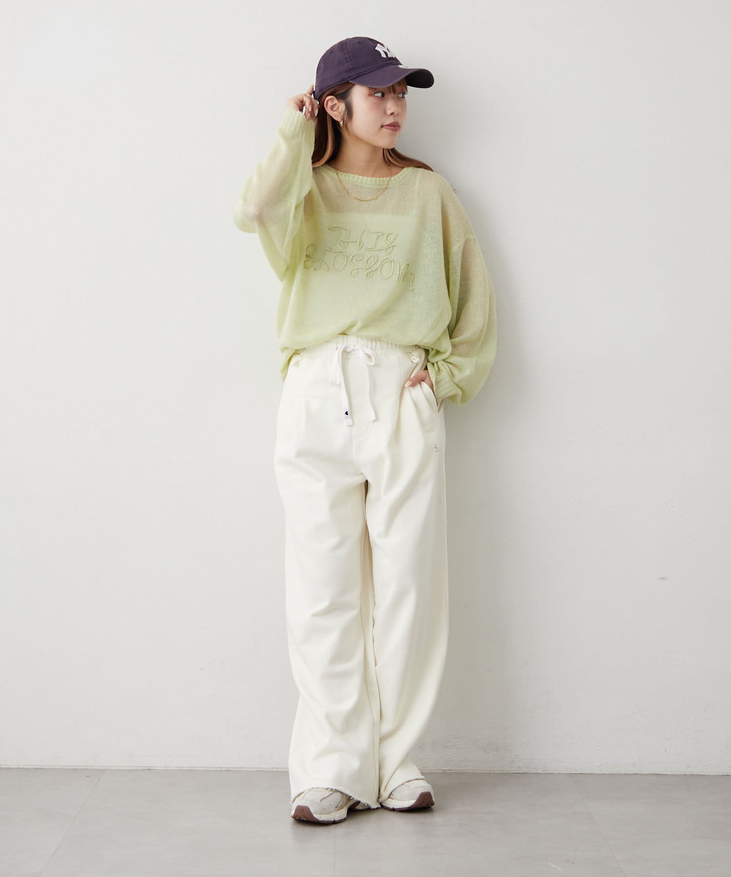 ・春先は薄手のニットやカーデを合わせたバランス感が可愛いです◎