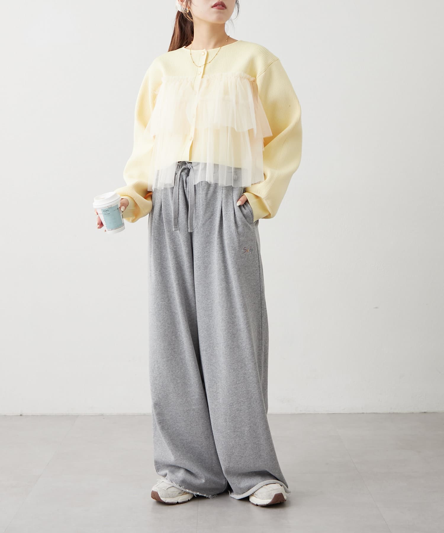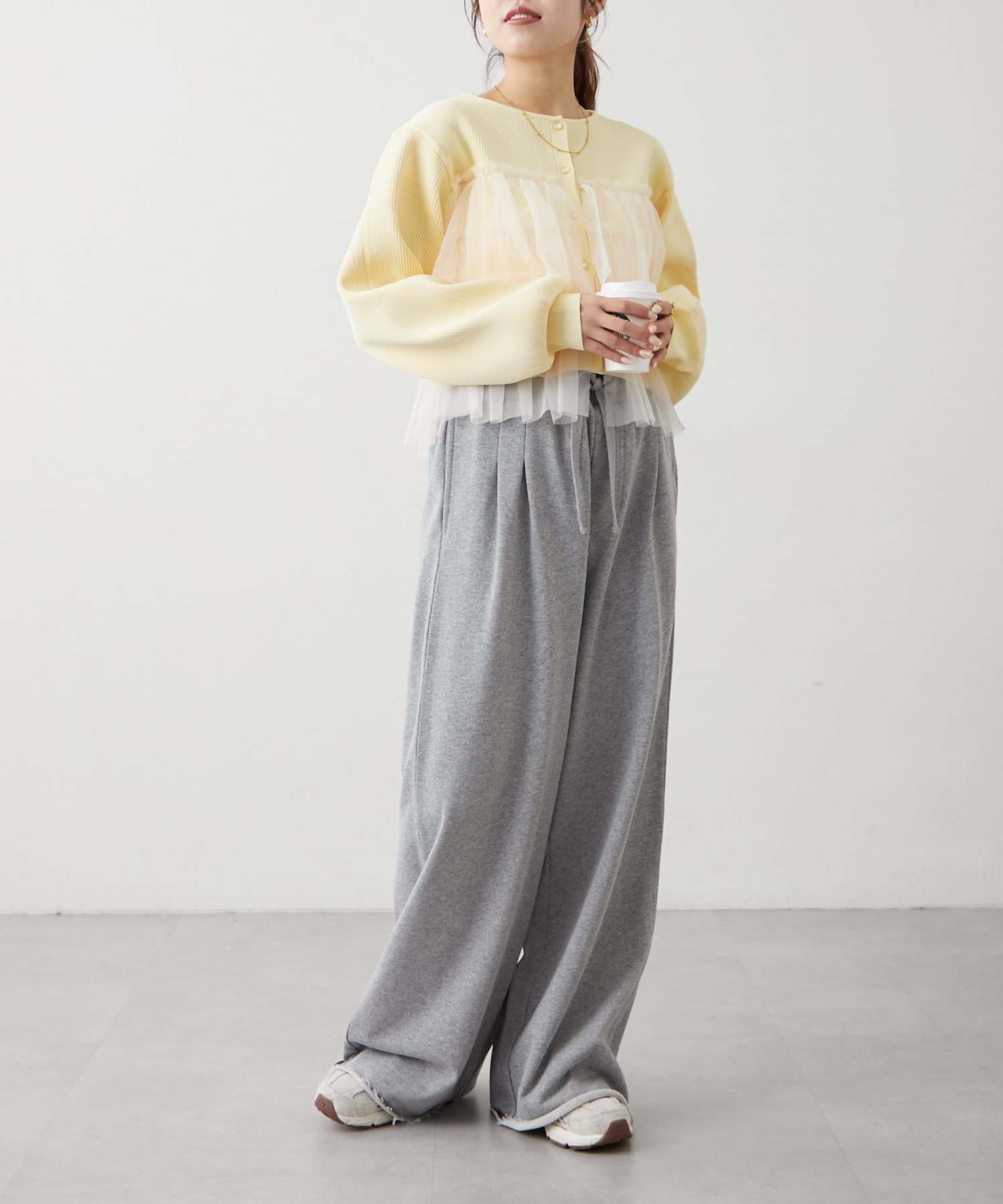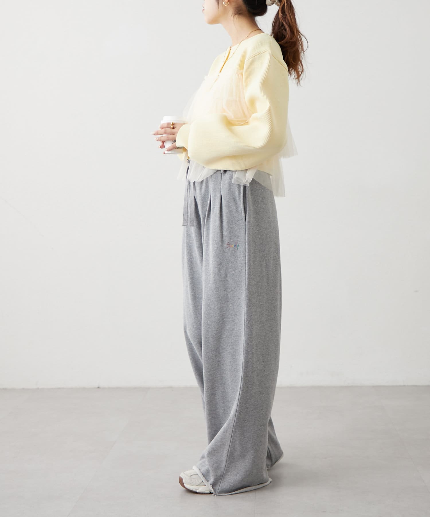 ・同色のスウェットを合わせてセットアップ風に着合わせてもこなれ感がでます!