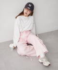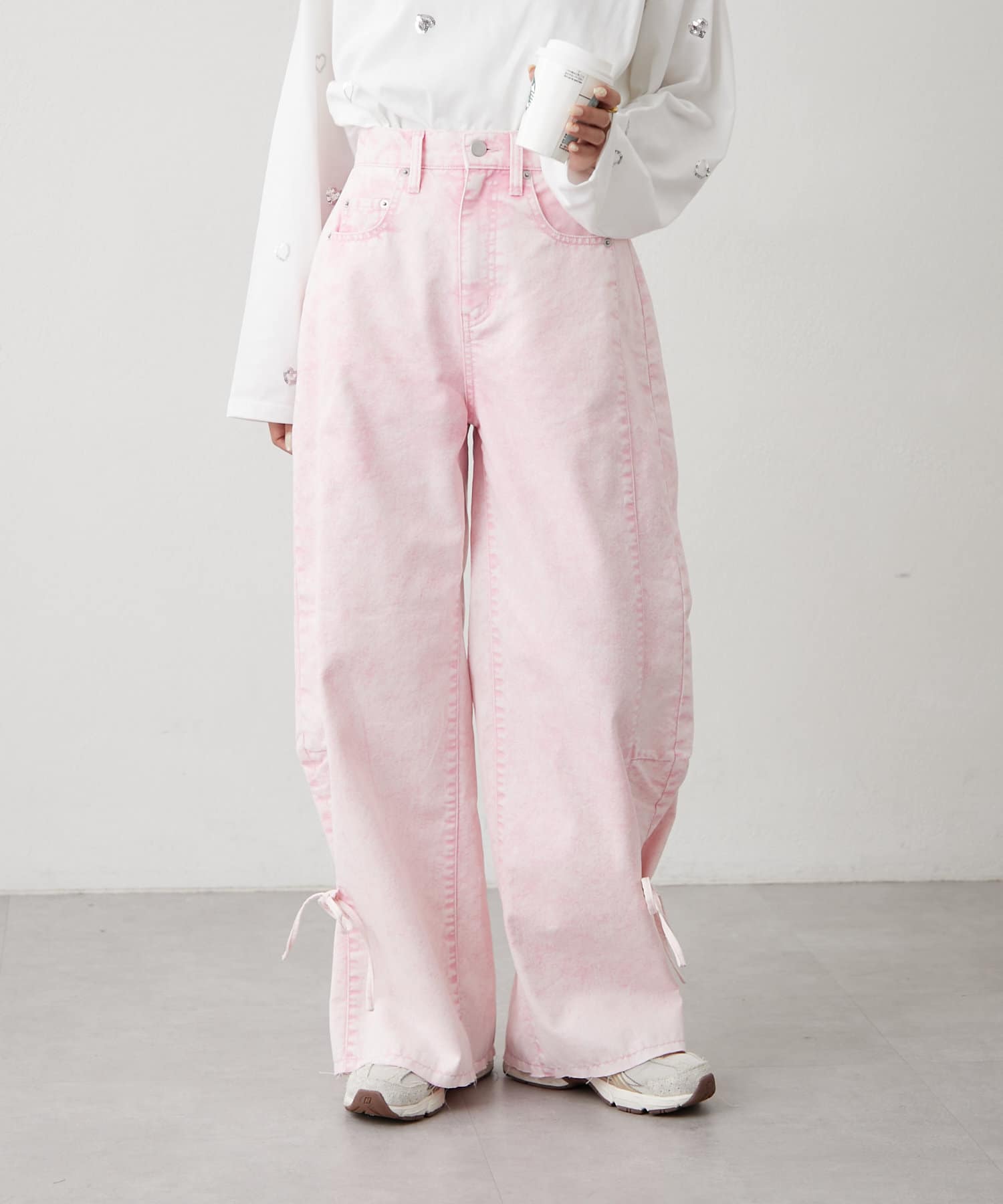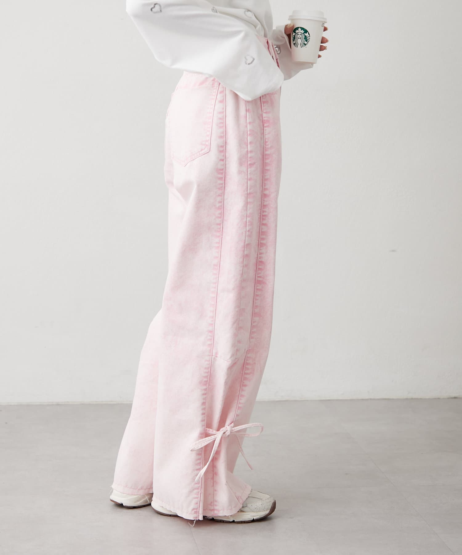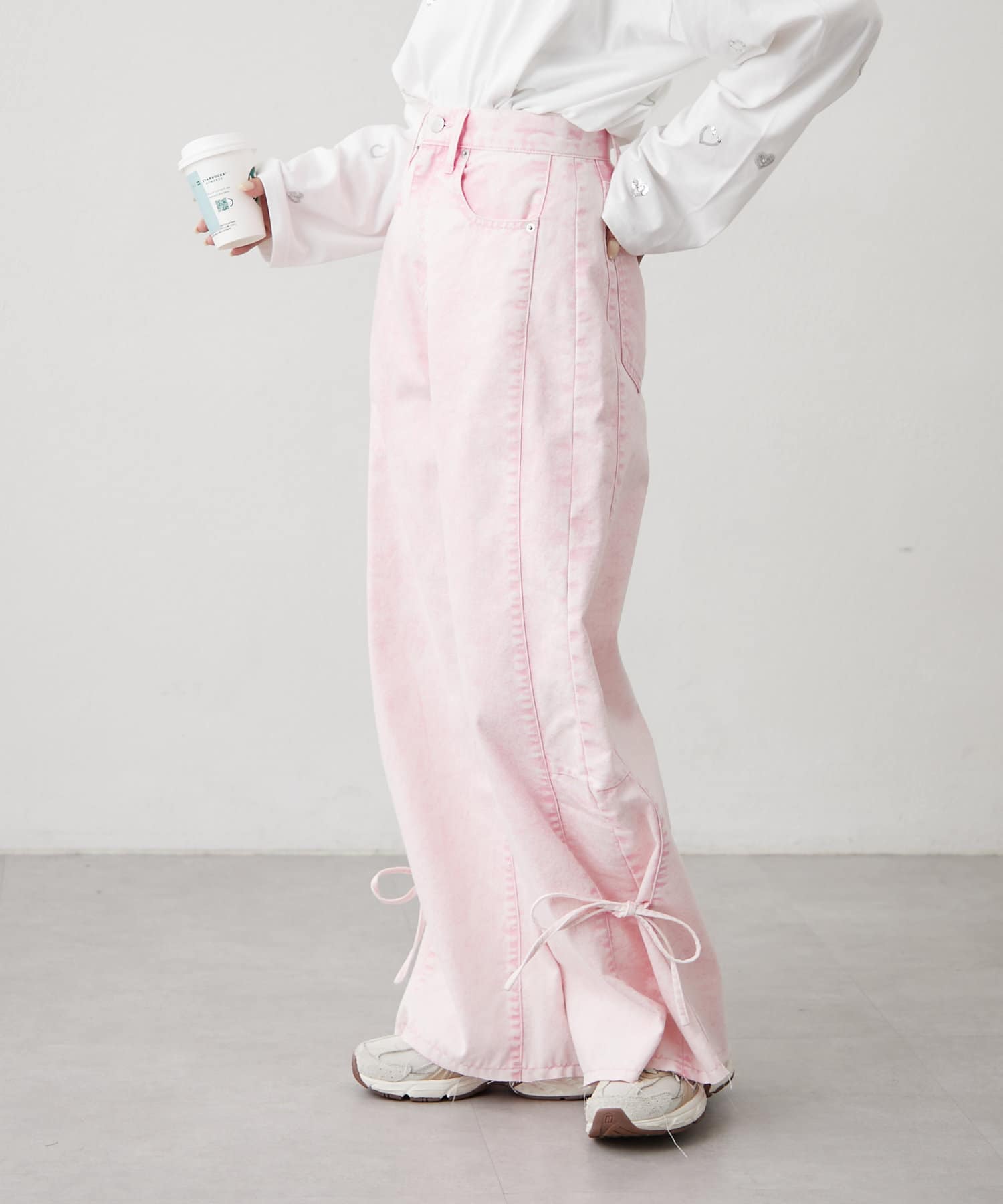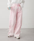 ・カジュアルなワイドデザインに裾のリボンが甘さをプラス