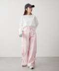 ・ウォッシュ加工の淡いカラーが可愛いデニムパンツ