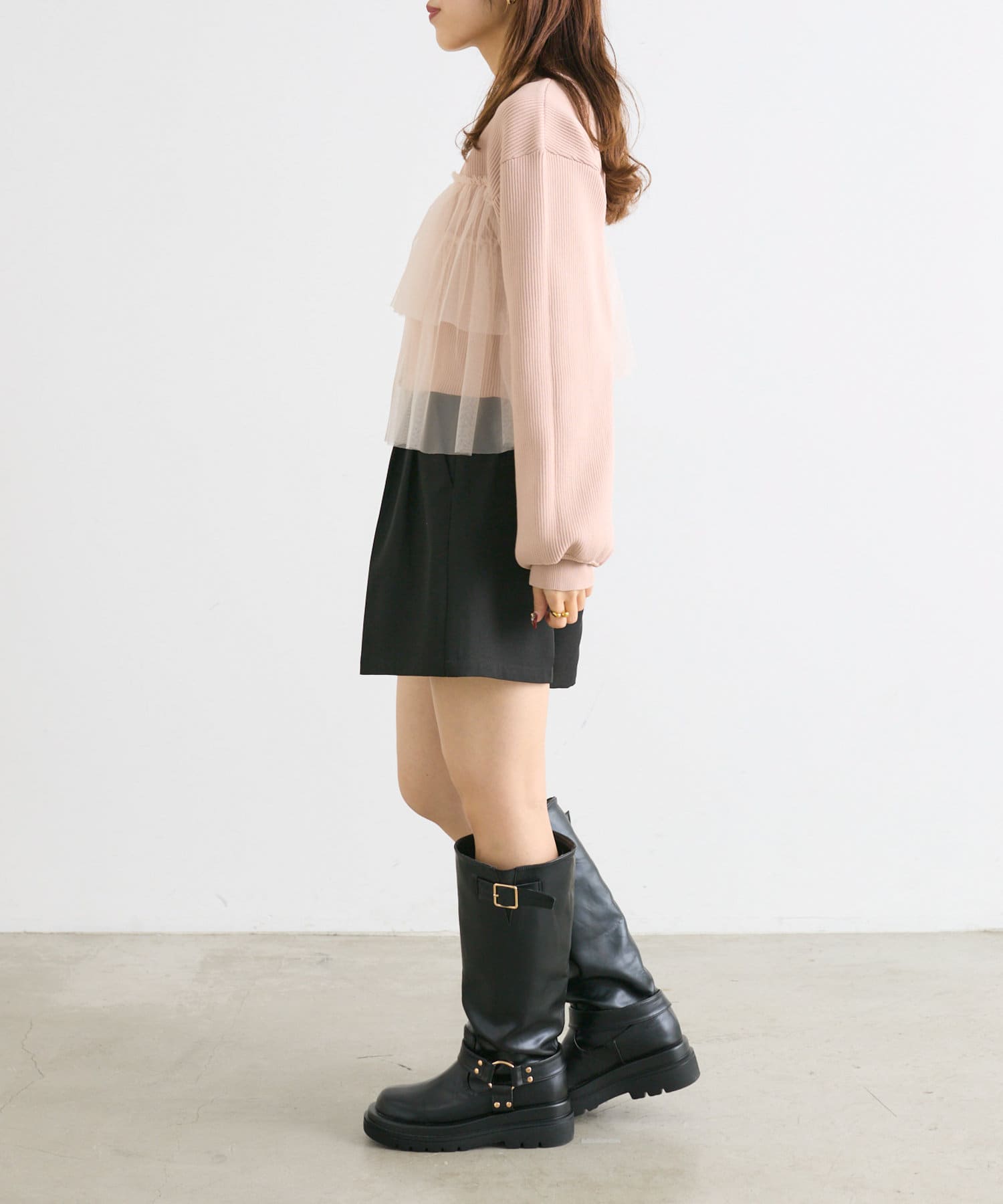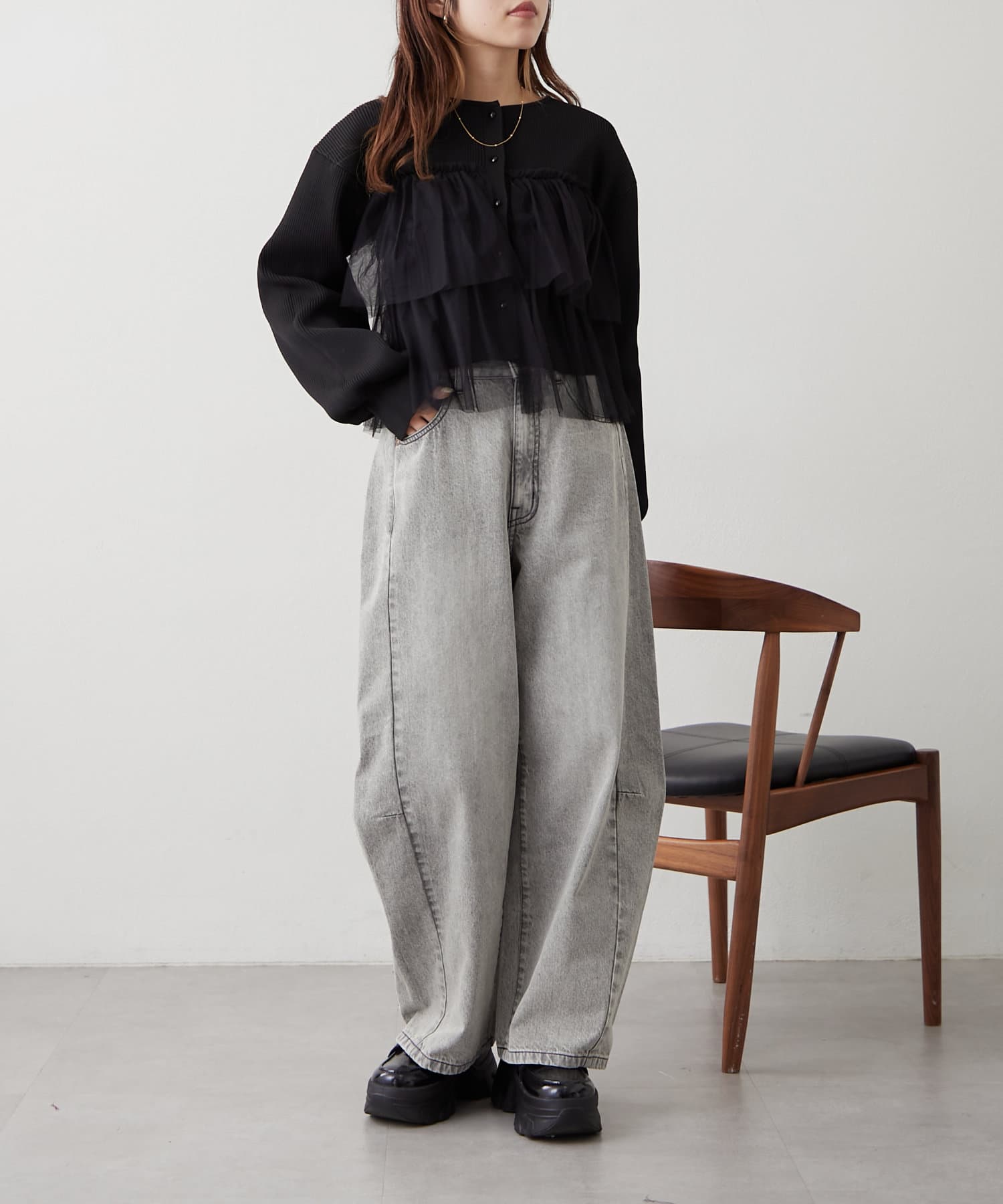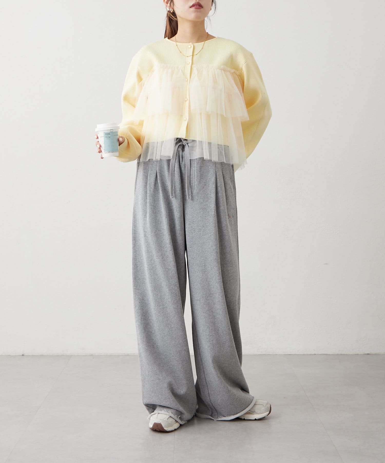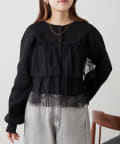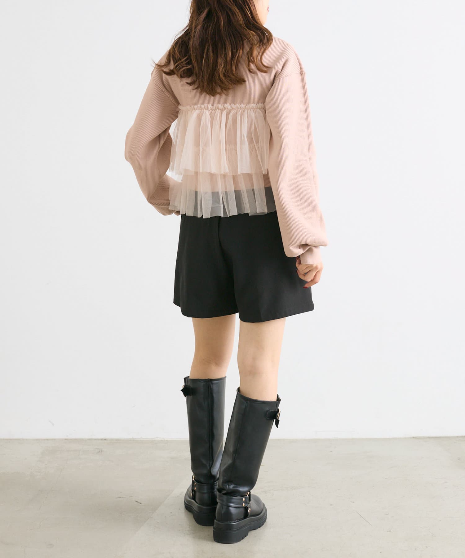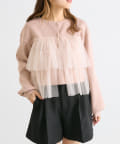 ・シンプルなカーデにチュールを段々にドッキングした華やかな1枚