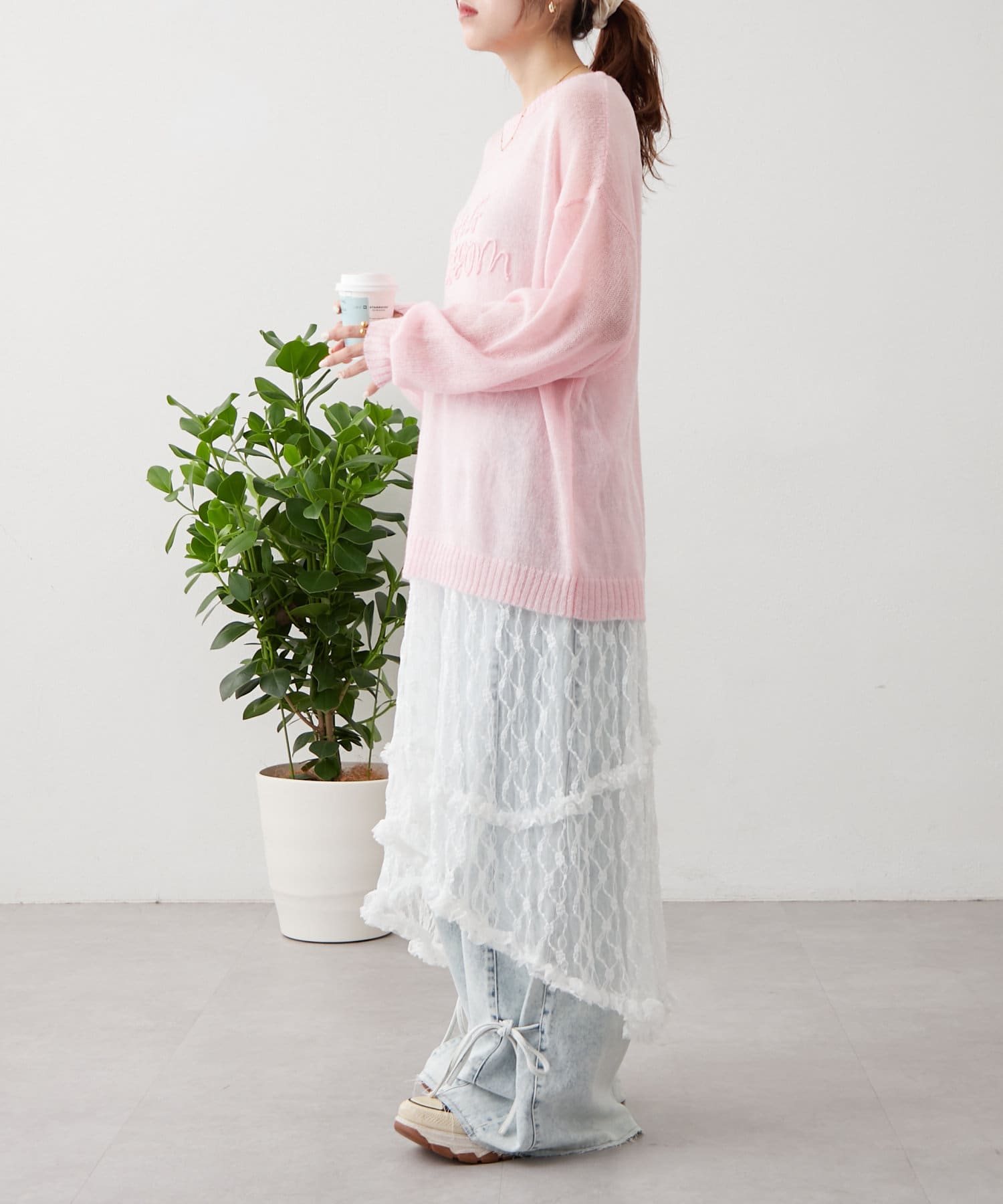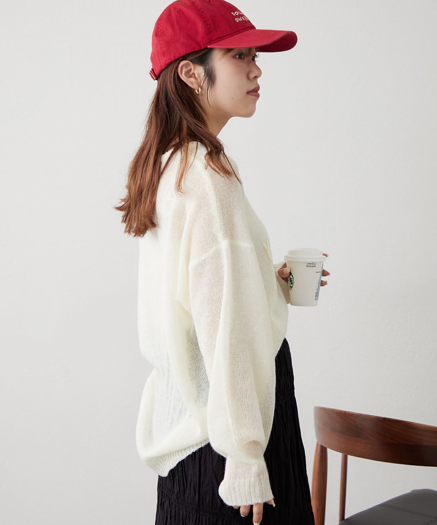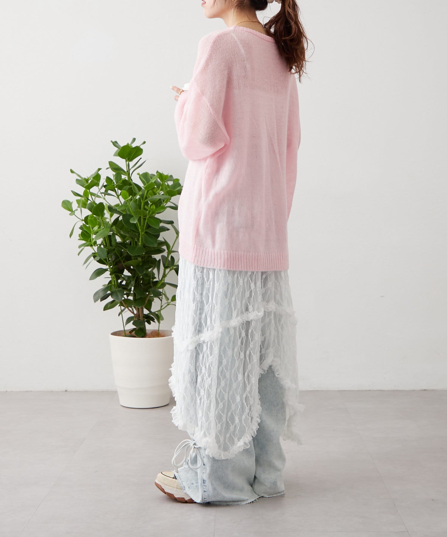 ・中に合わせるカットソーやタンクトップを柄物にして透け感を活かしても可愛いです