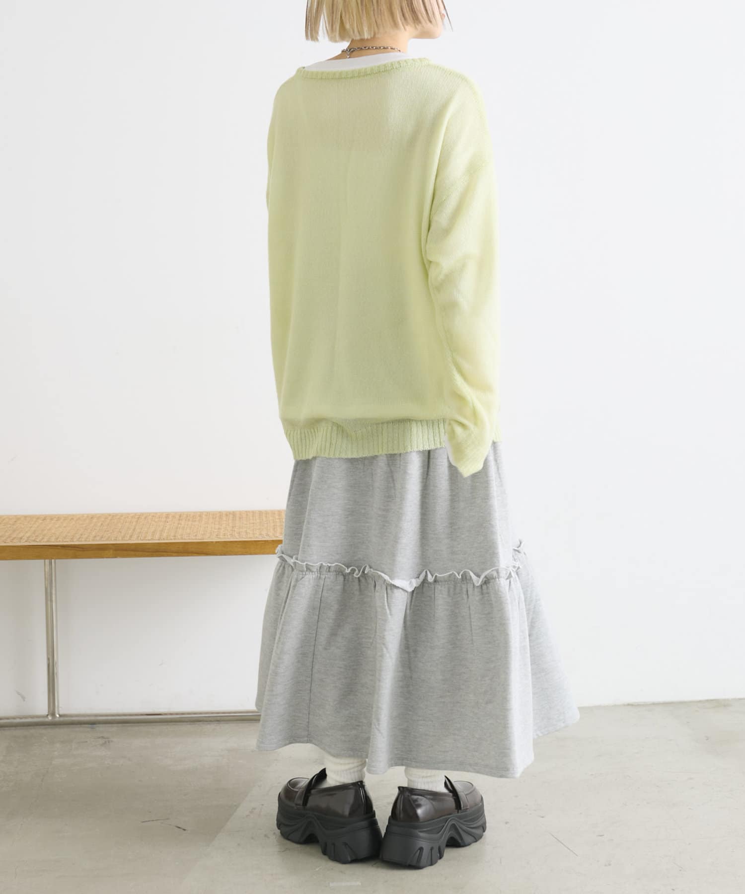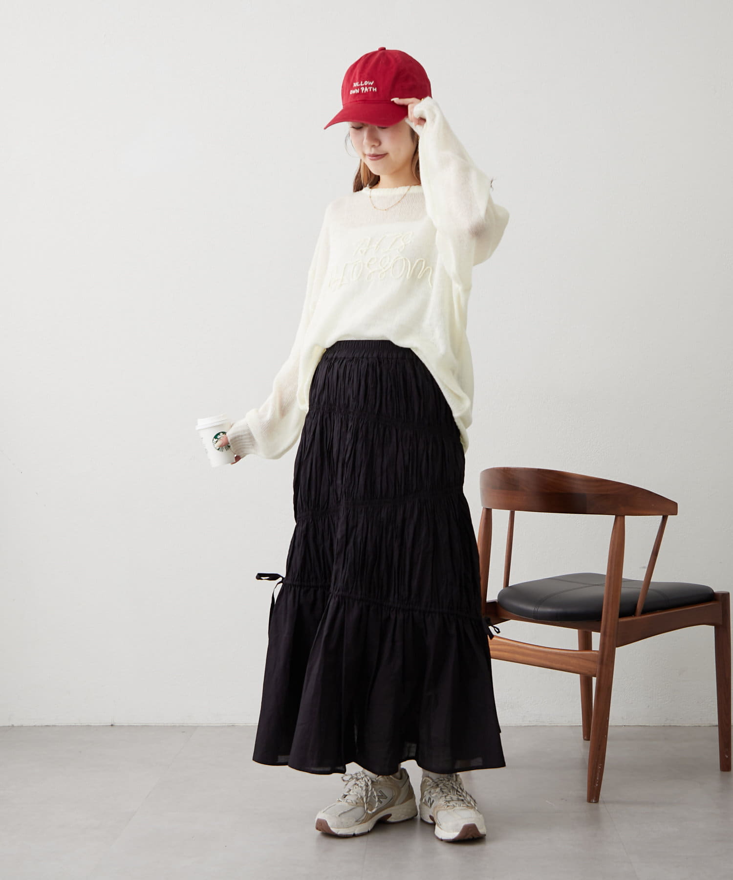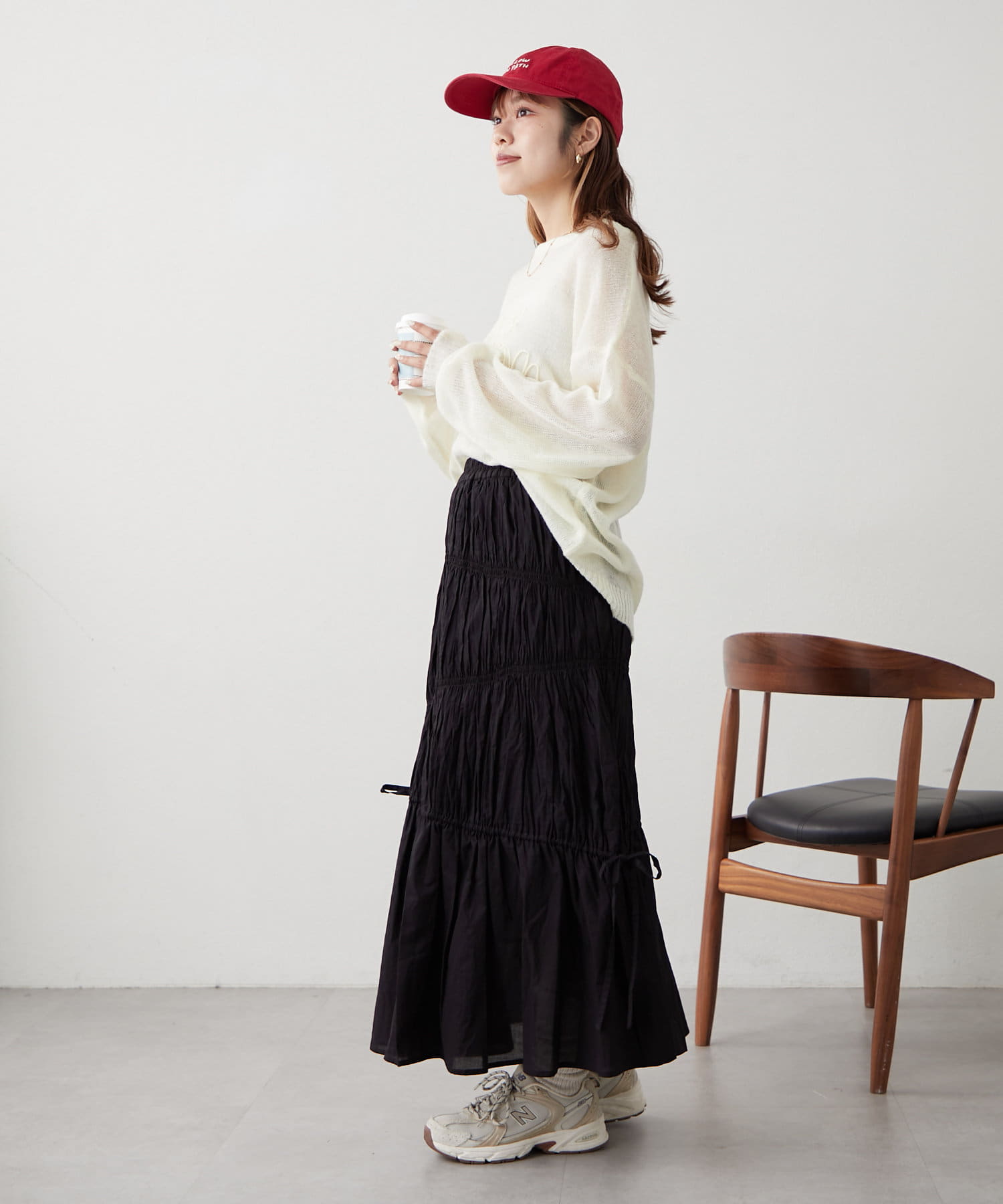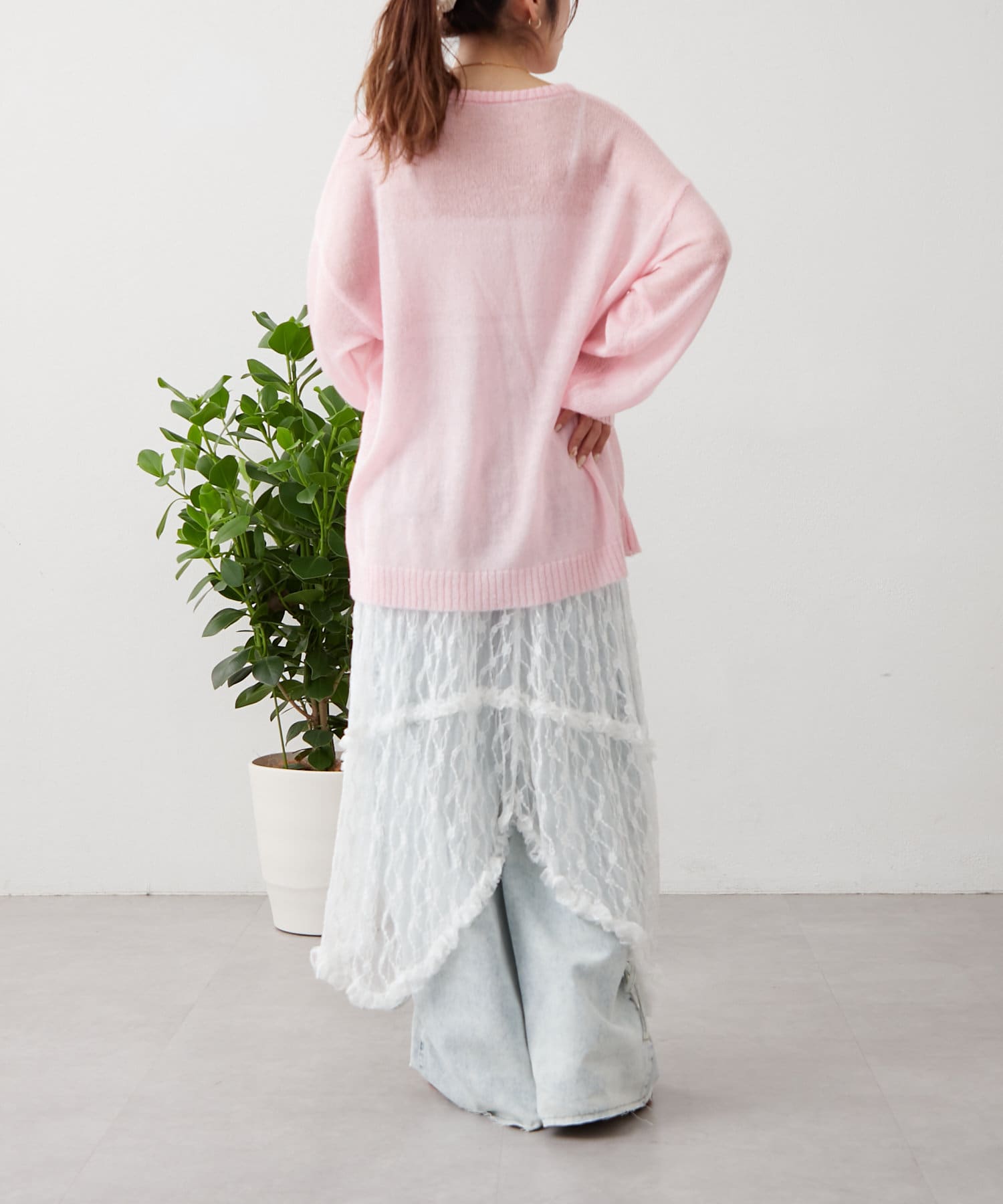 ・中に合わせるカットソーやタンクトップを柄物にして透け感を活かしても可愛いです