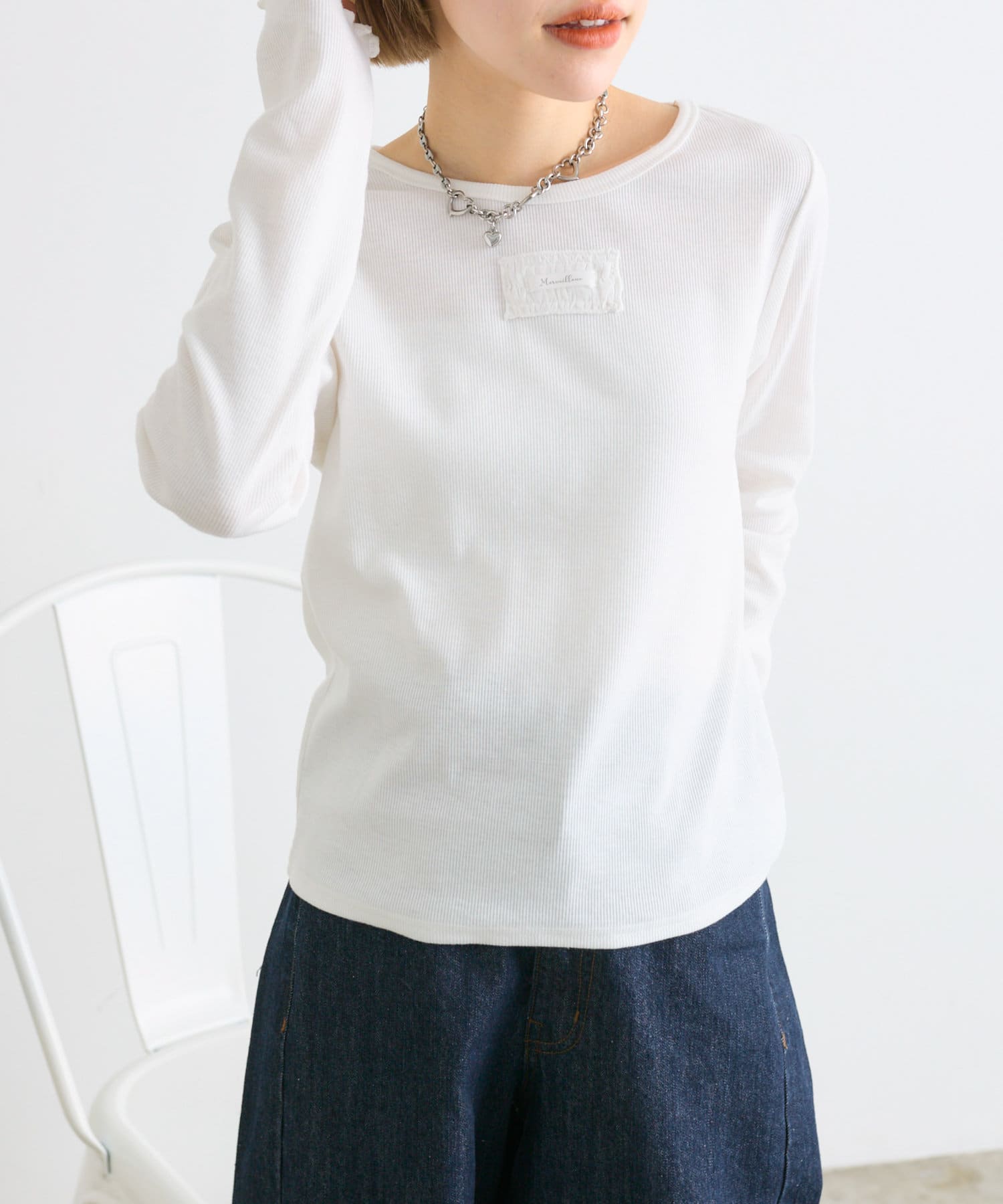w closet(ダブルクローゼット) フリルネーム付テレコプルオーバー
