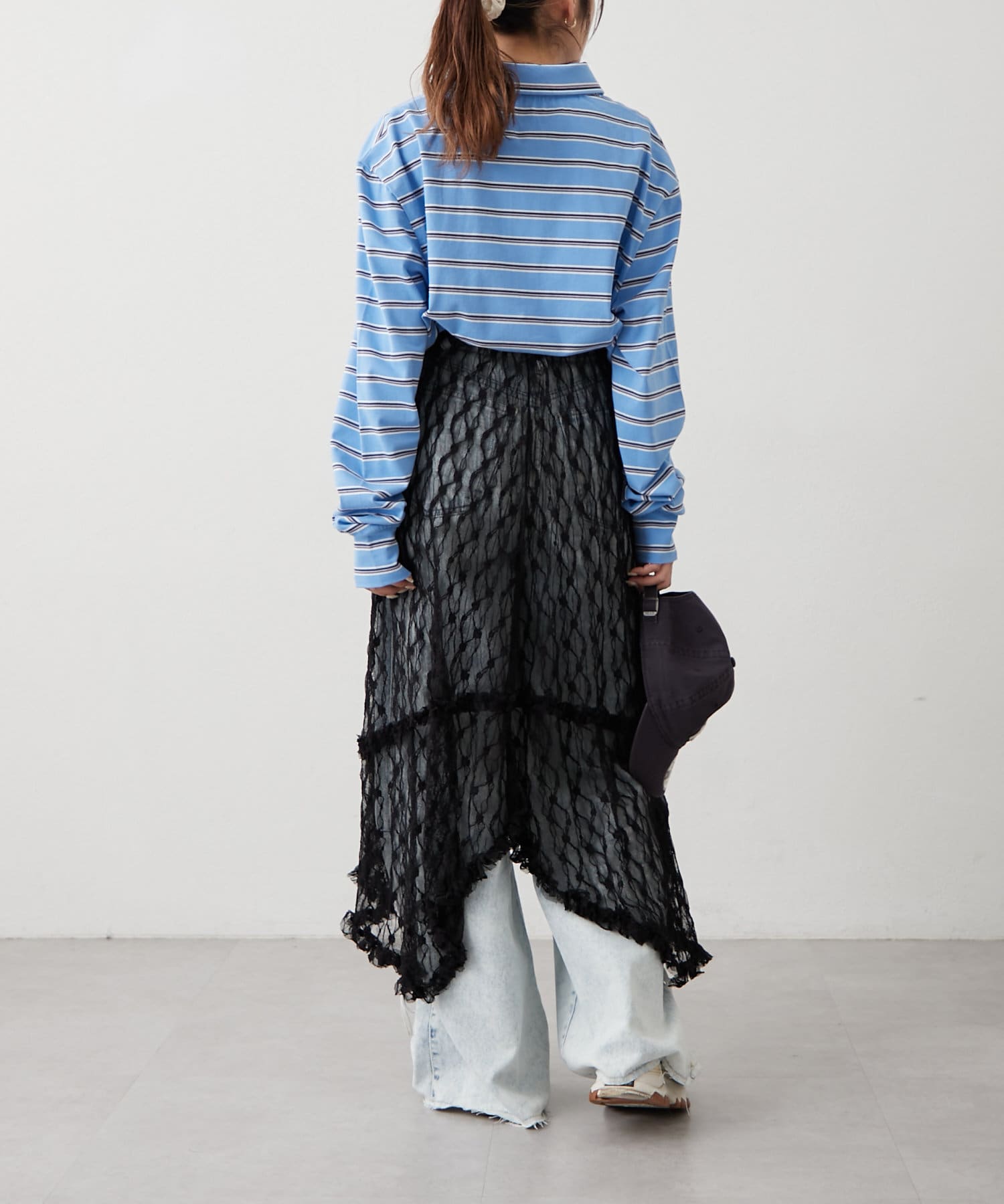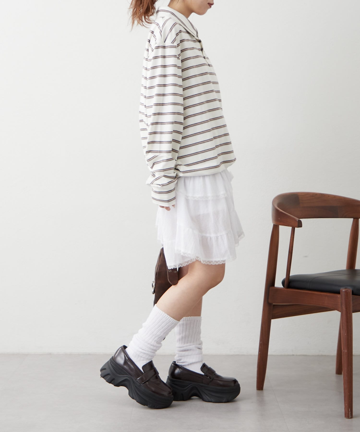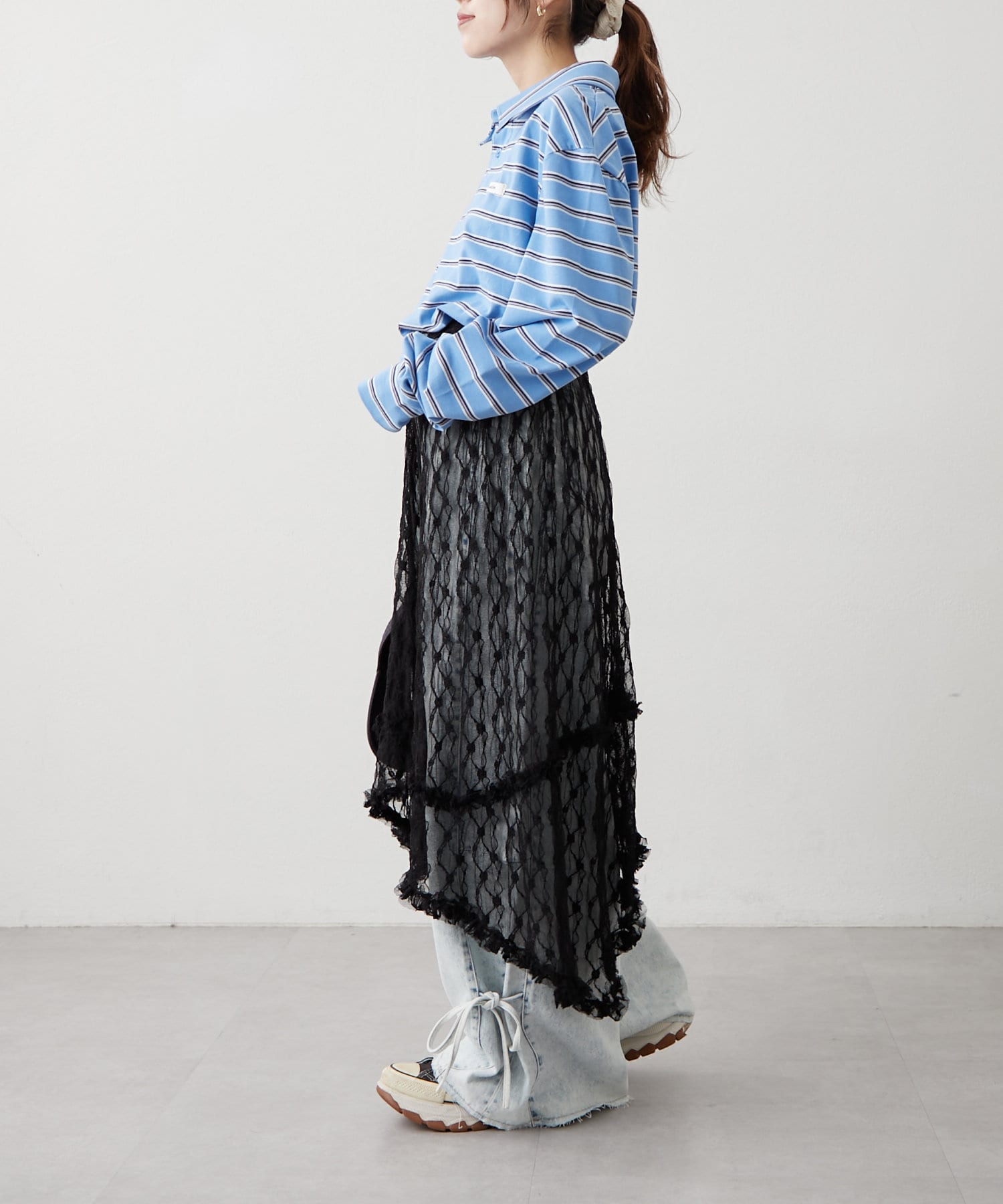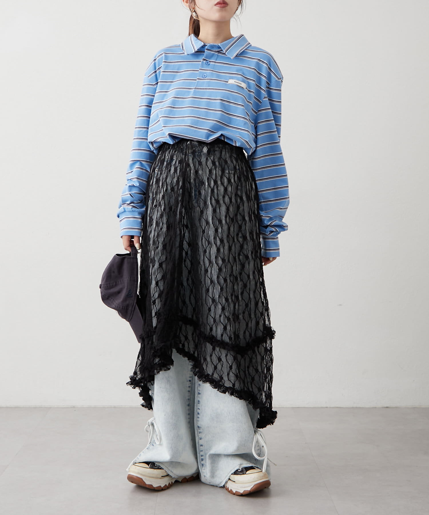 ・レース素材などのやわらかい印象のボトムスと合わせてフェミニン要素をプラスすると今っぽく着こなせます