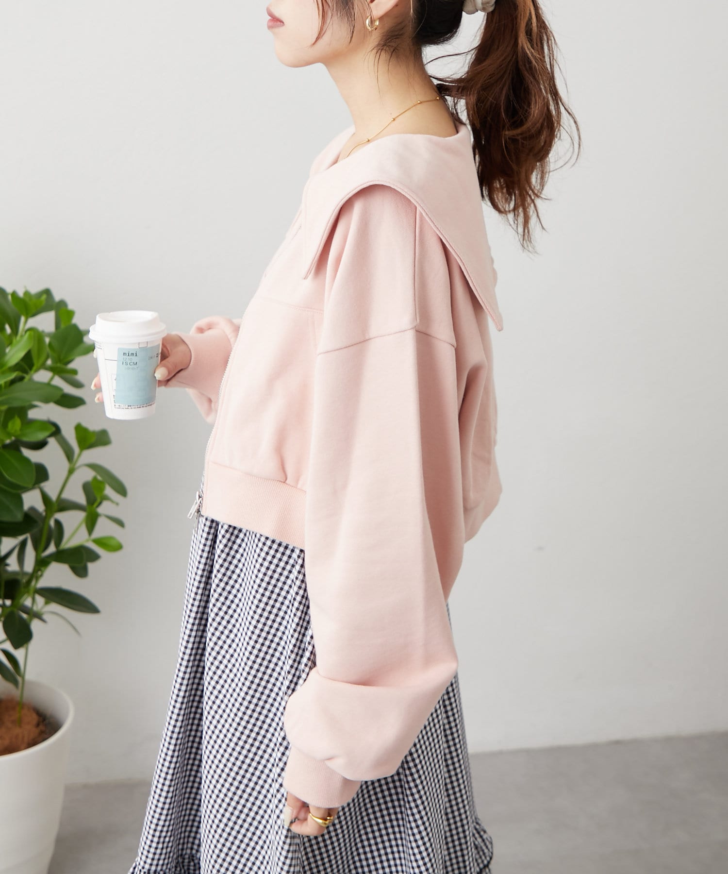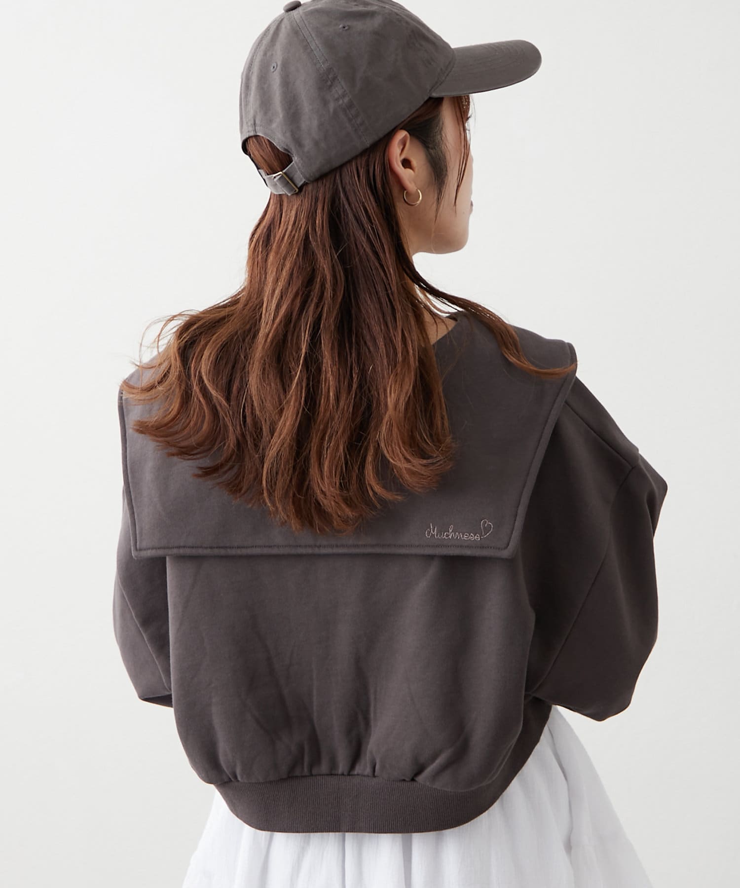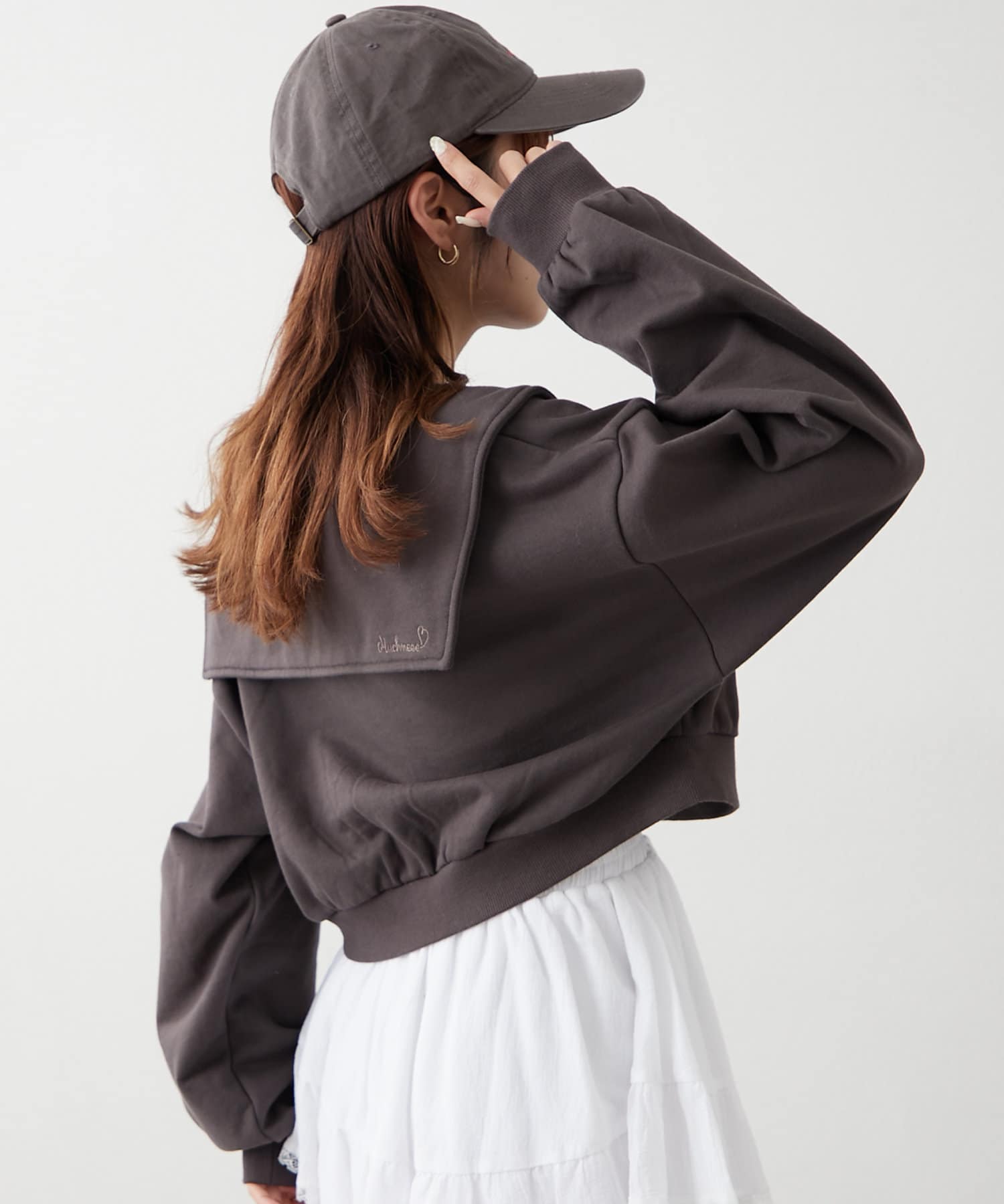衿のラメ刺しゅうがポイントのセーラーカラースウェット