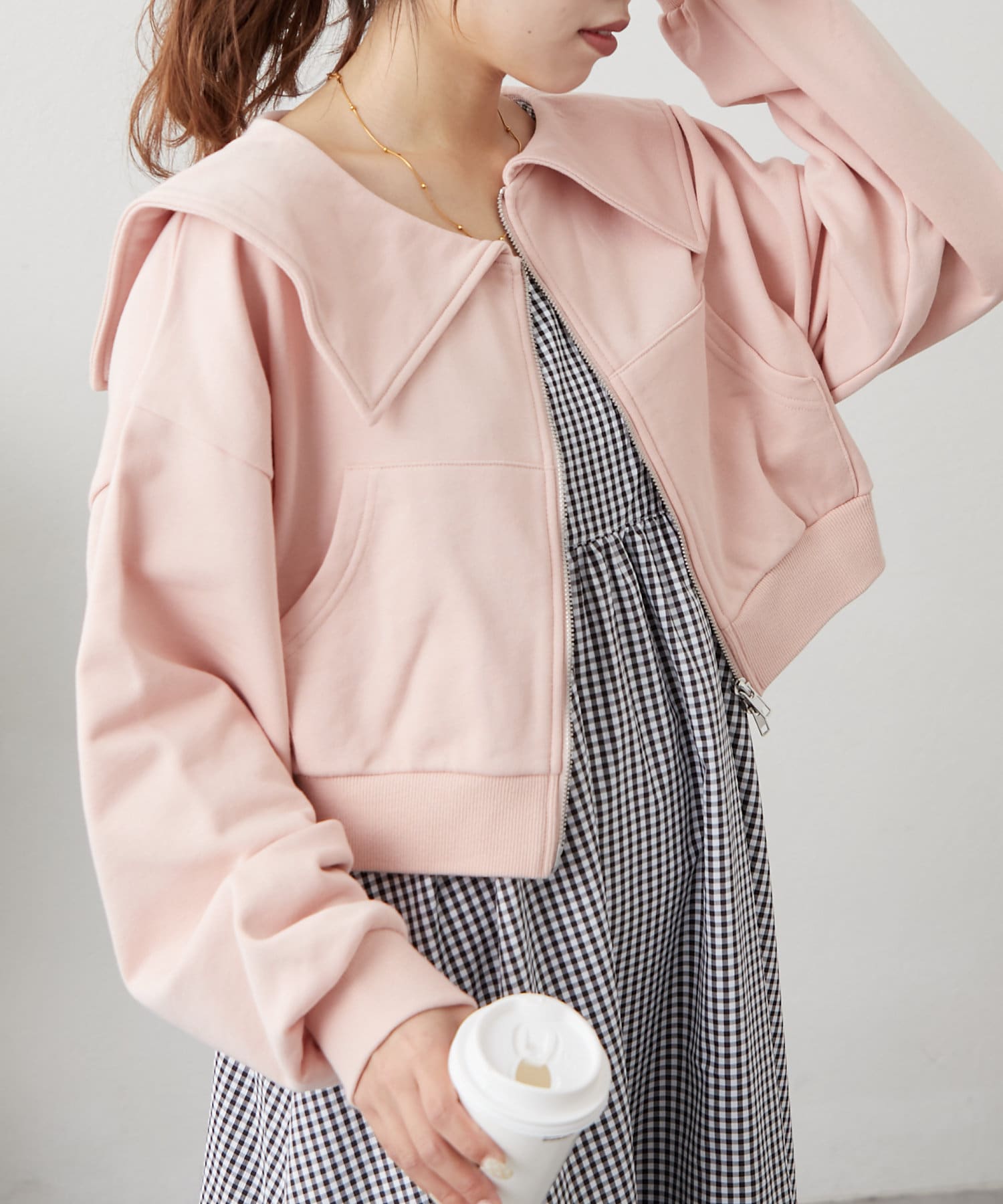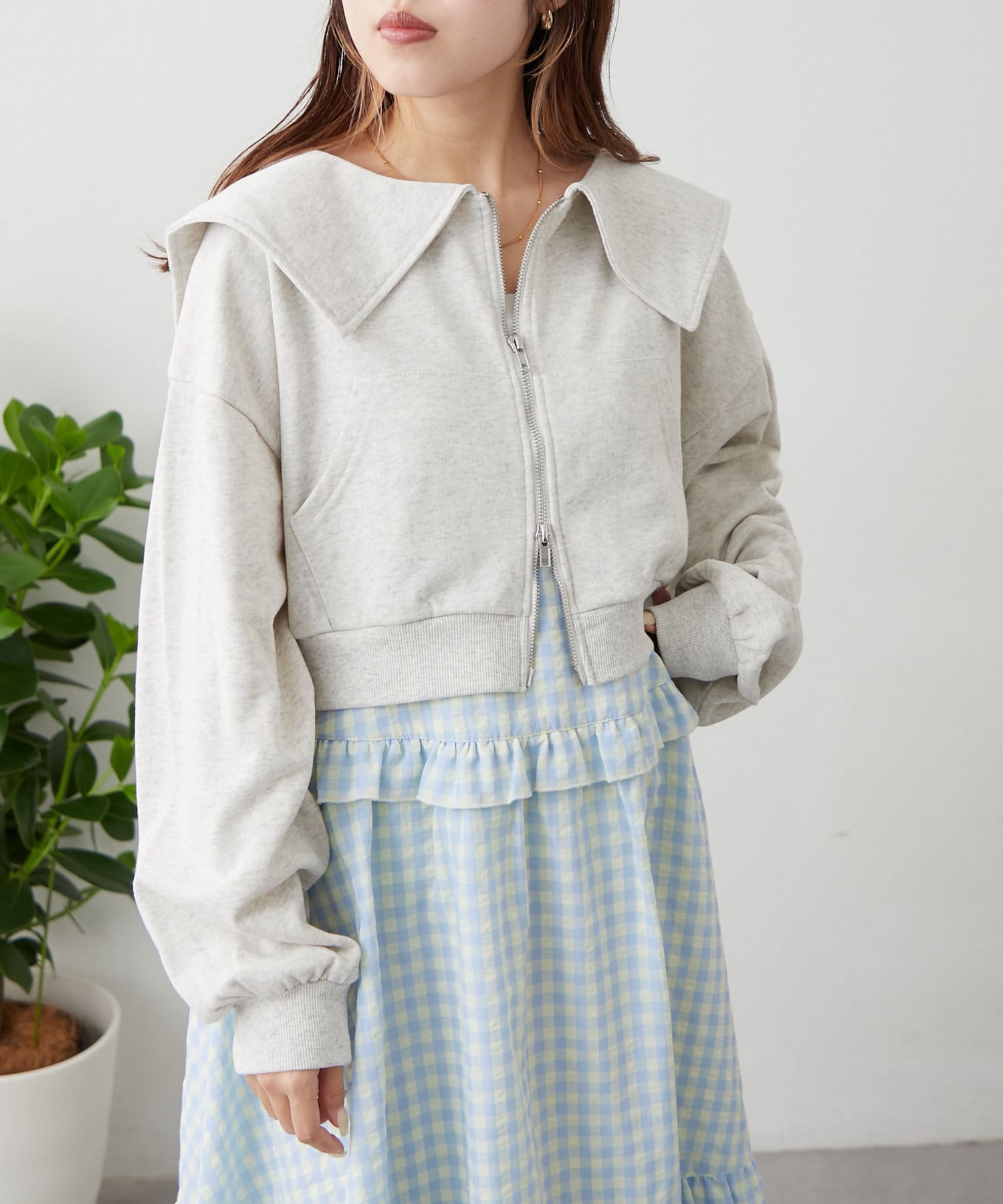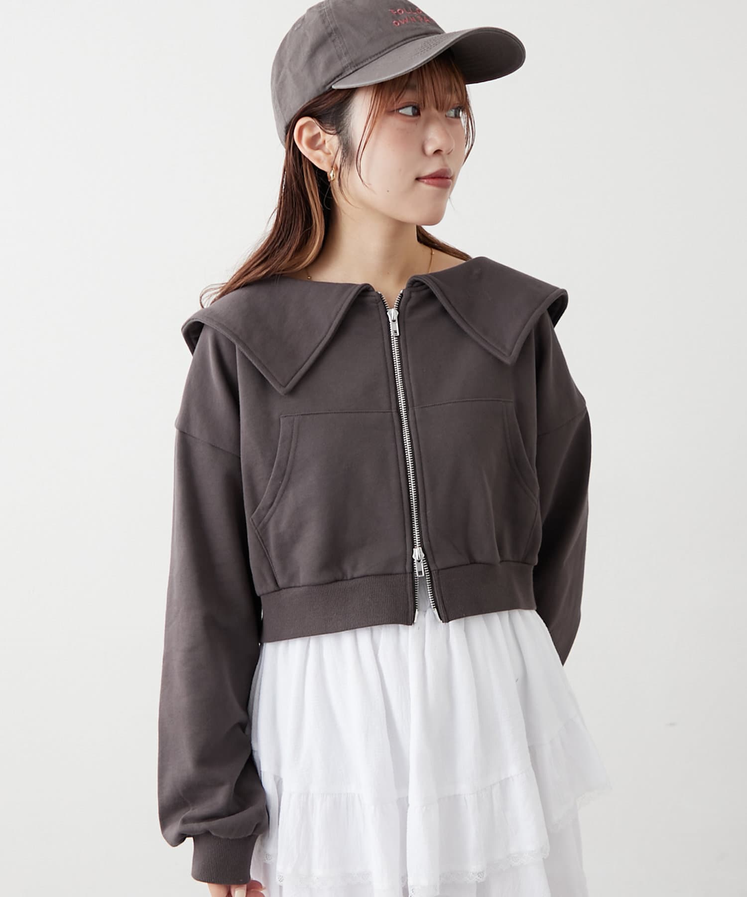 衿のラメ刺しゅうがポイントのセーラーカラースウェット