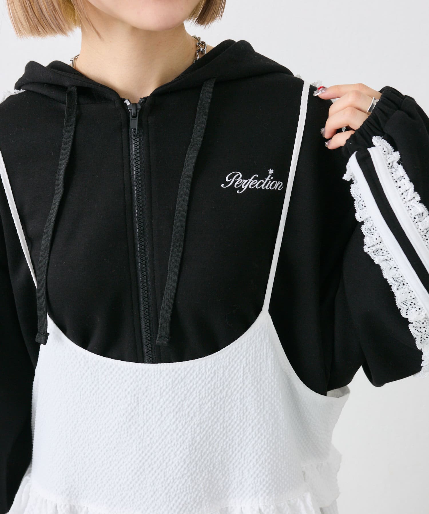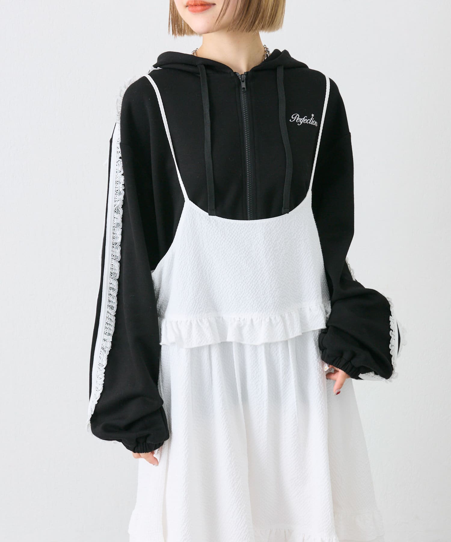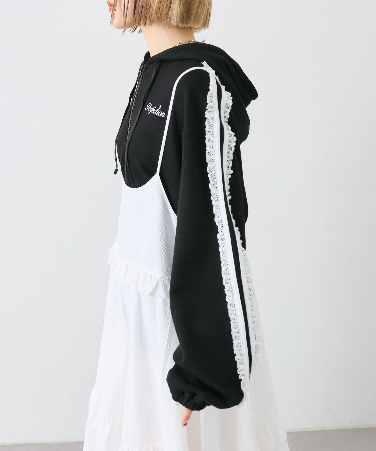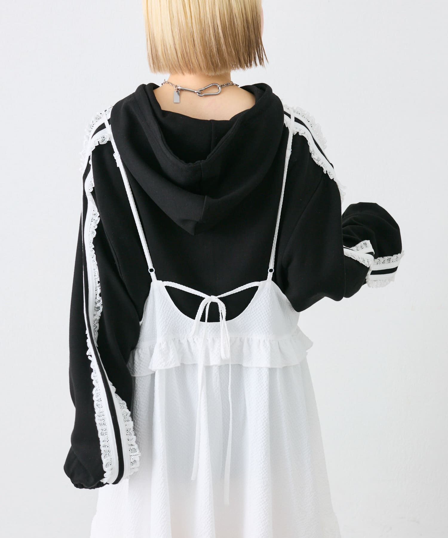 w closet(ダブルクローゼット) ポンチレースラインパーカー