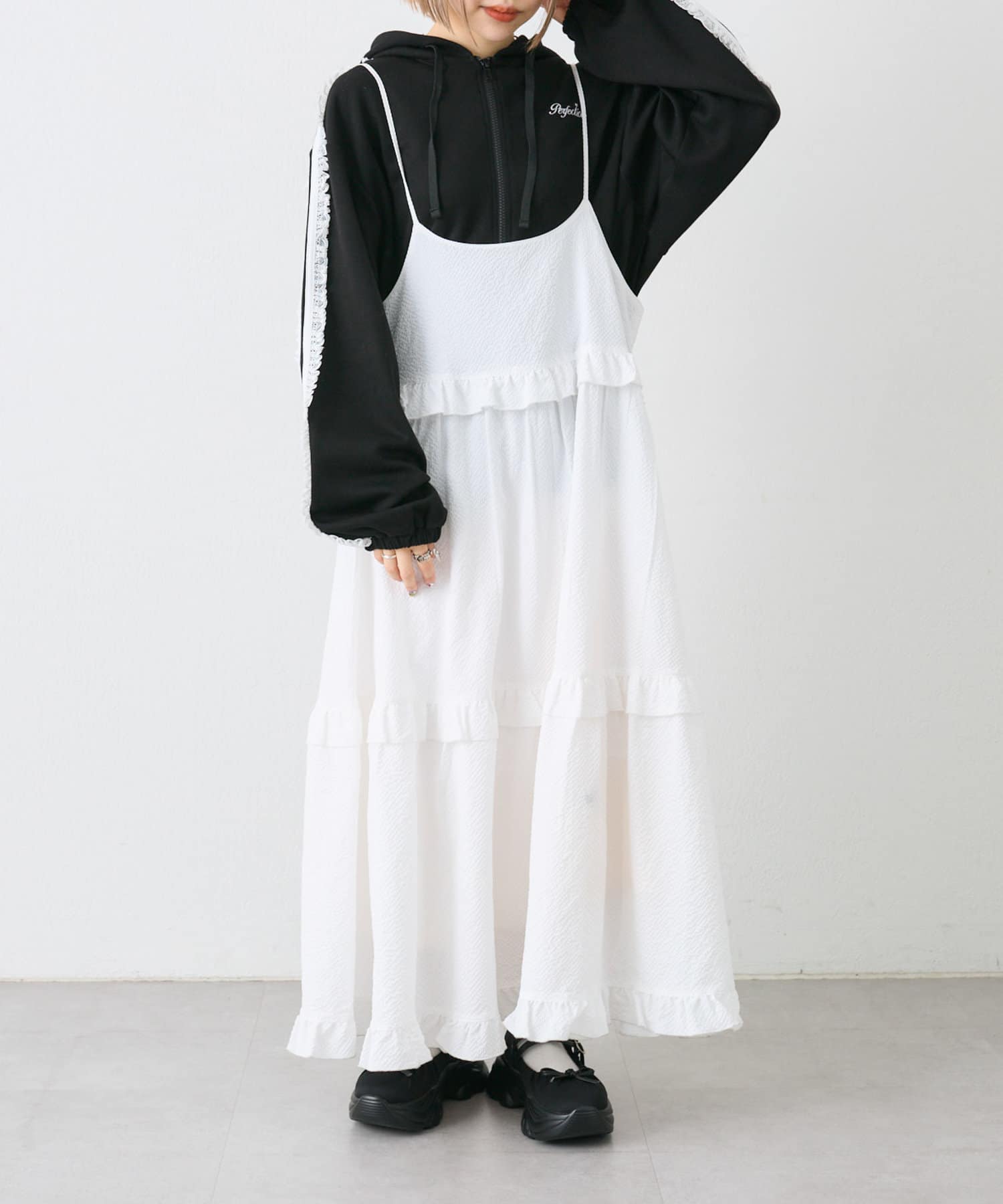 ・キャミワンピースなどのレディアイテムと合わせたミックステイストな着こなしが可愛くておすすめです◎