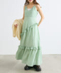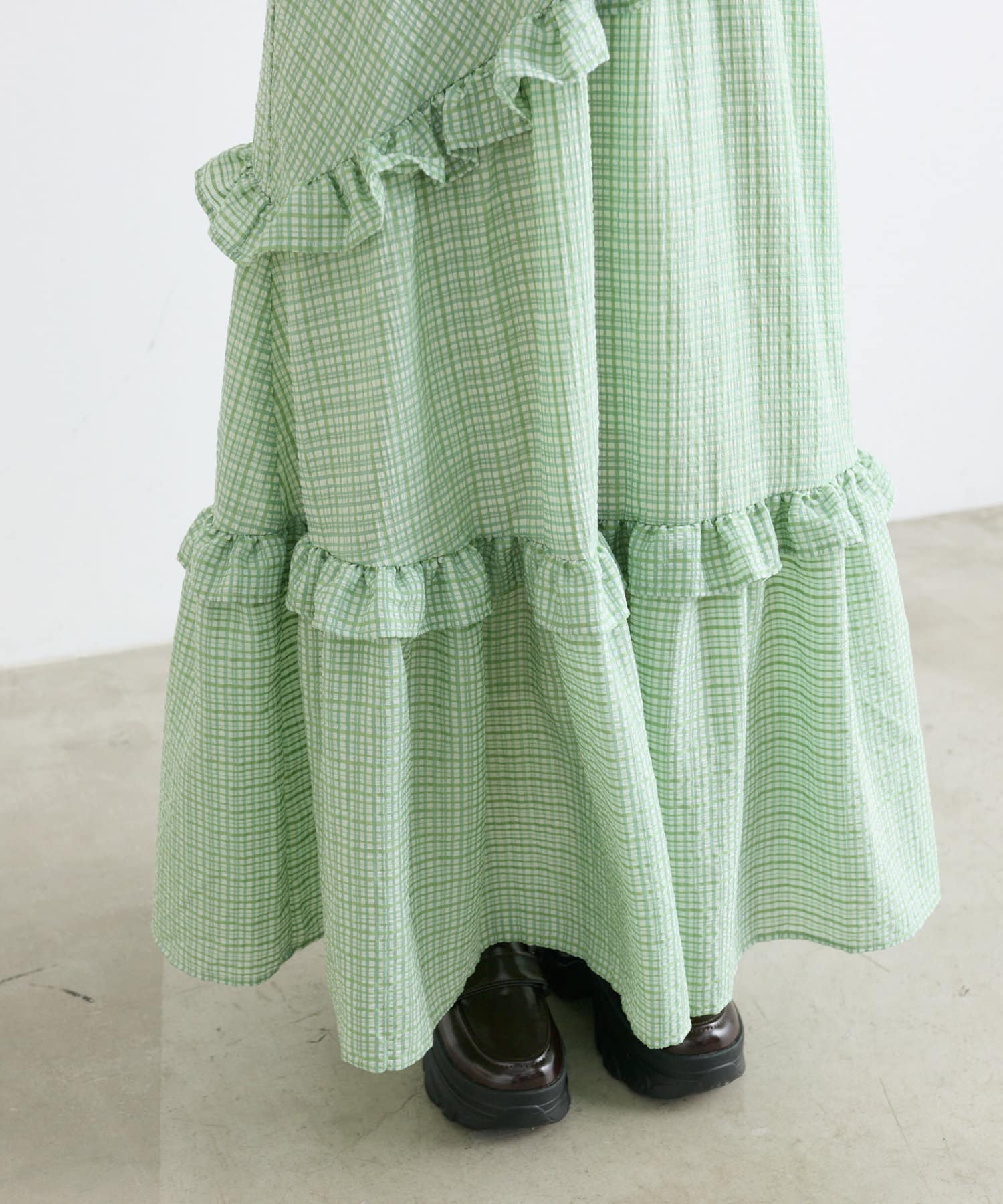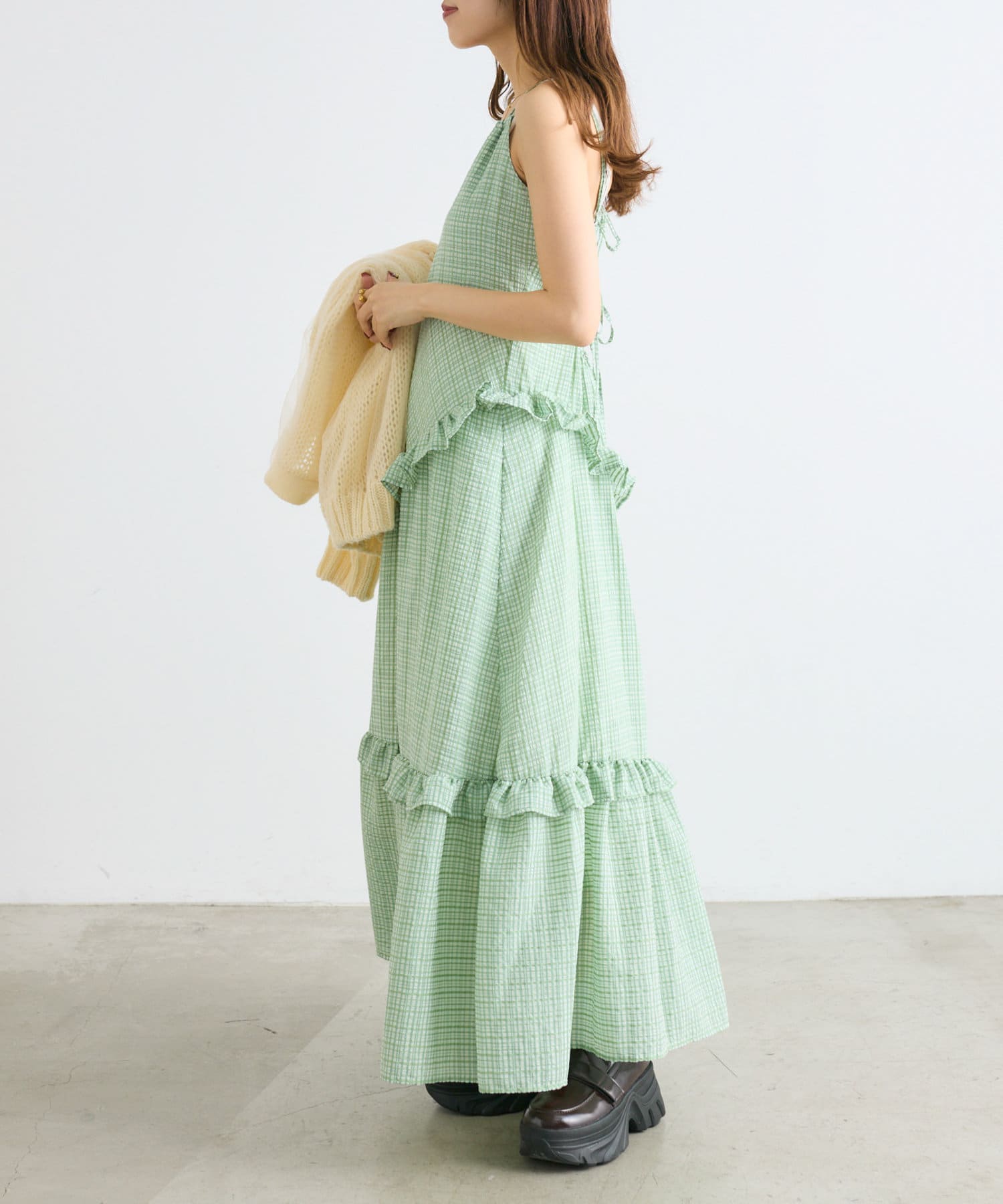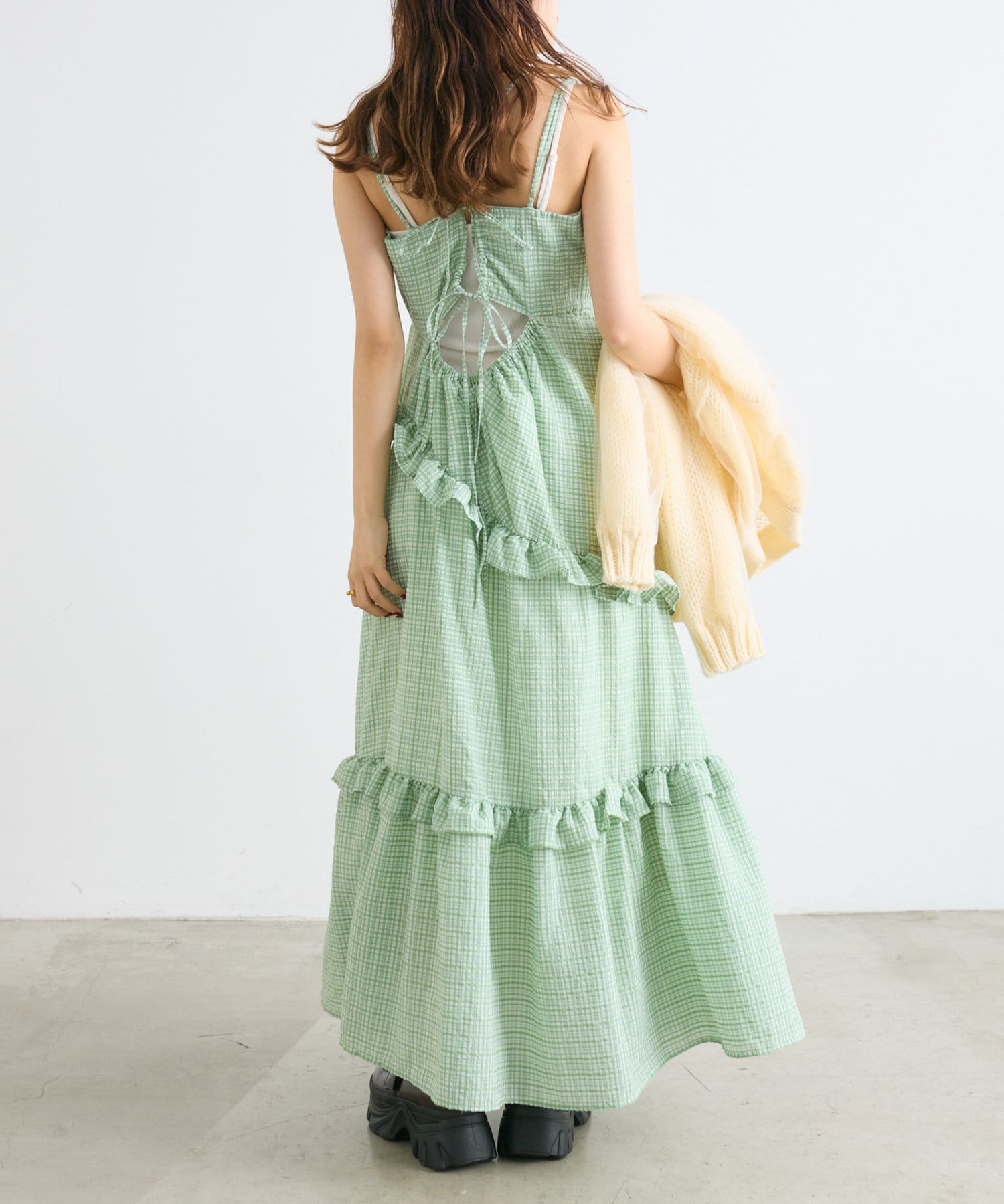 アシメにデザインされたフリルがお洒落なキャミワンピ