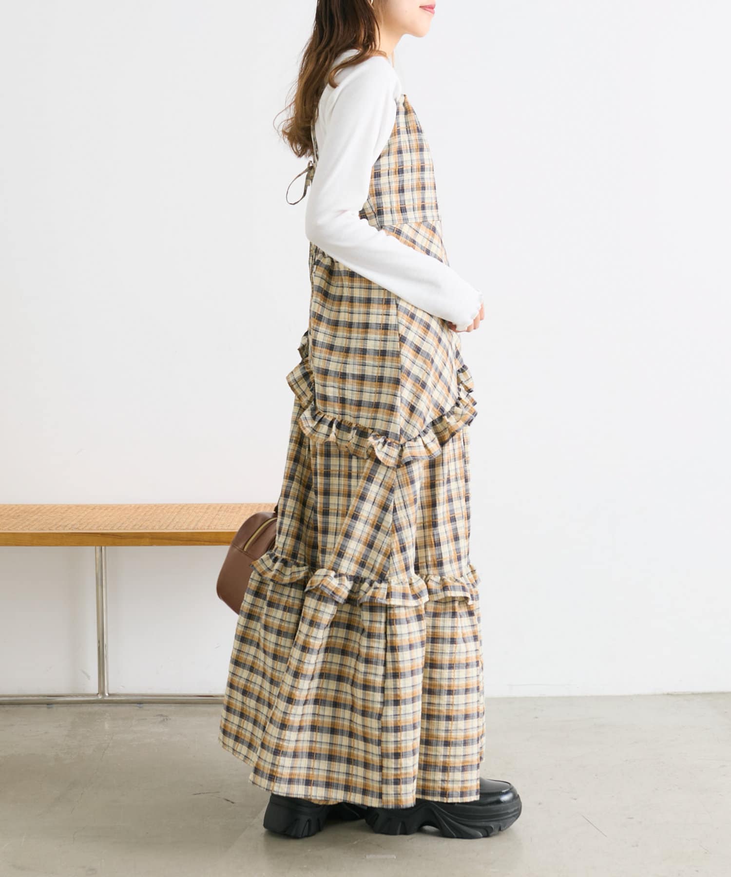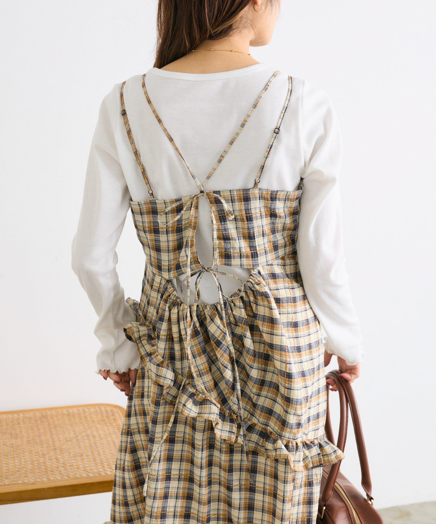 ・ワンピの上からトップスを重ねるとスカートとしても着まわせます◎