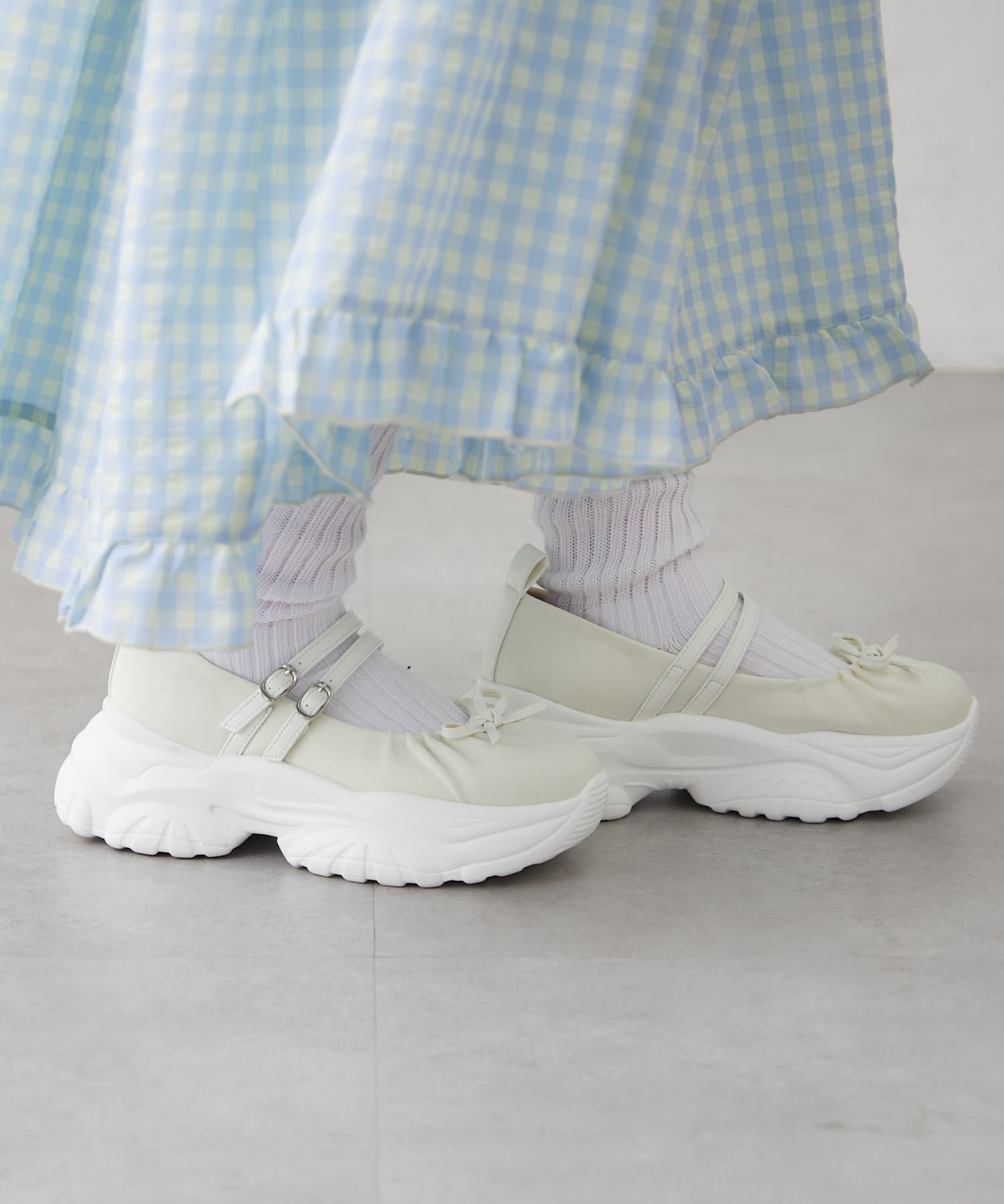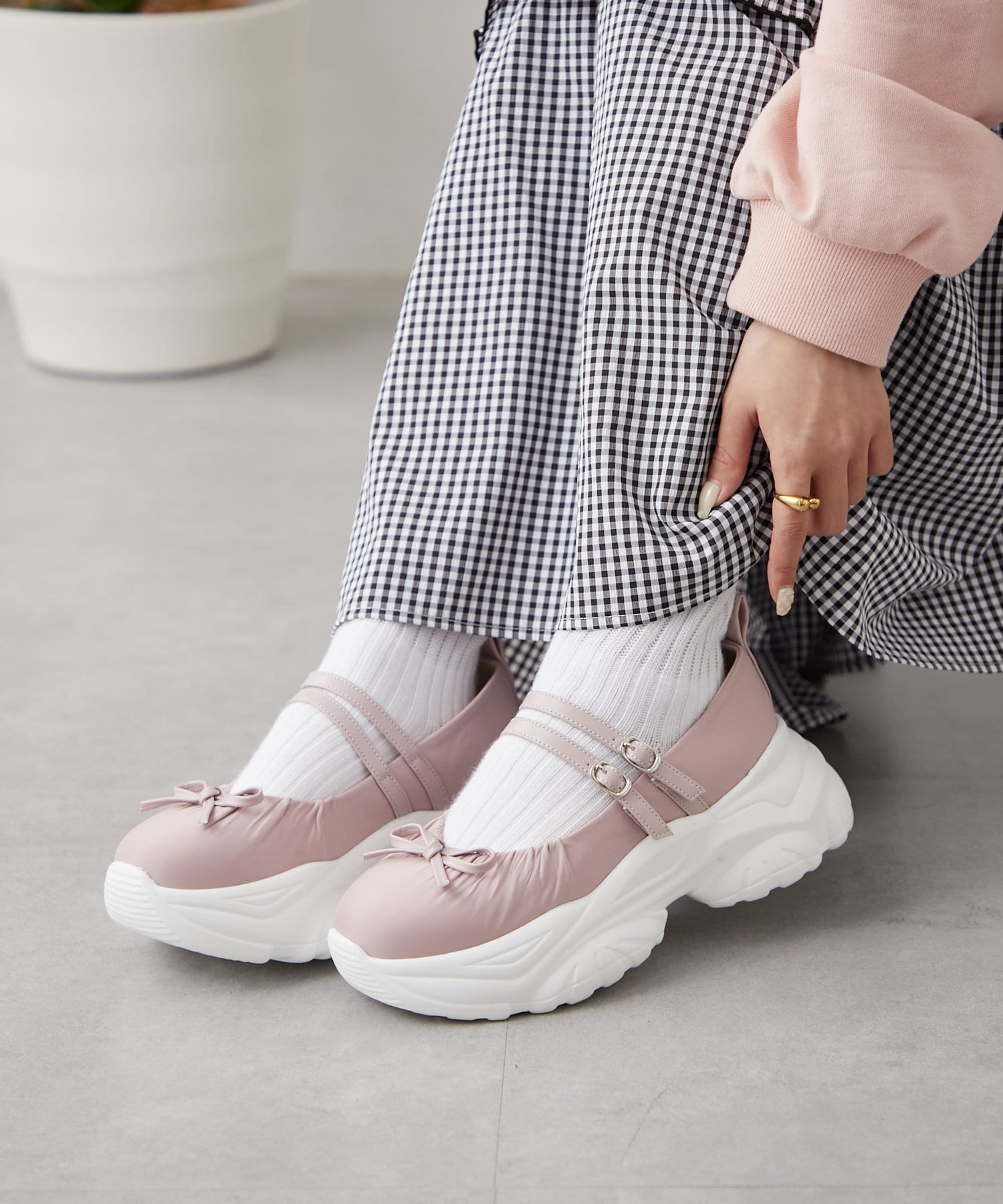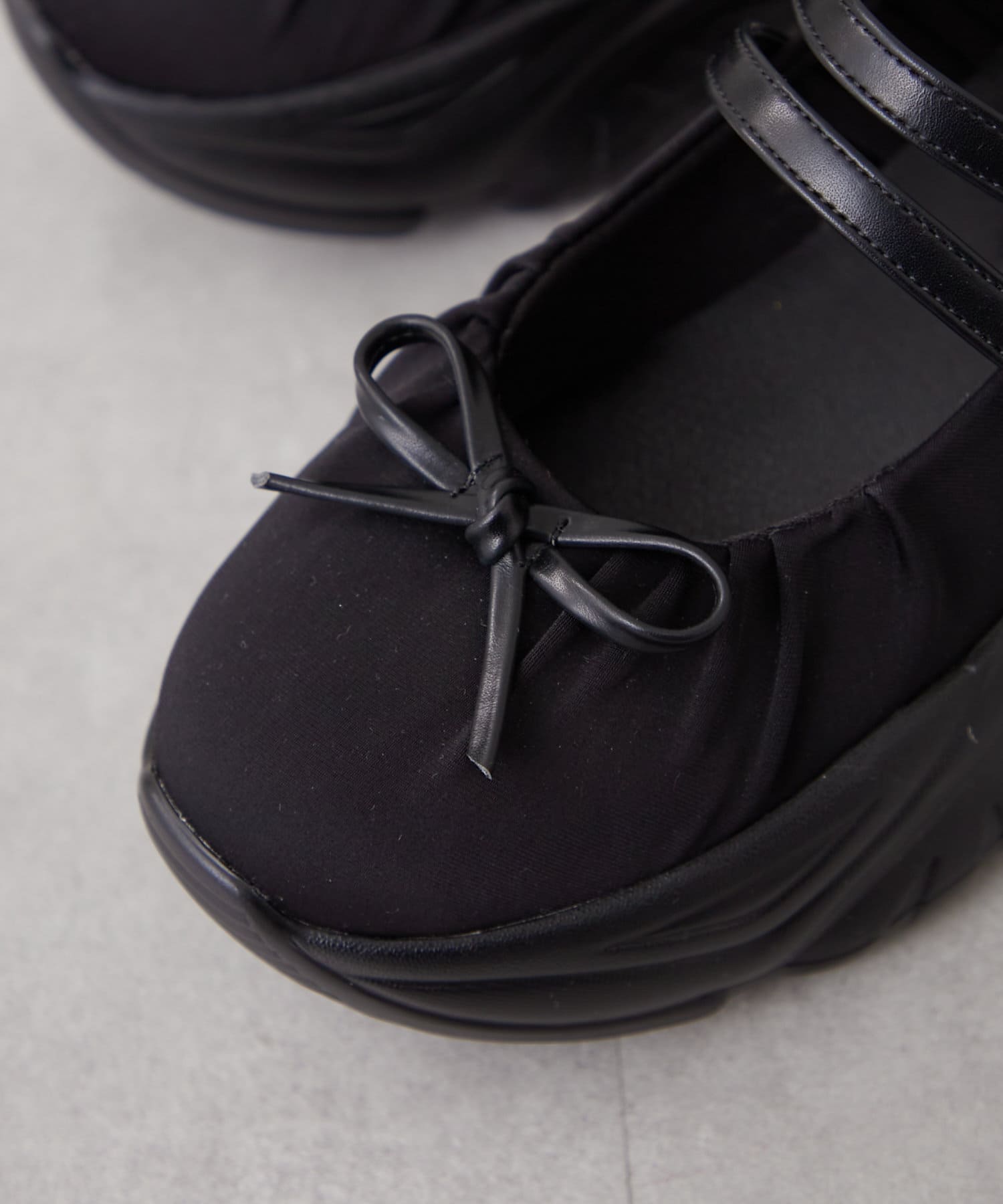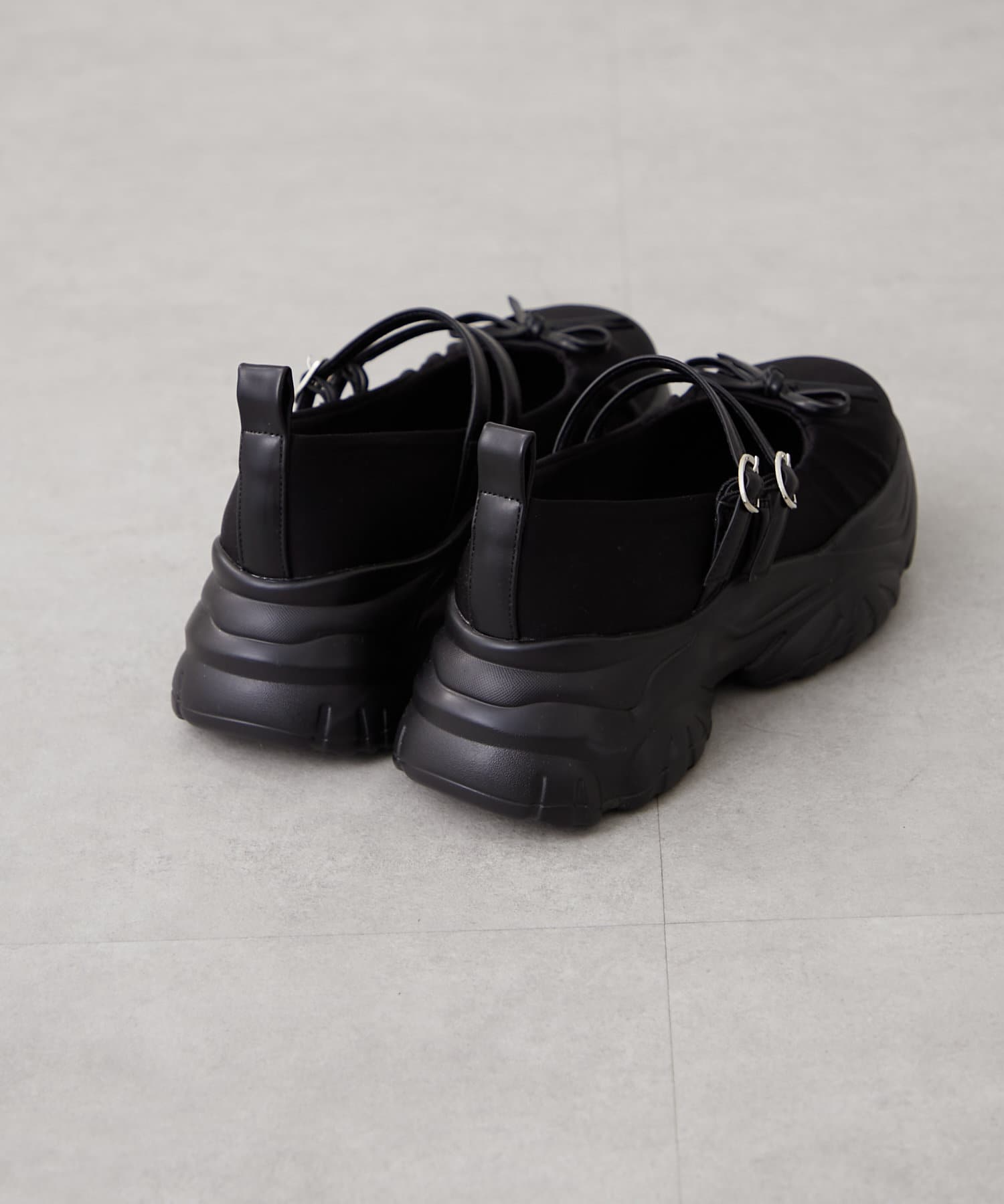 ・厚底スニーカーデザインに華奢なベルトをプラスしたバレエシューズ