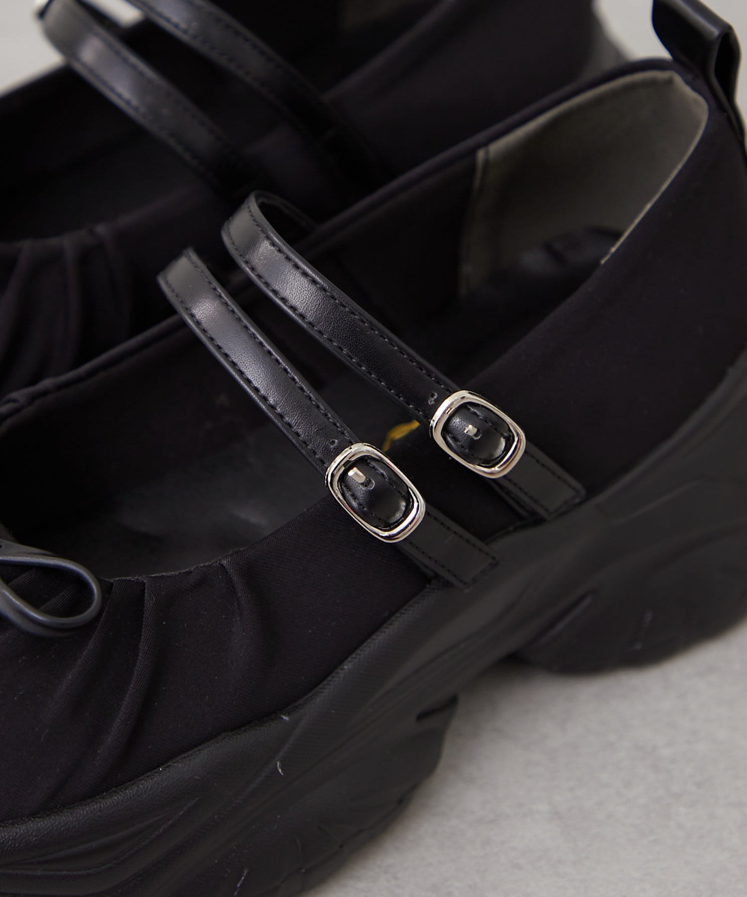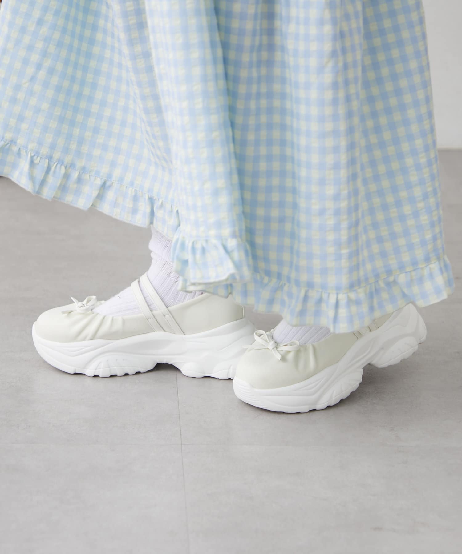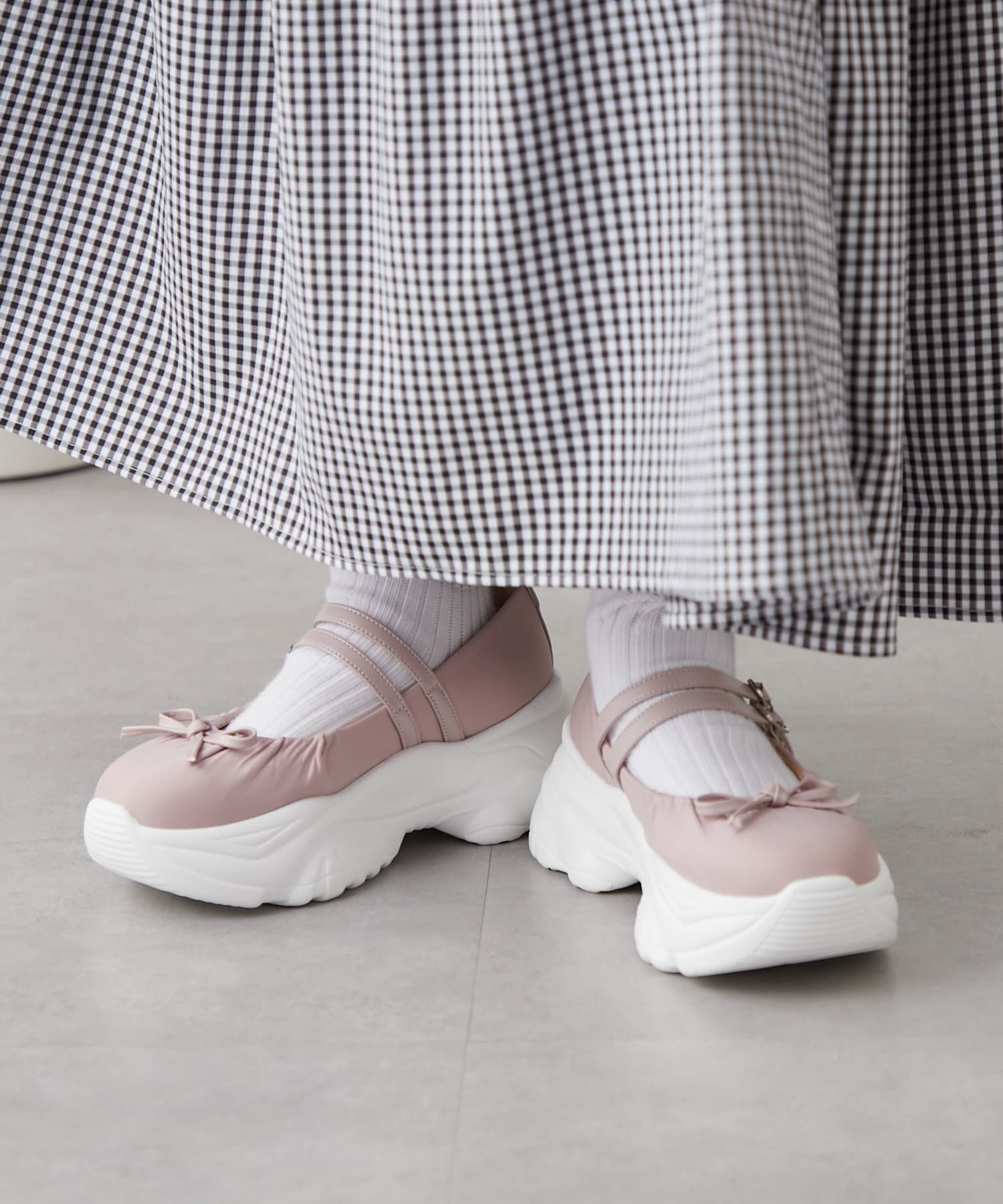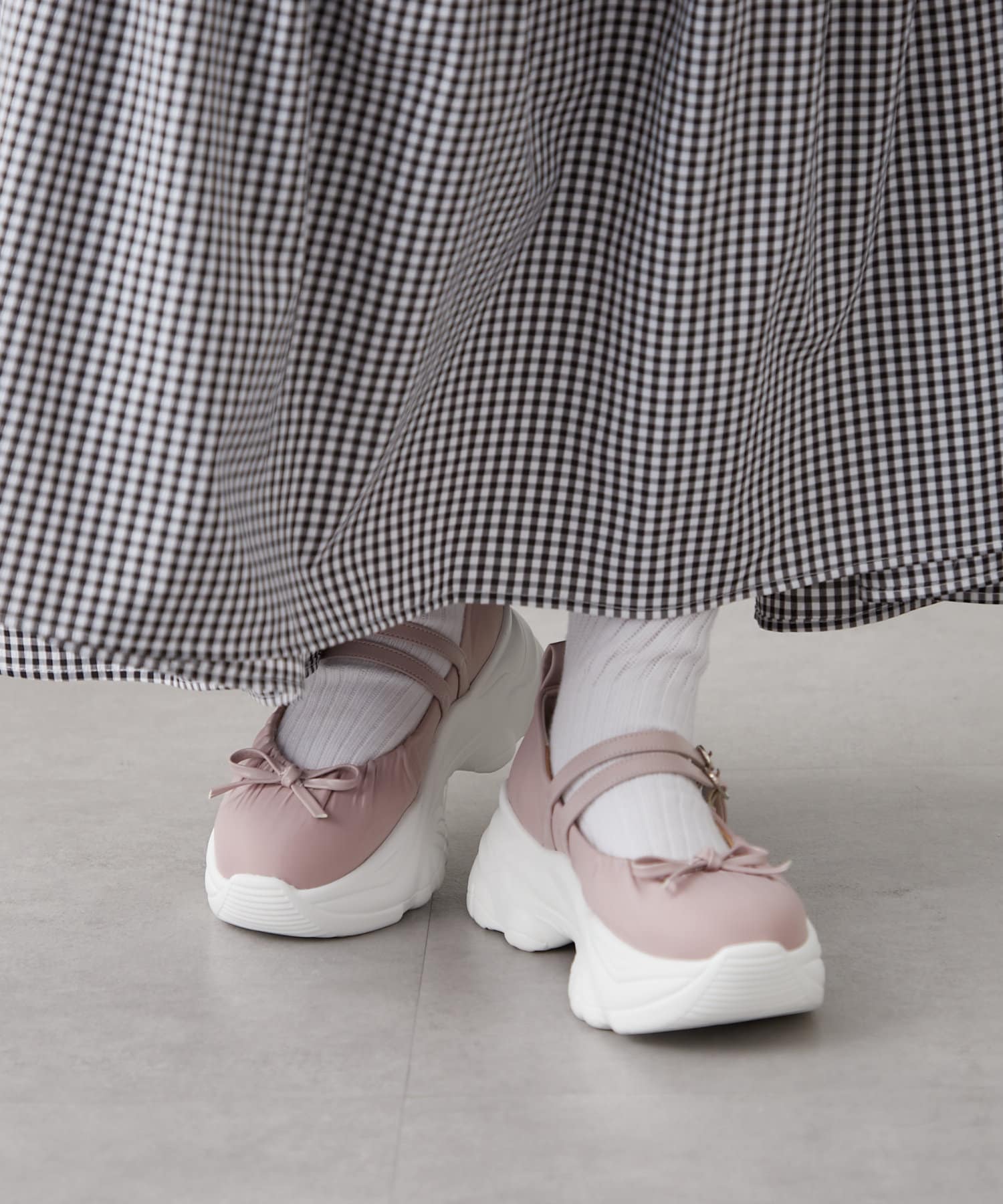 ・厚底スニーカーデザインに華奢なベルトをプラスしたバレエシューズ