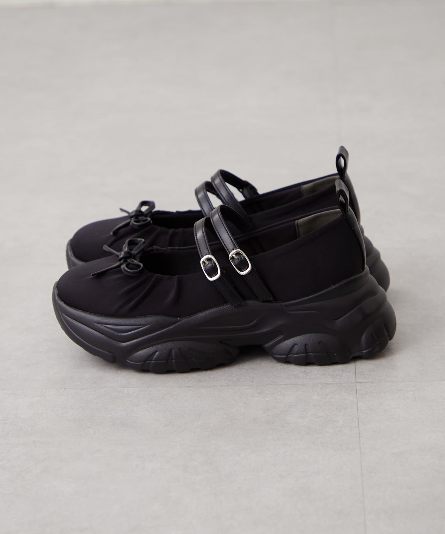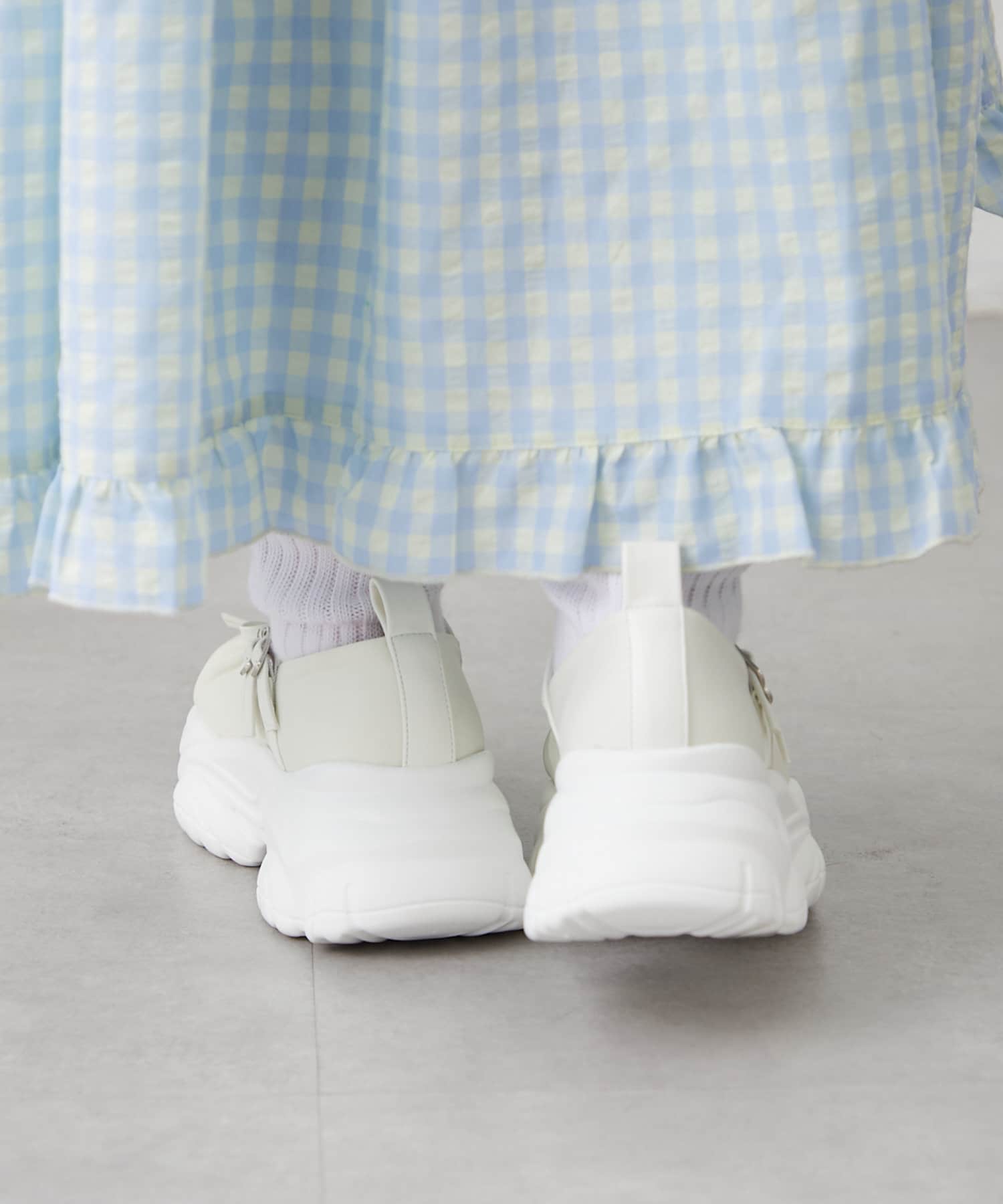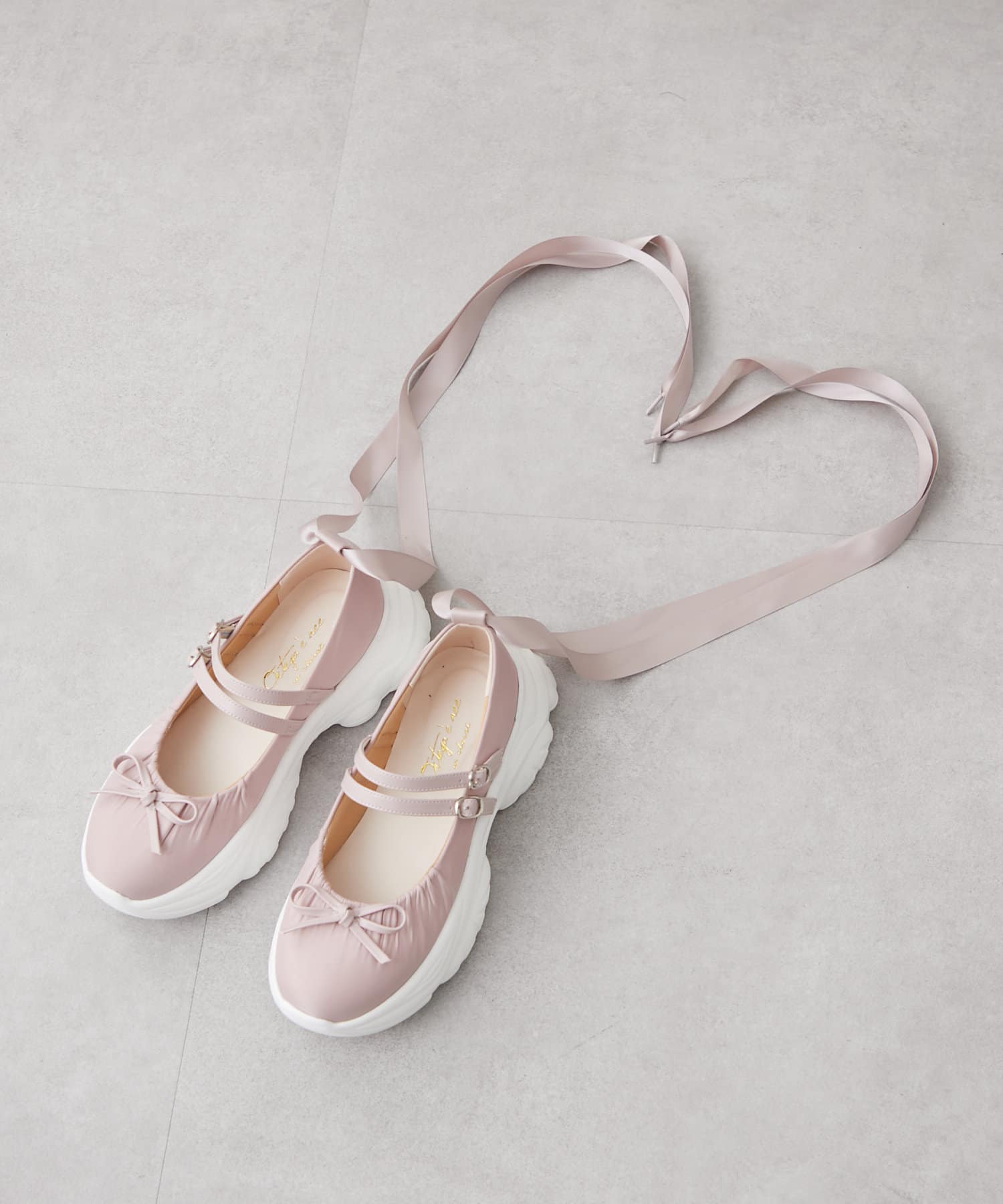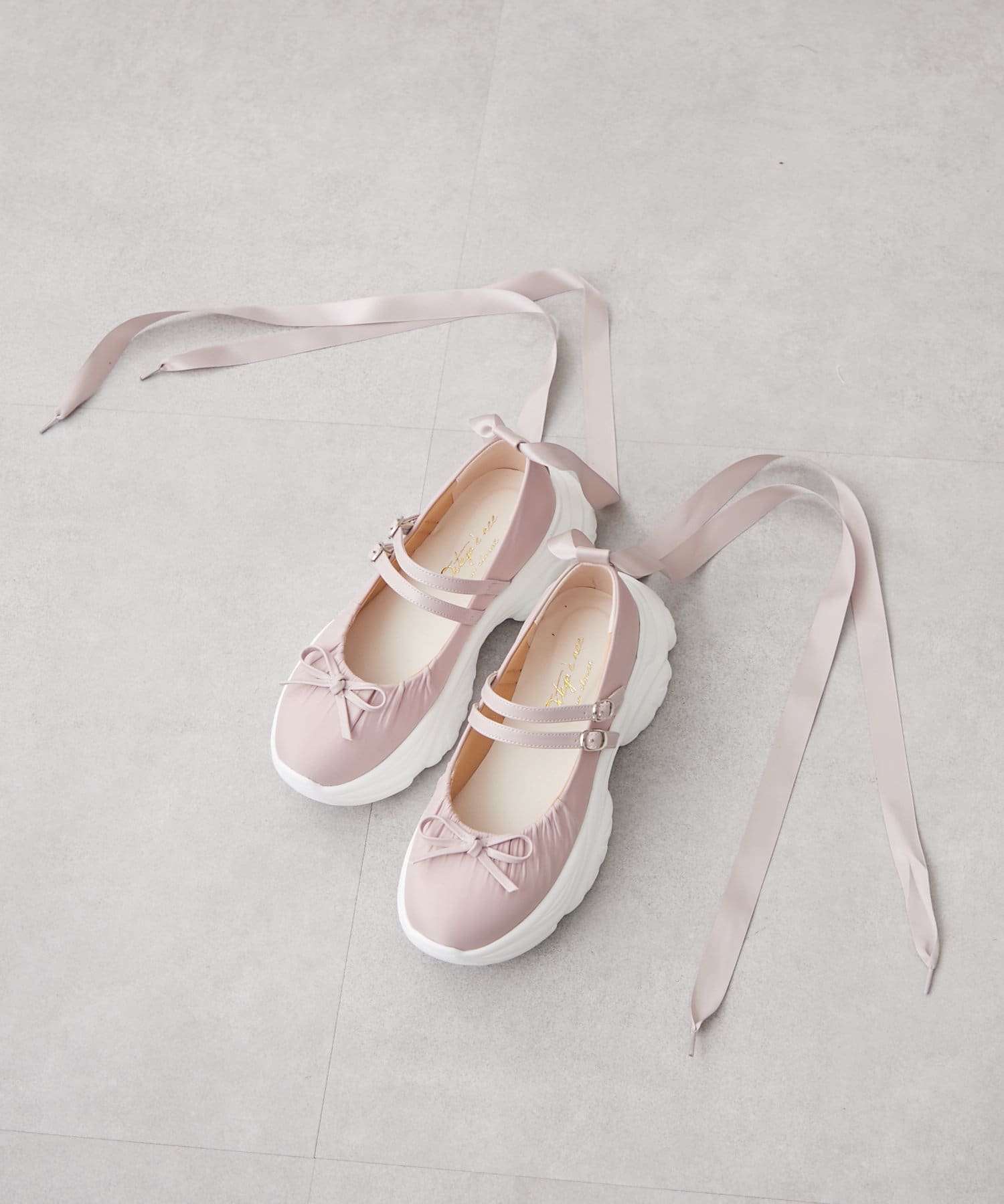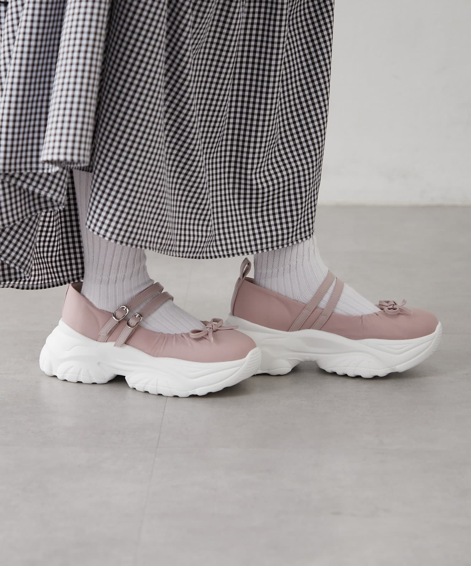 ・厚底スニーカーデザインに華奢なベルトをプラスしたバレエシューズ