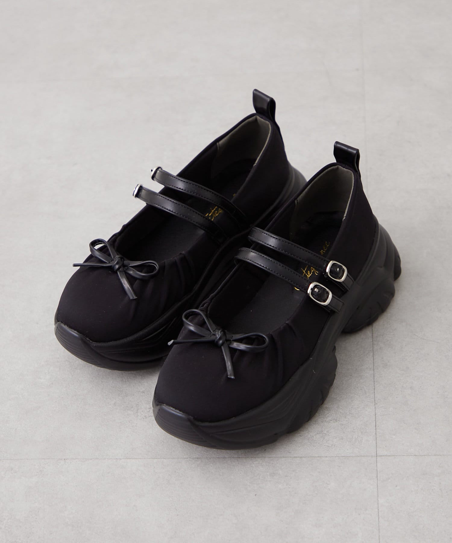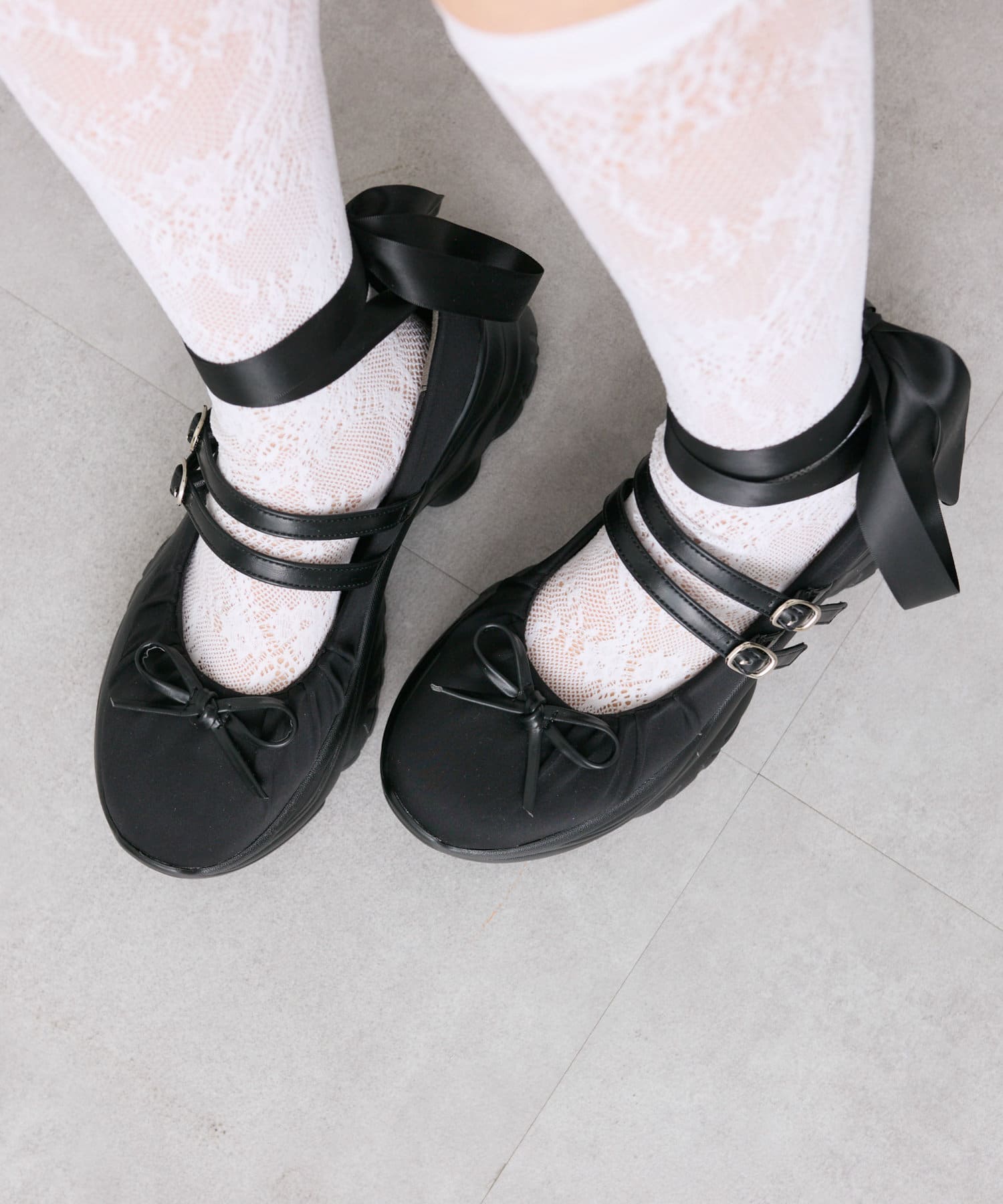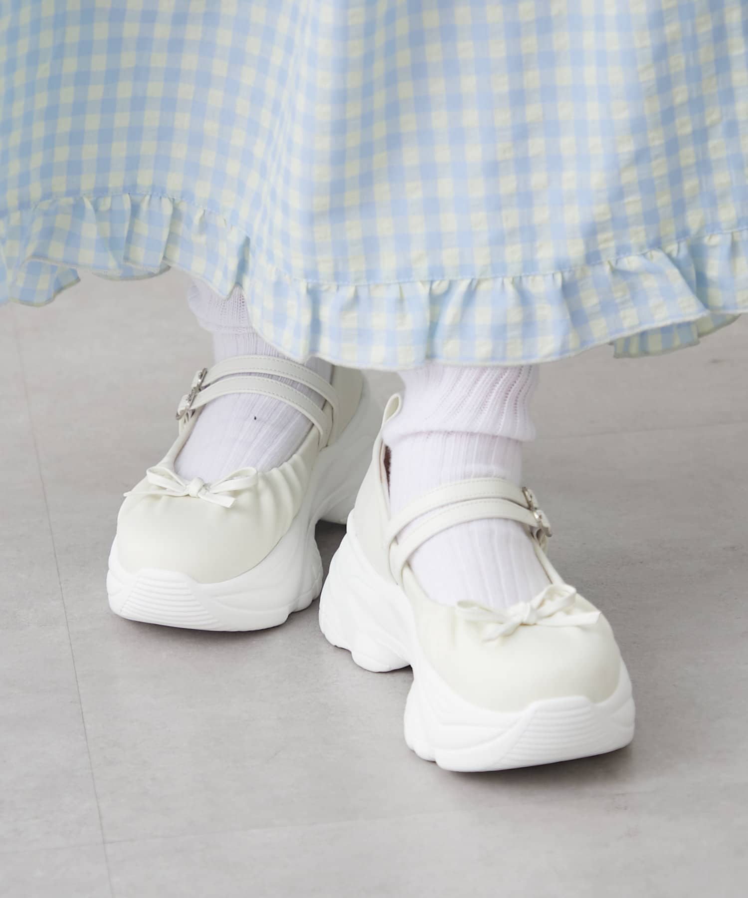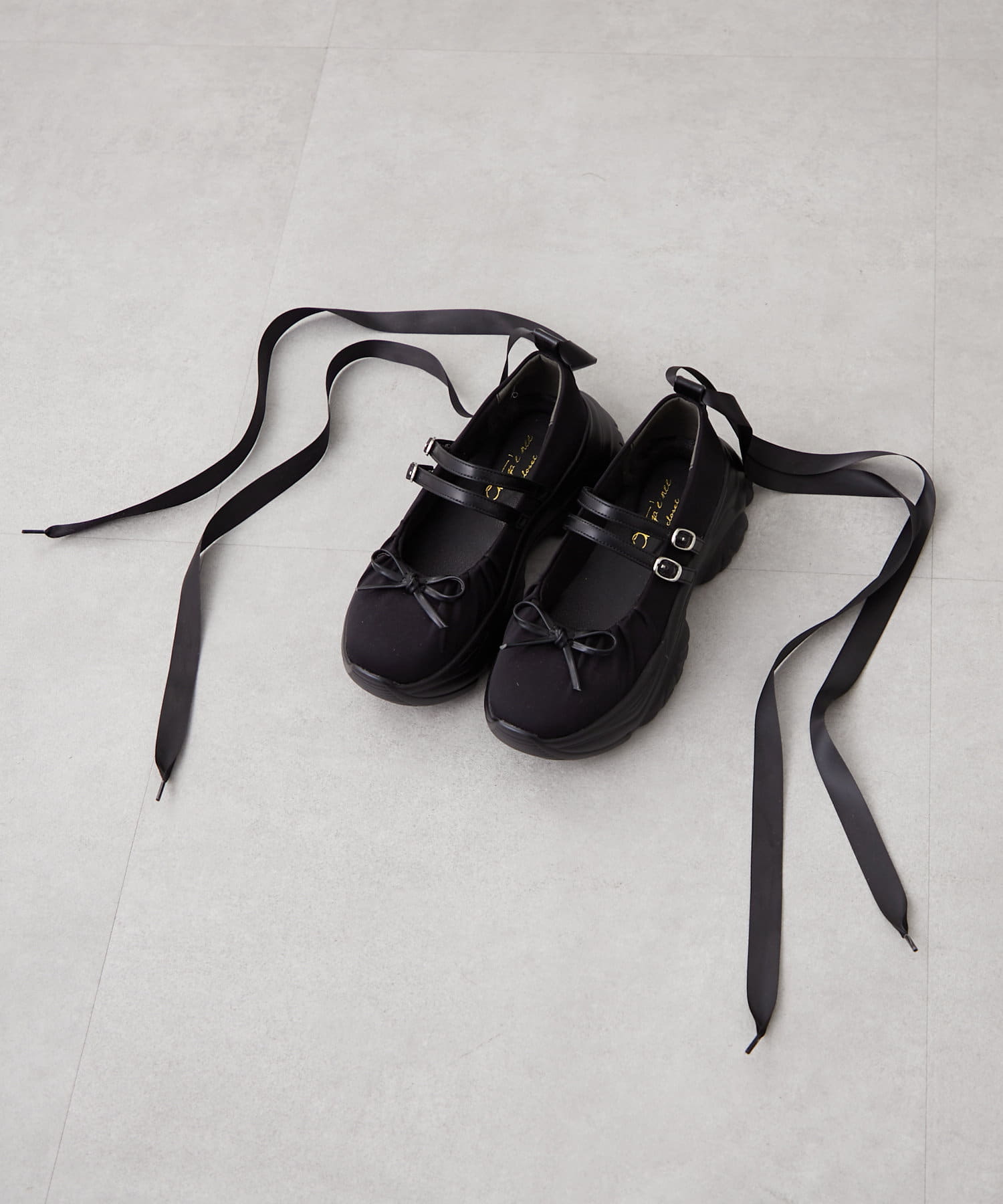 ・厚底スニーカーデザインに華奢なベルトをプラスしたバレエシューズ