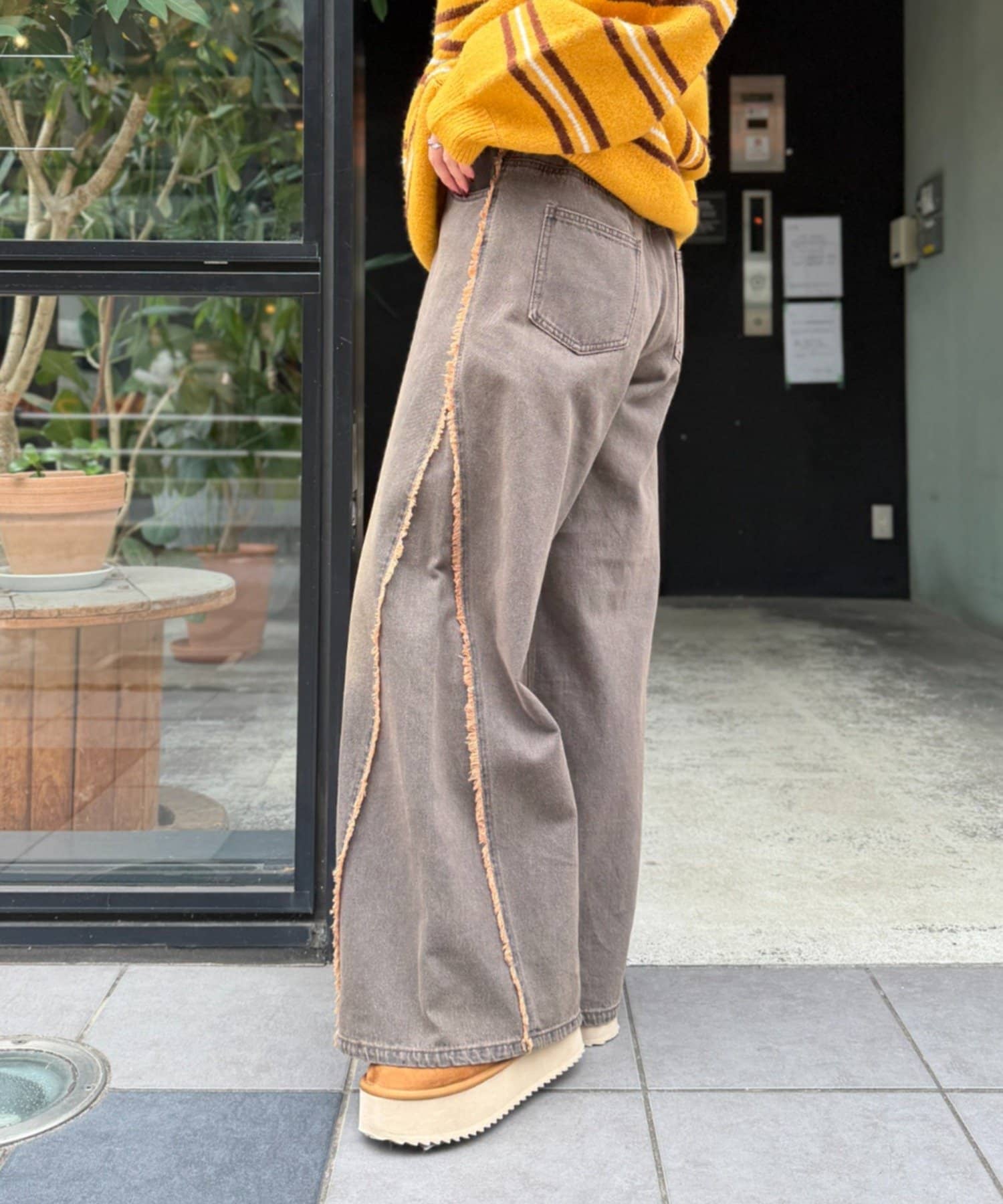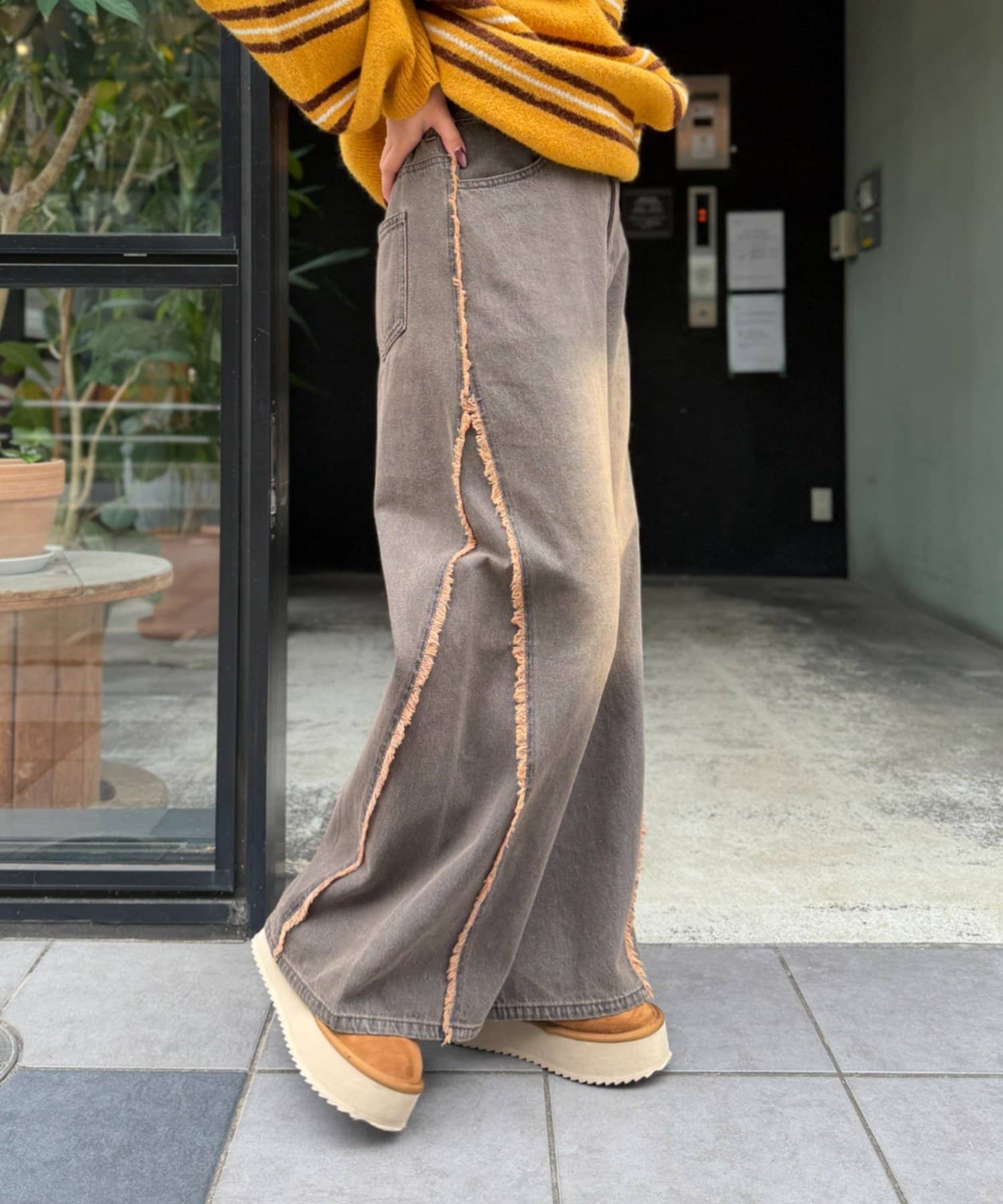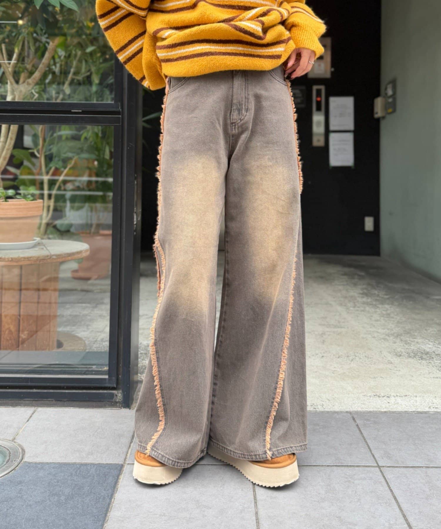 【ベージュが再登場!12月26日予約開始♪】【XS・S・Mサイズ展開】フリンジバギーデニムパンツ