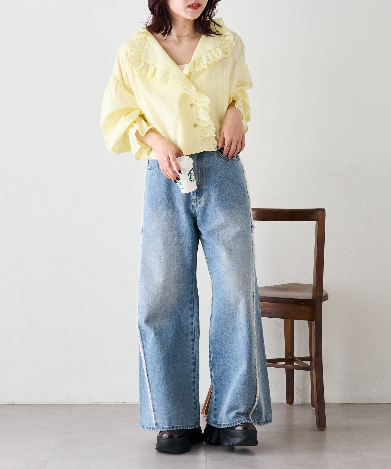 ・デニムと合わせた甘めカジュアルスタイルは間違いなしです!
