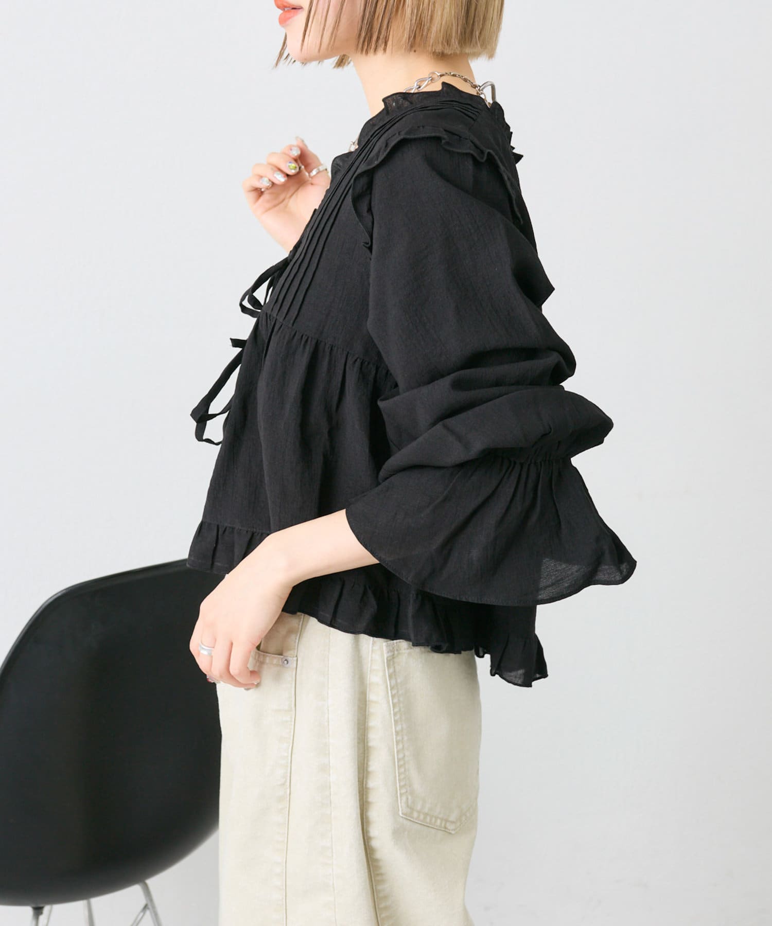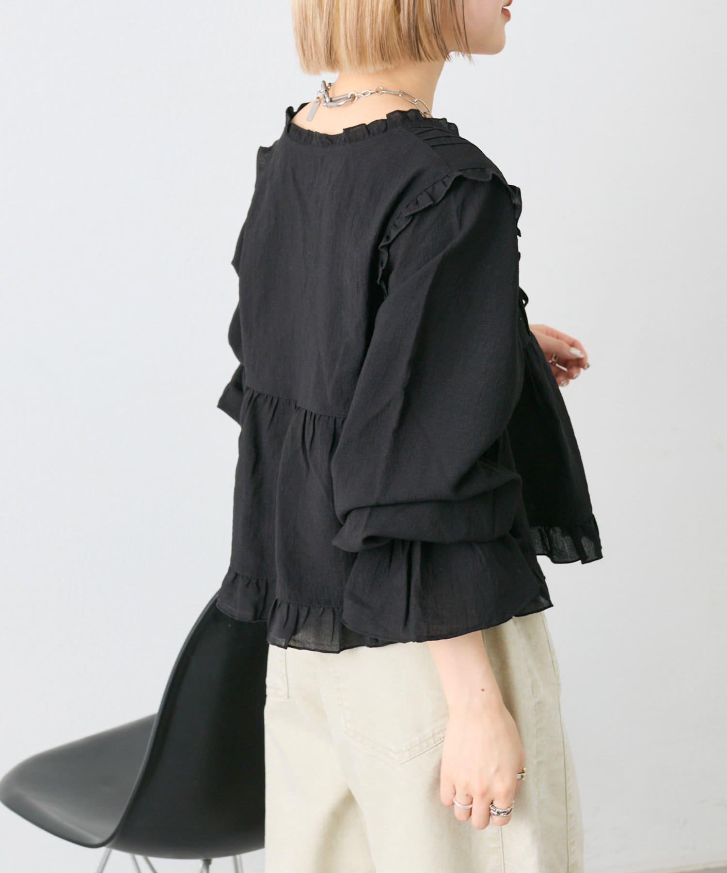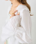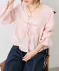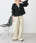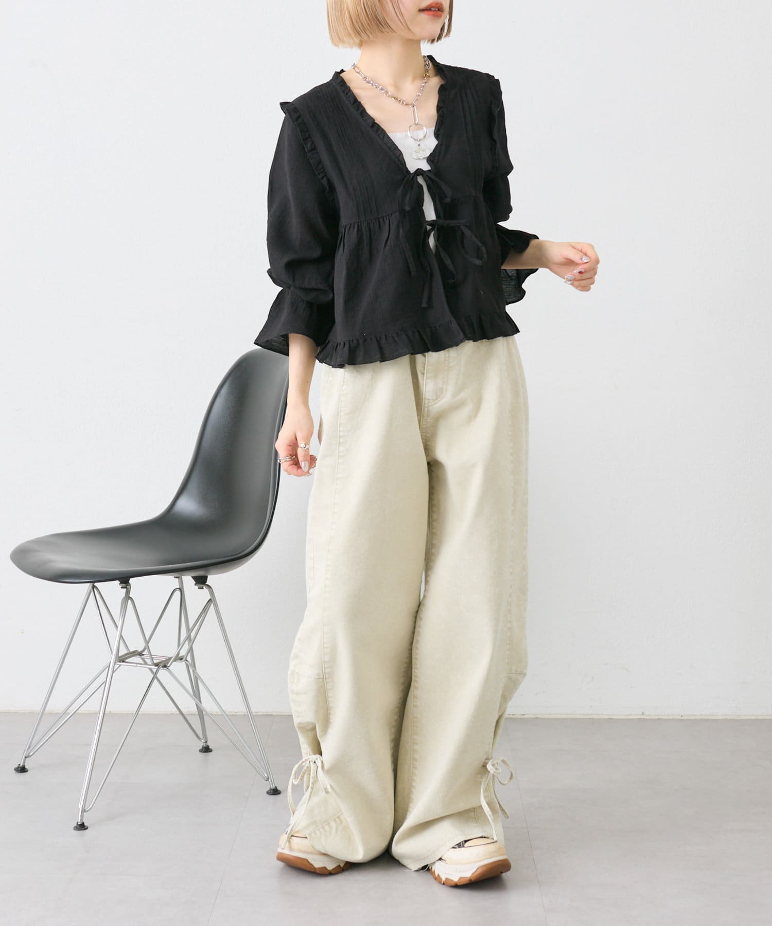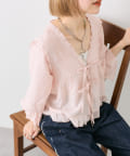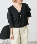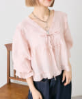 ・さりげないレース×柔らかな生地のブラウスで甘すぎない印象に