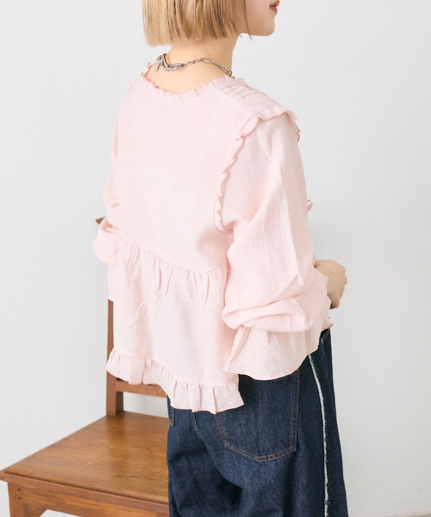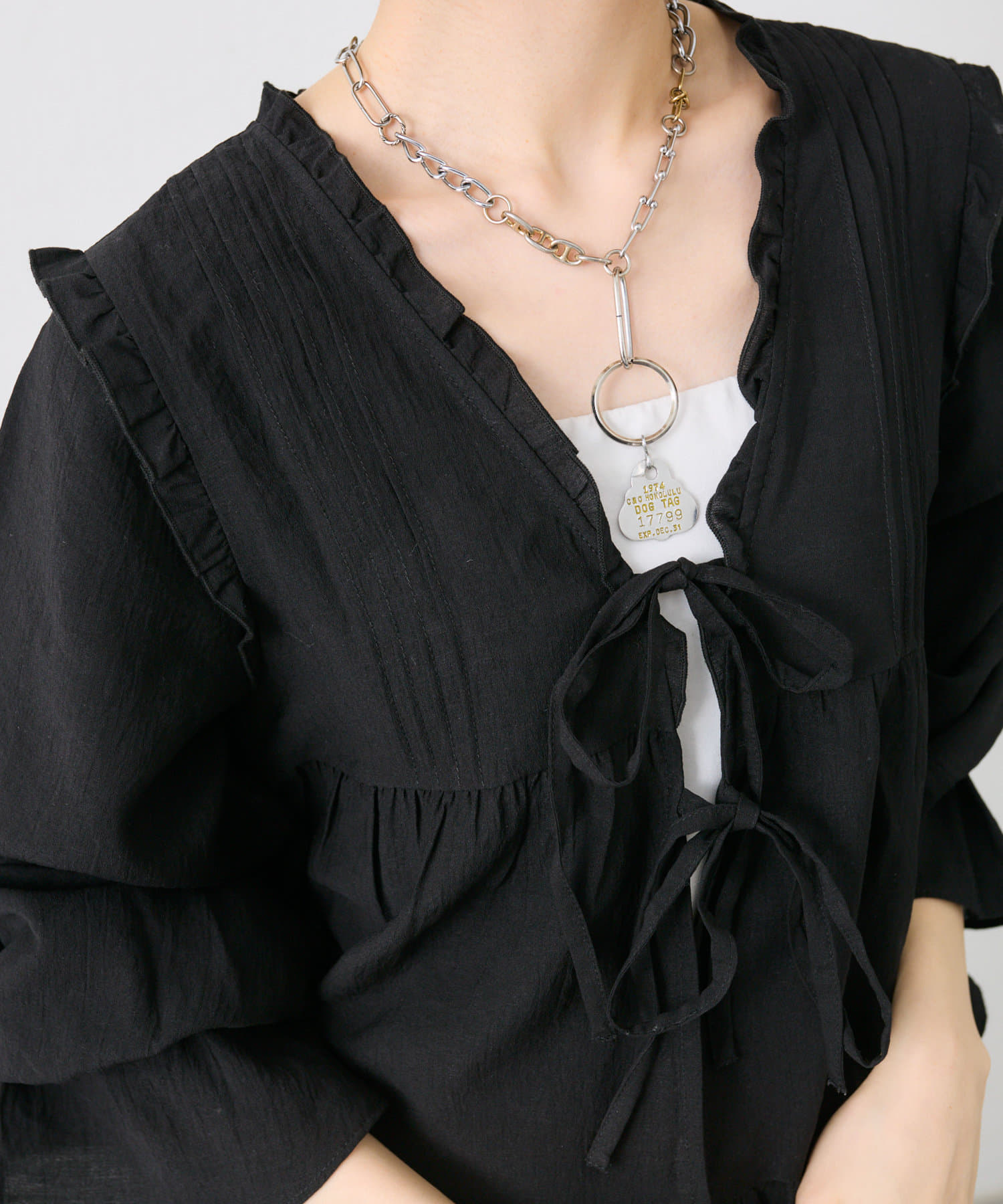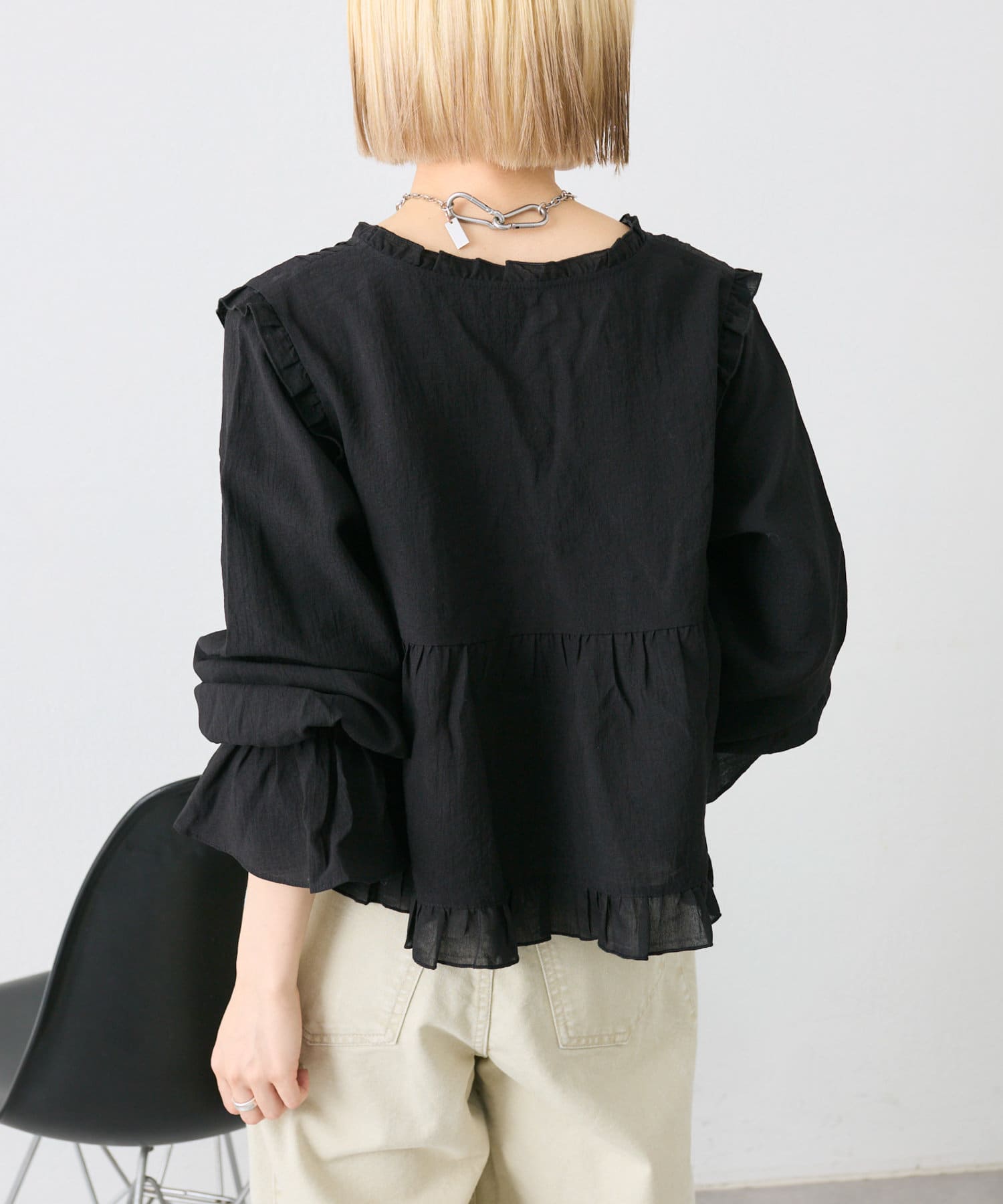 ・さりげないレース×柔らかな生地のブラウスで甘すぎない印象に