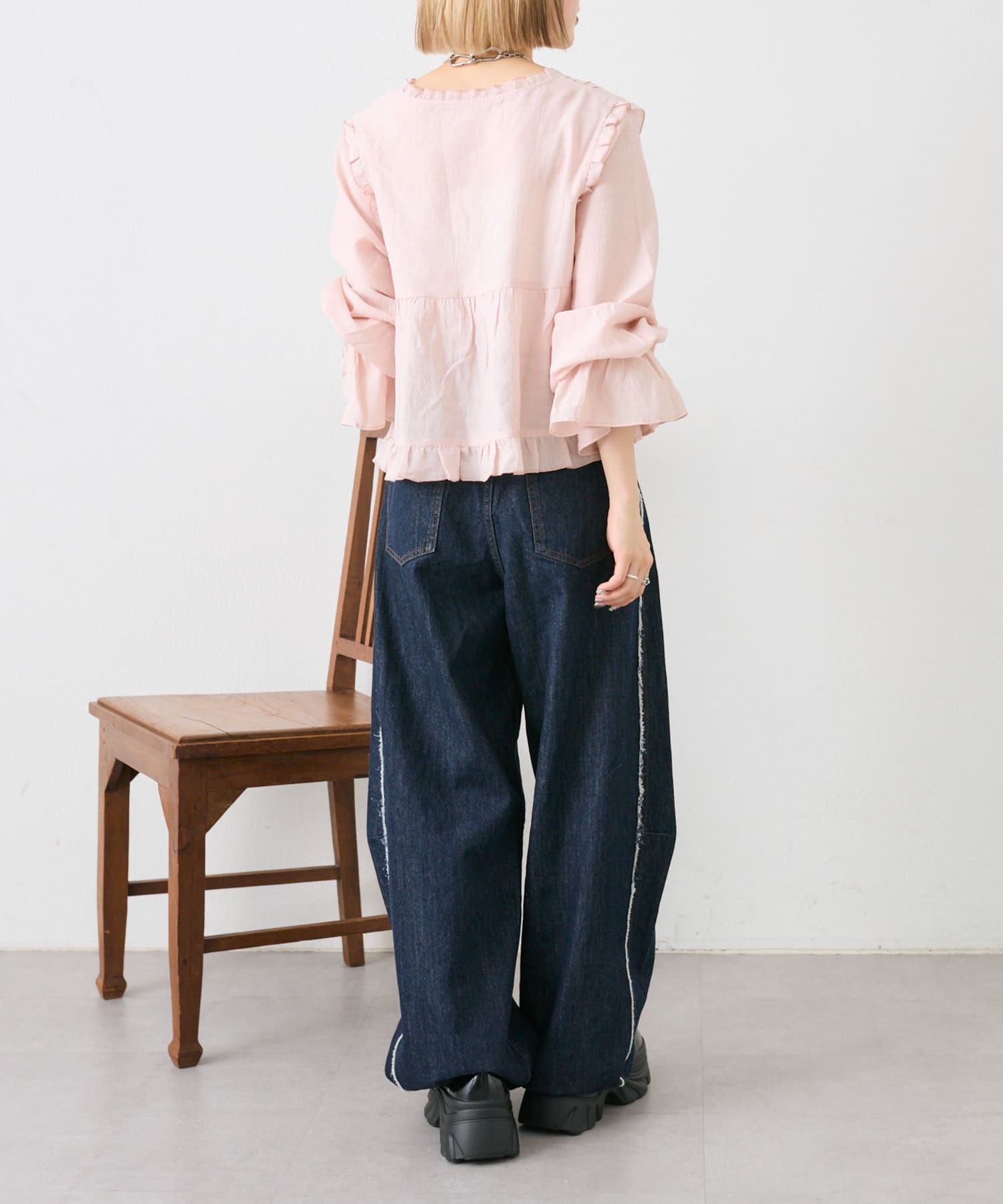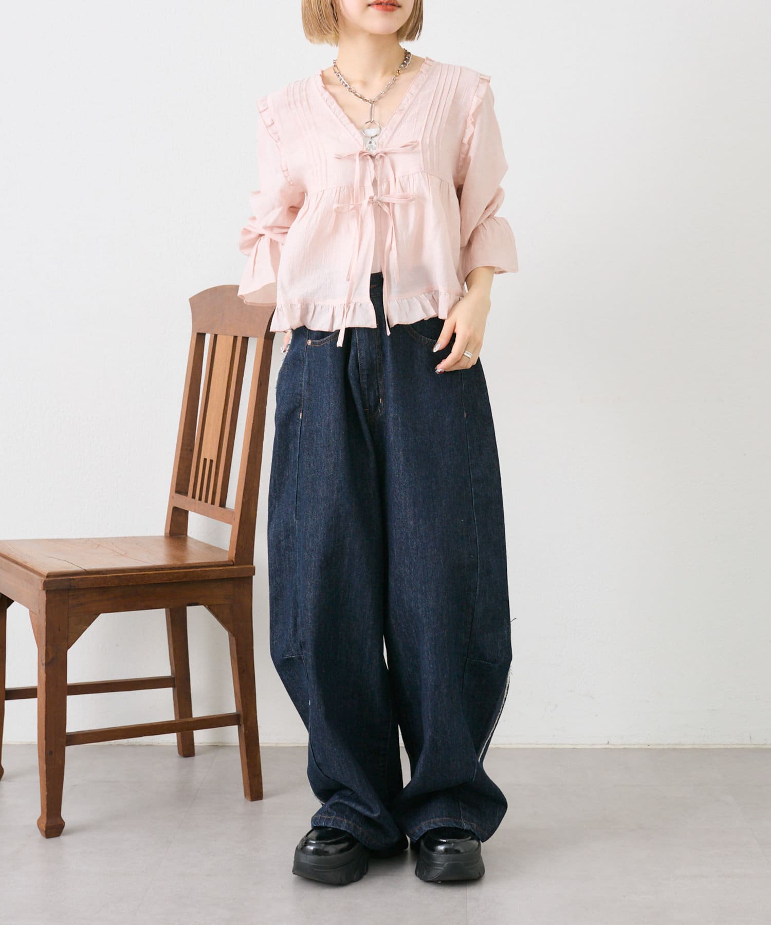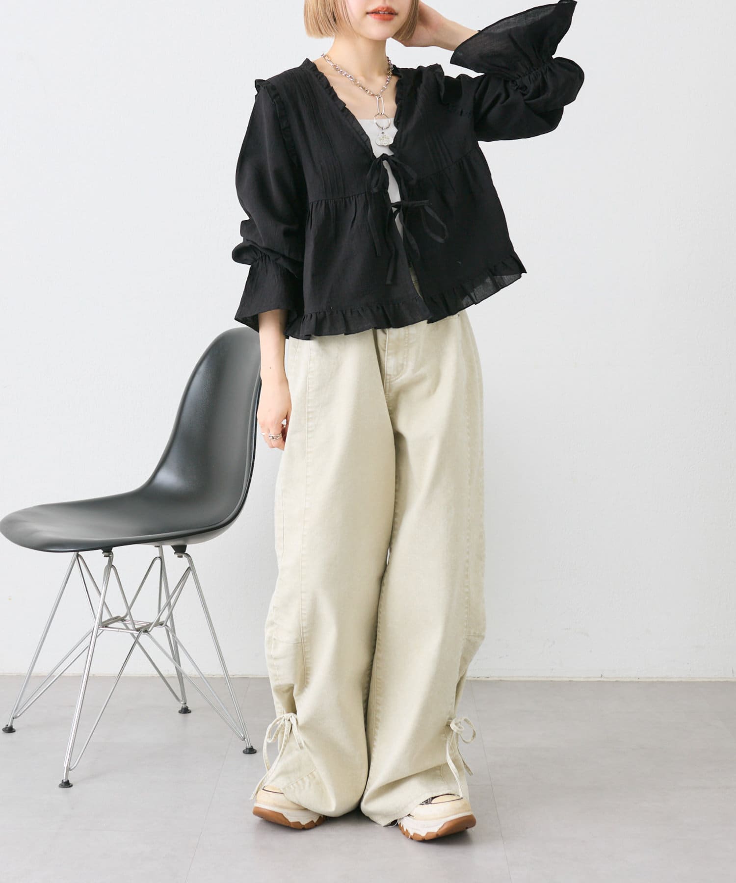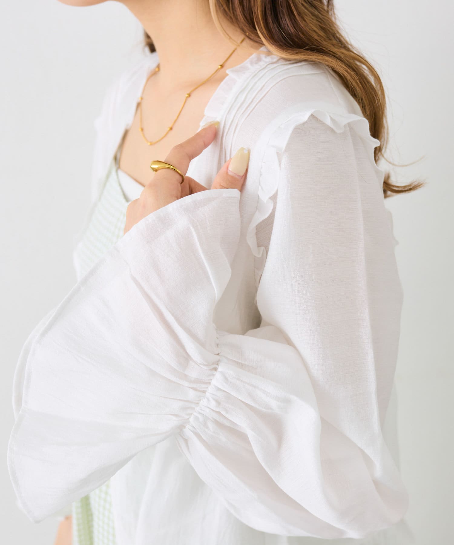 ・袖にゴムが入っているので腕をまくって抜け感をプラスしても可愛いです◎