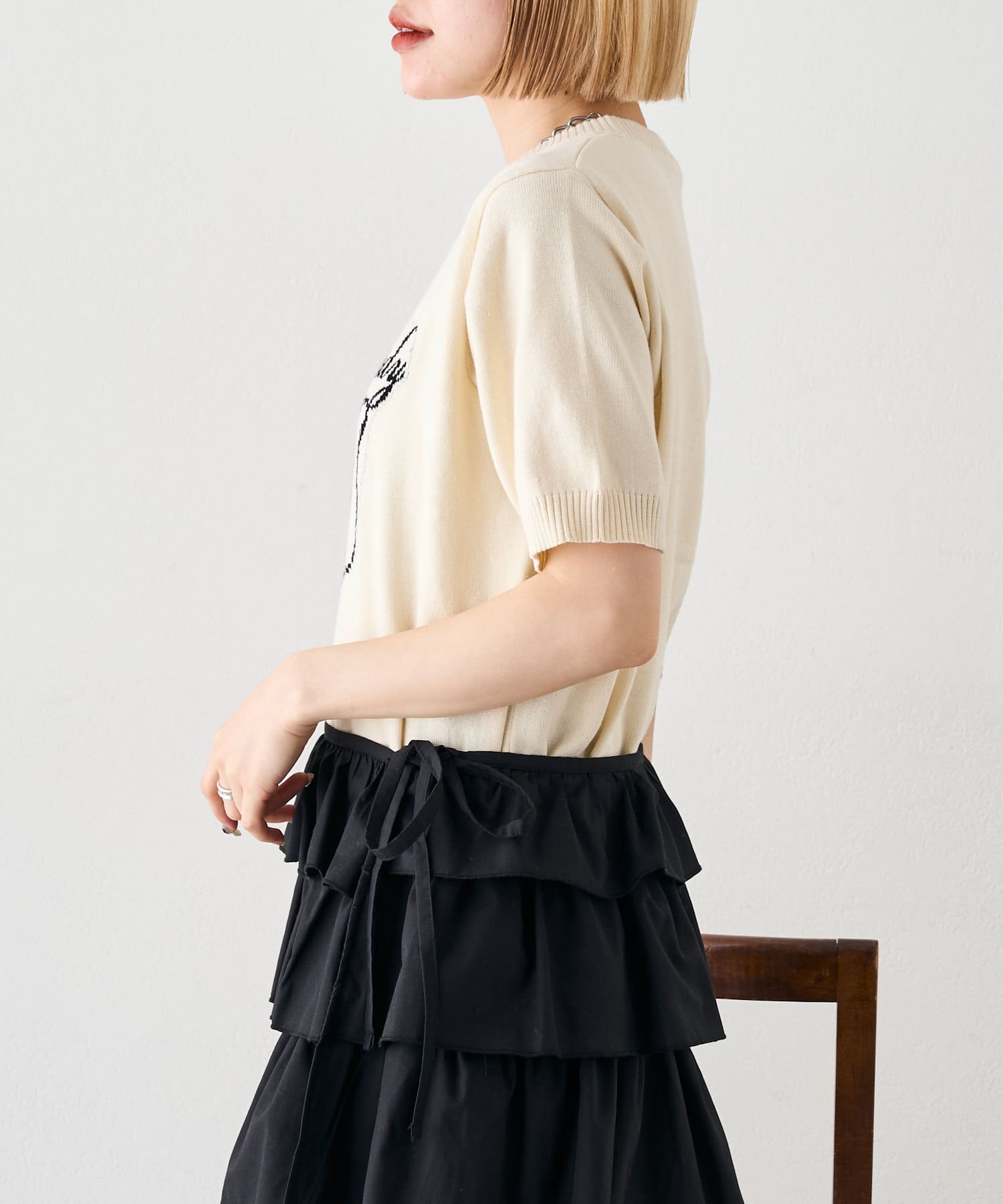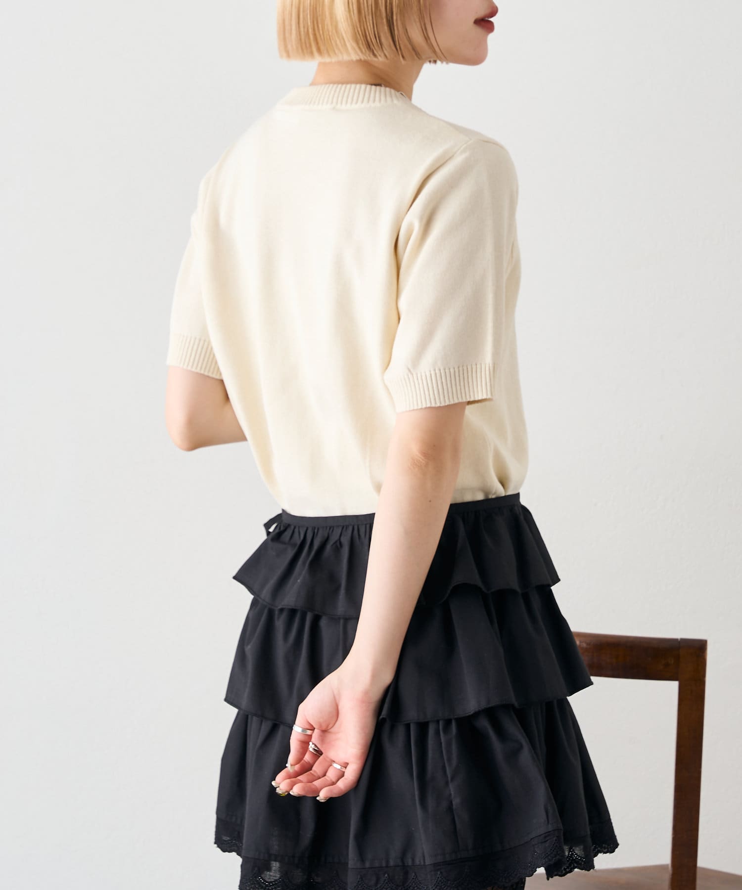 ・裾もリブ仕様でボトムスにINしたスタイルでも、裾を出した着こなしもどちらも可愛く決まります