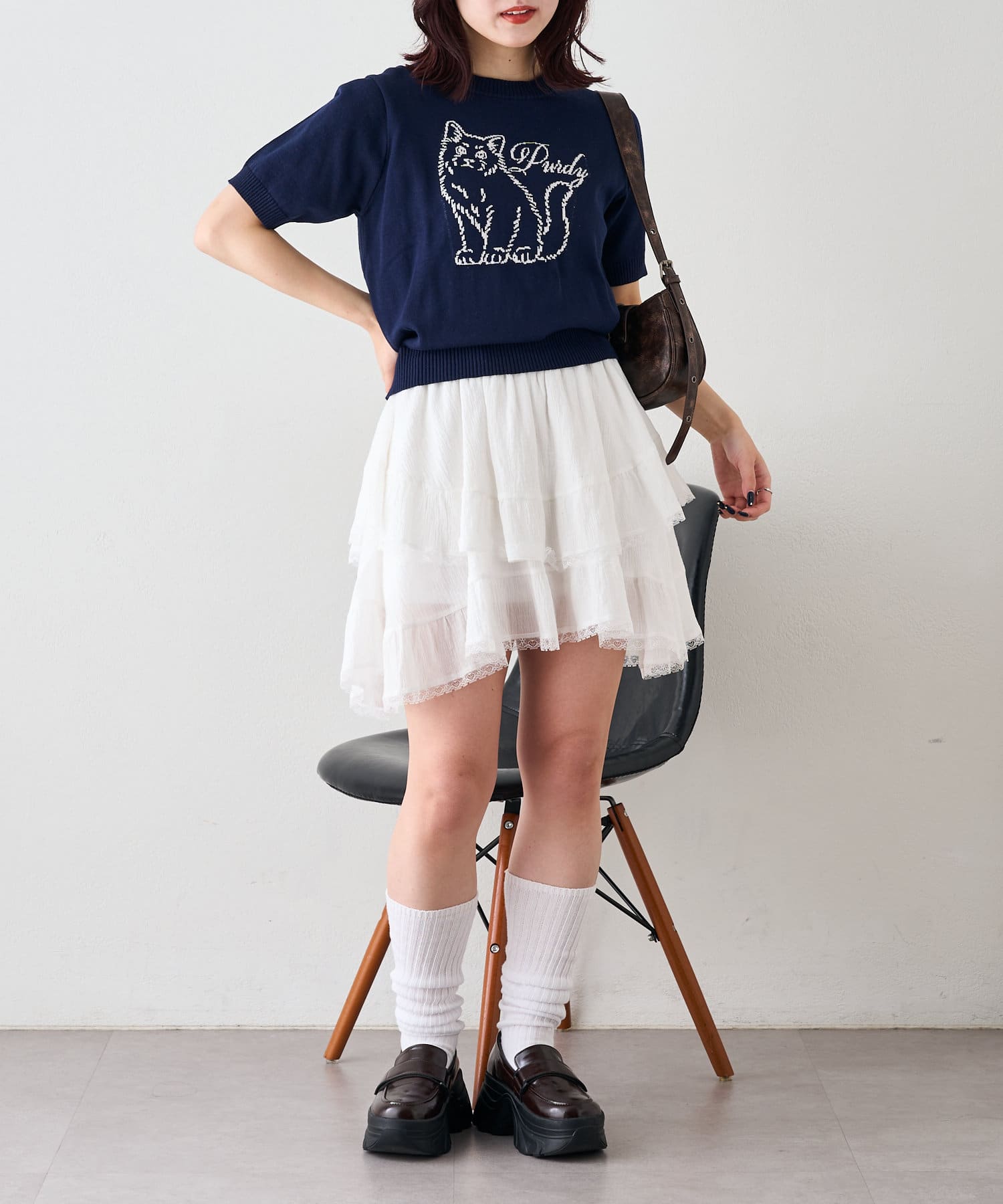 ・キャミワンピの下に合わせると、さりげないネコちゃん見せも可愛いです!