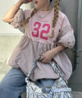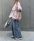 ・英字とロゴプリントで甘めカジュアルなスタイルになるのもポイントです