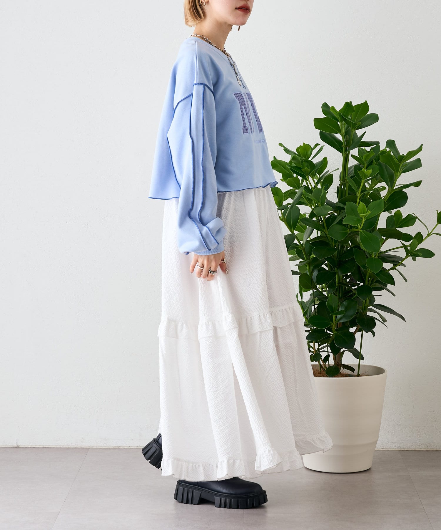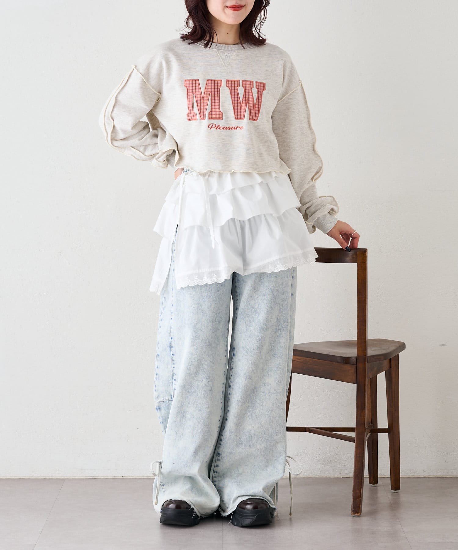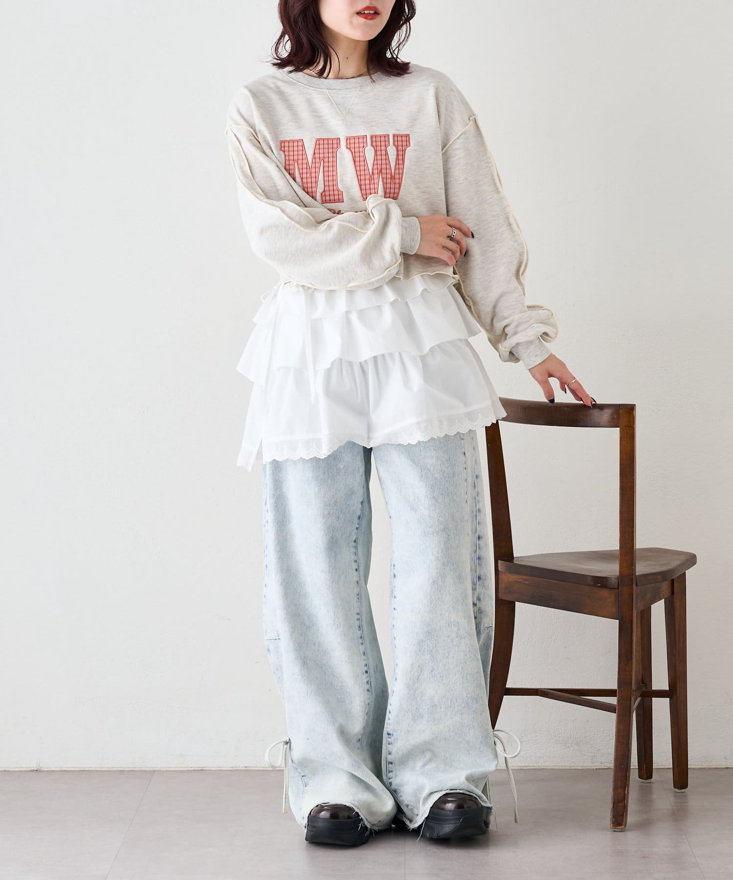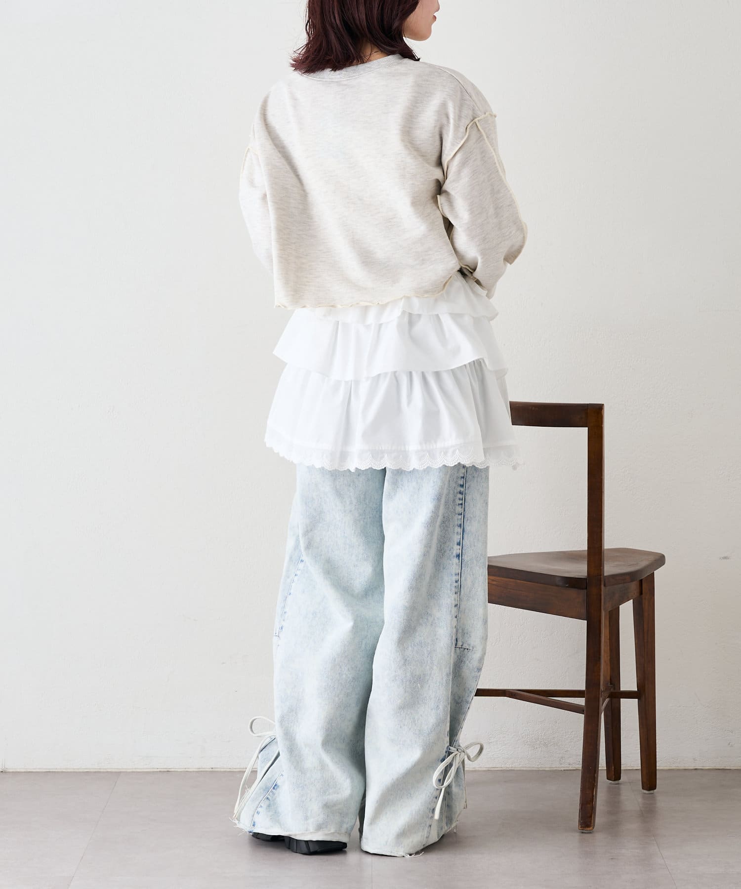 ・ボリュームの感のあるスカートやデニムパンツと合わせは相性抜群◎ラップスカートなどのレイヤードを着用してもお洒落で可愛いです!