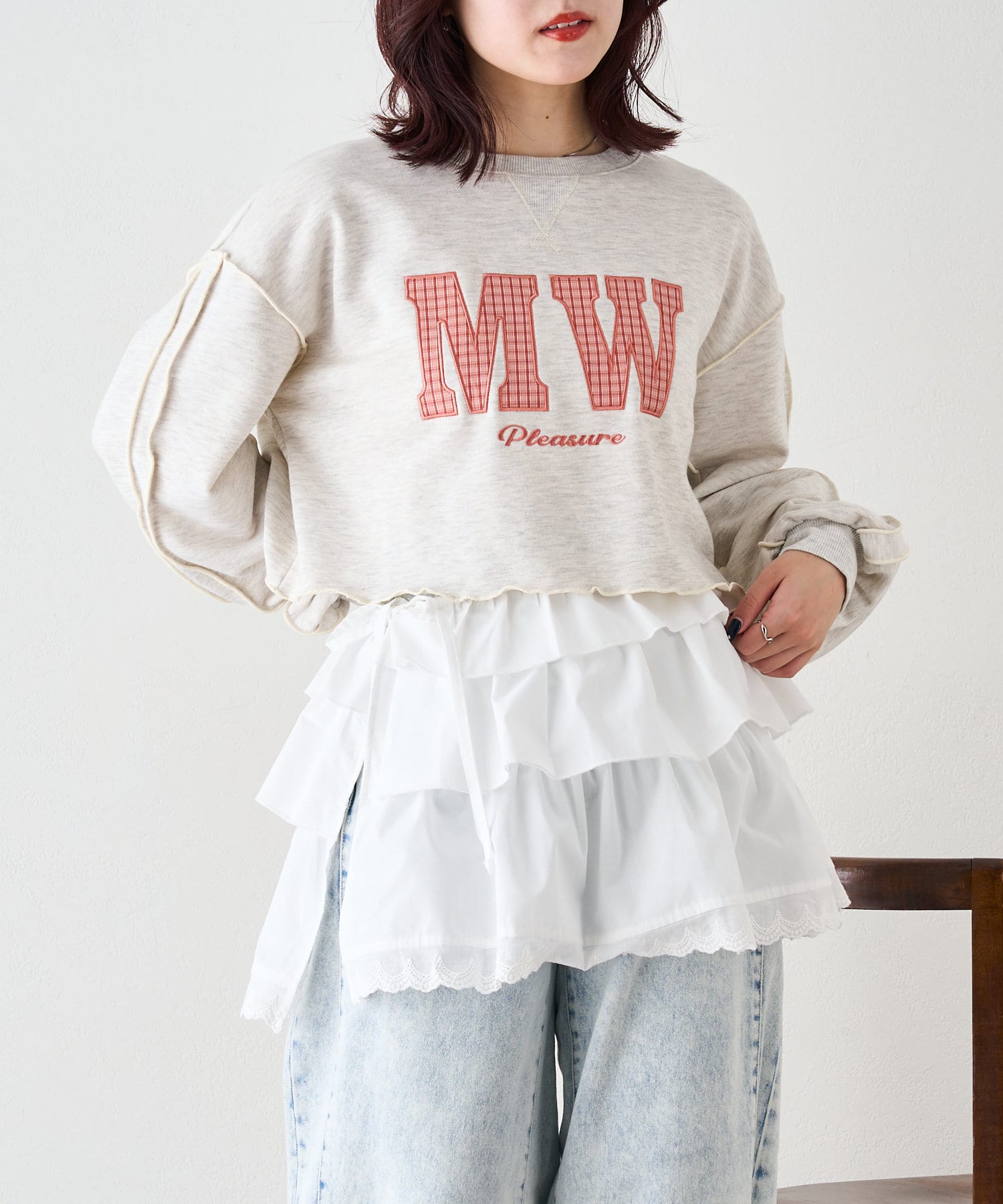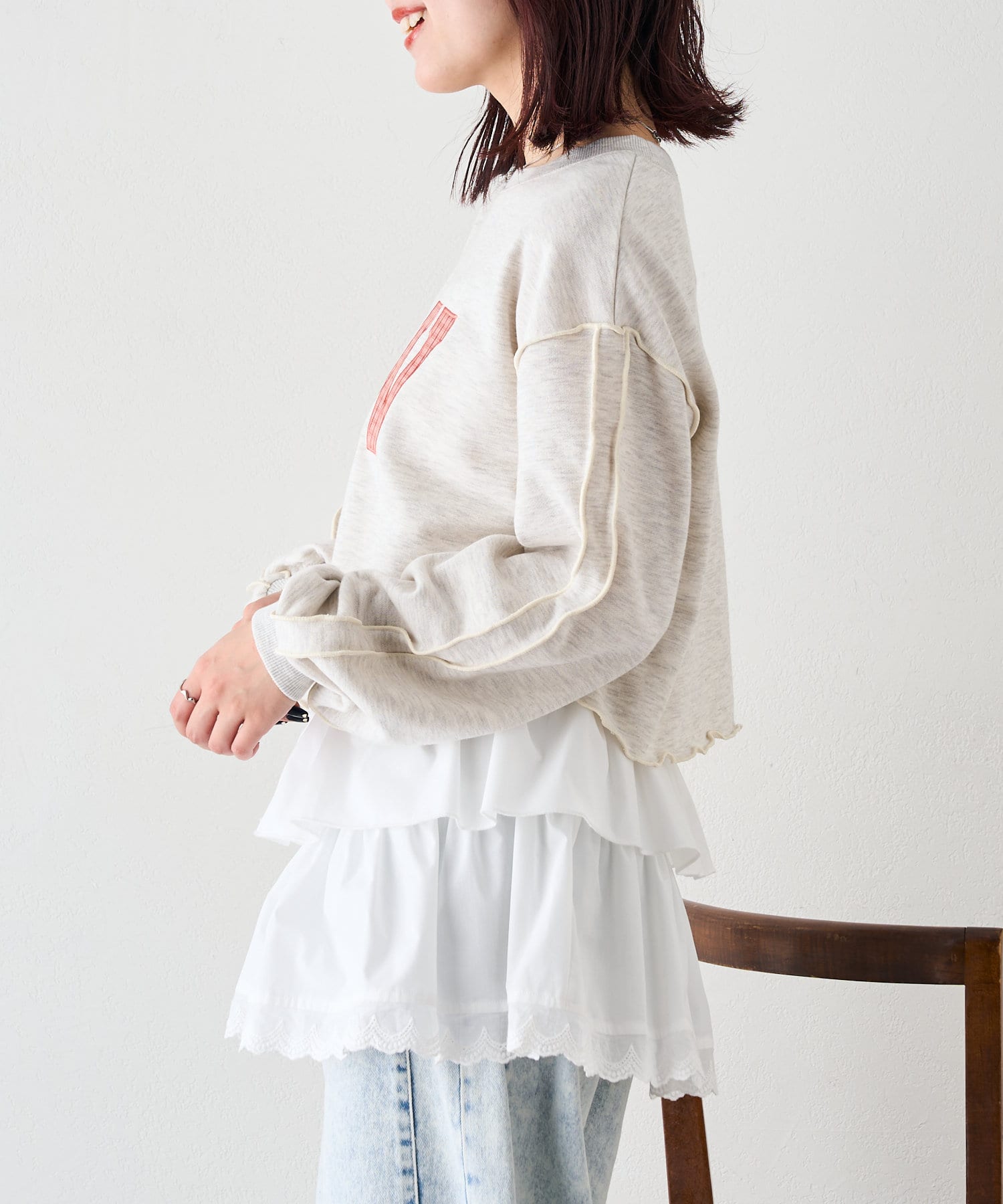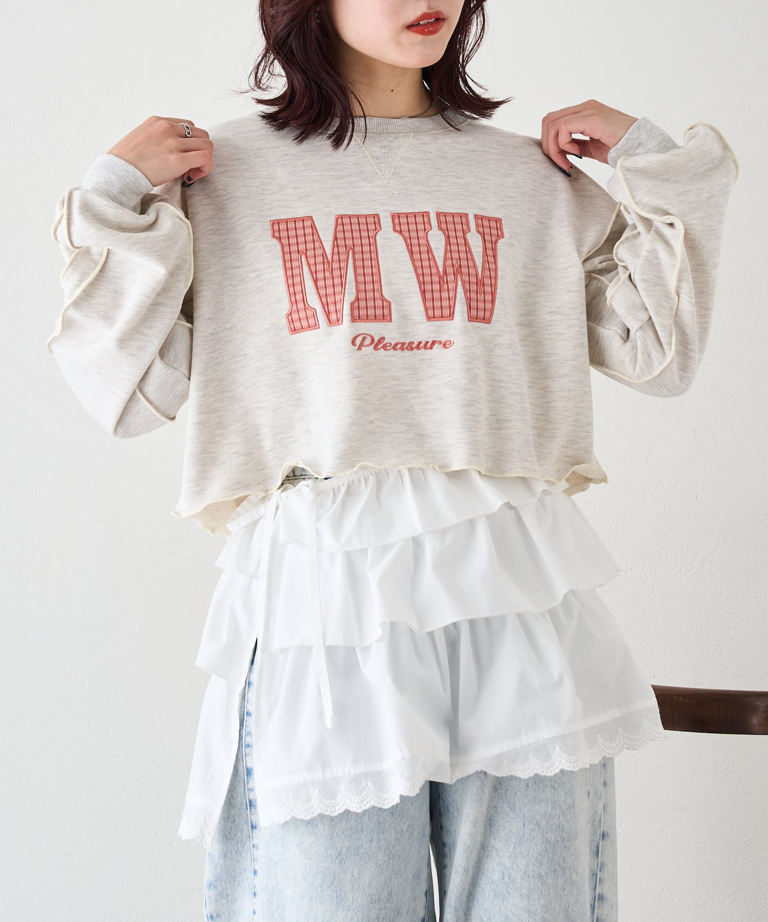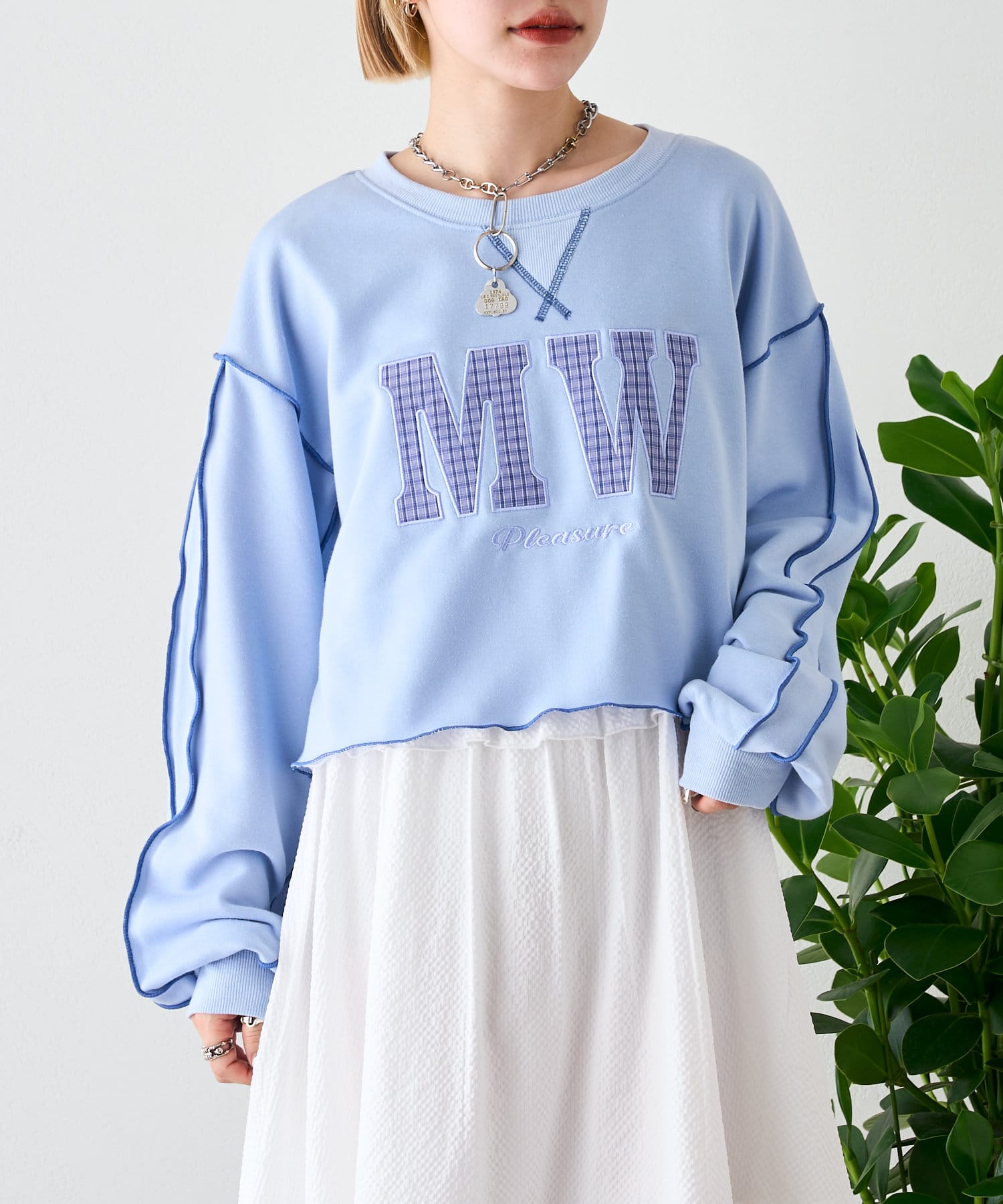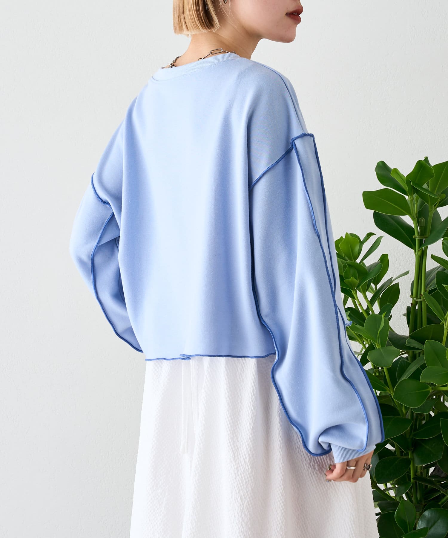 さりげない配色ステッチがオシャレ!トレンドライクなショート丈ロゴスウェット