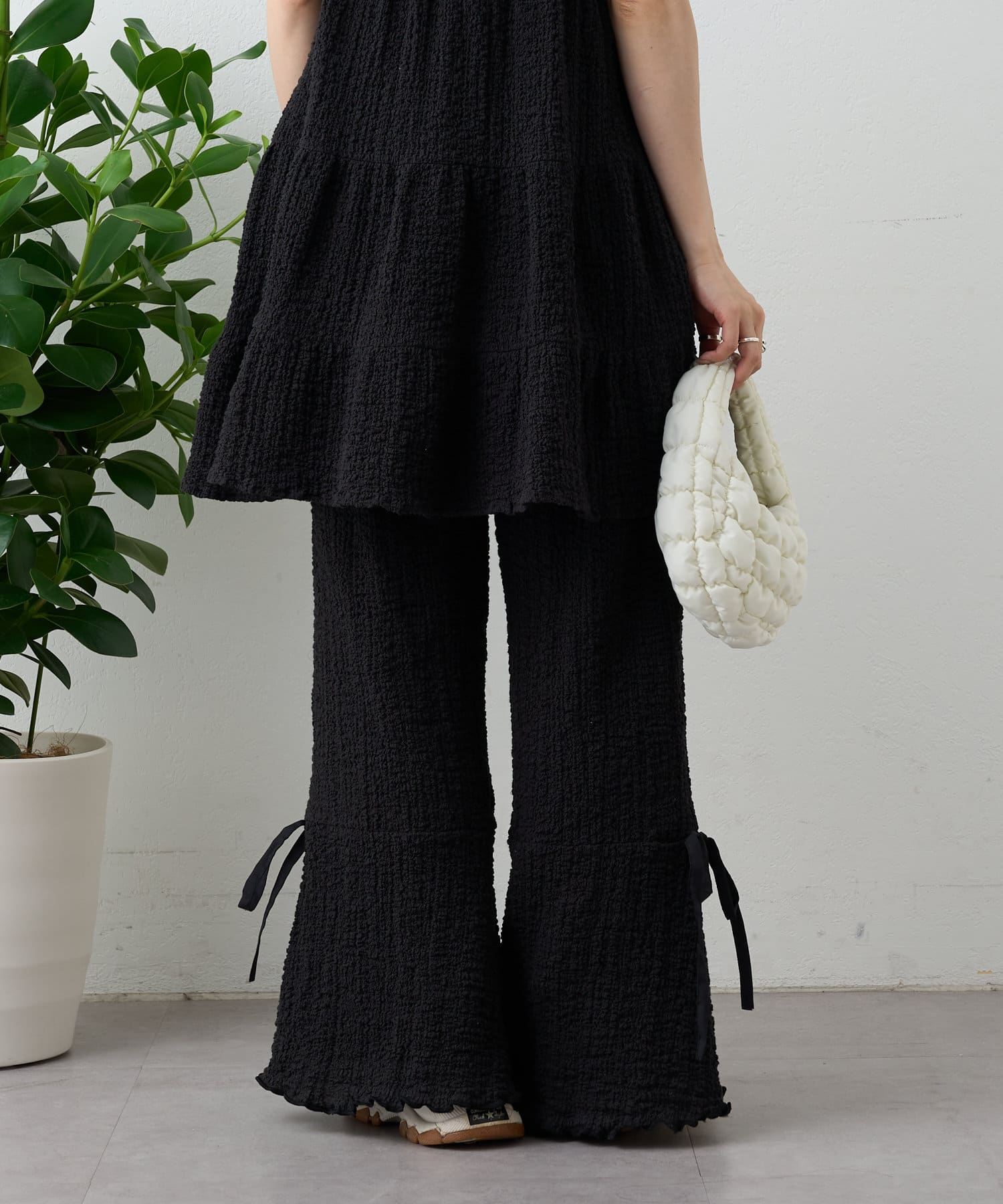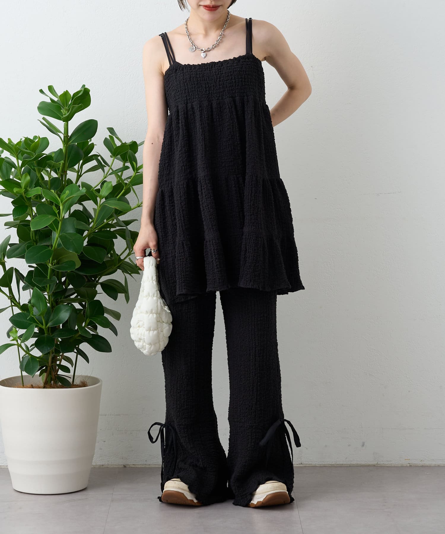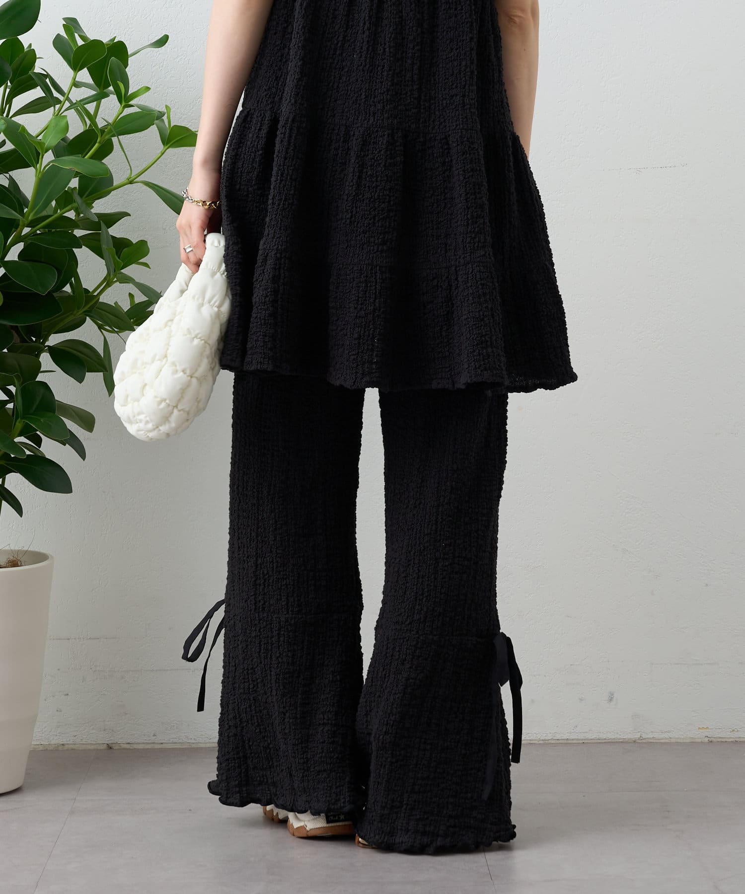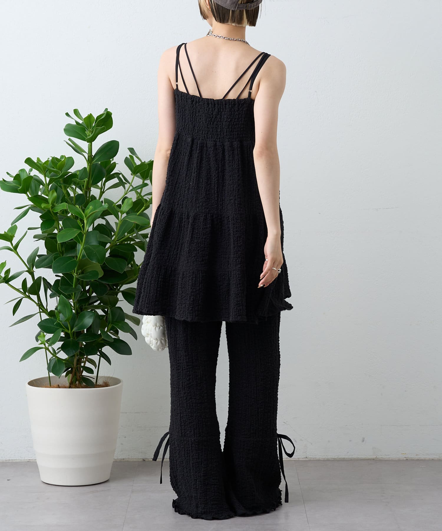【パンツ2サイズ展開】しぼキャミフレアパンツSET
