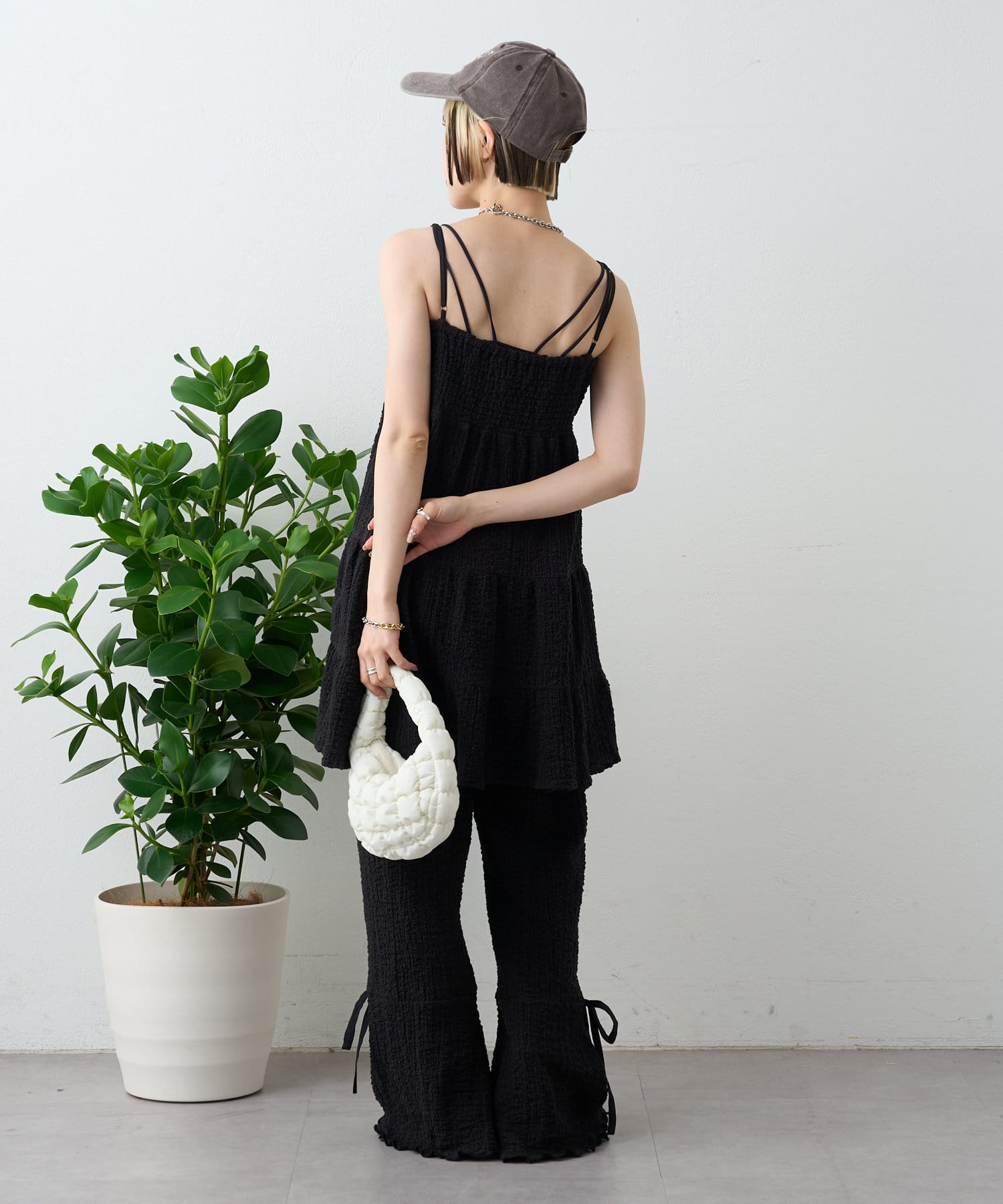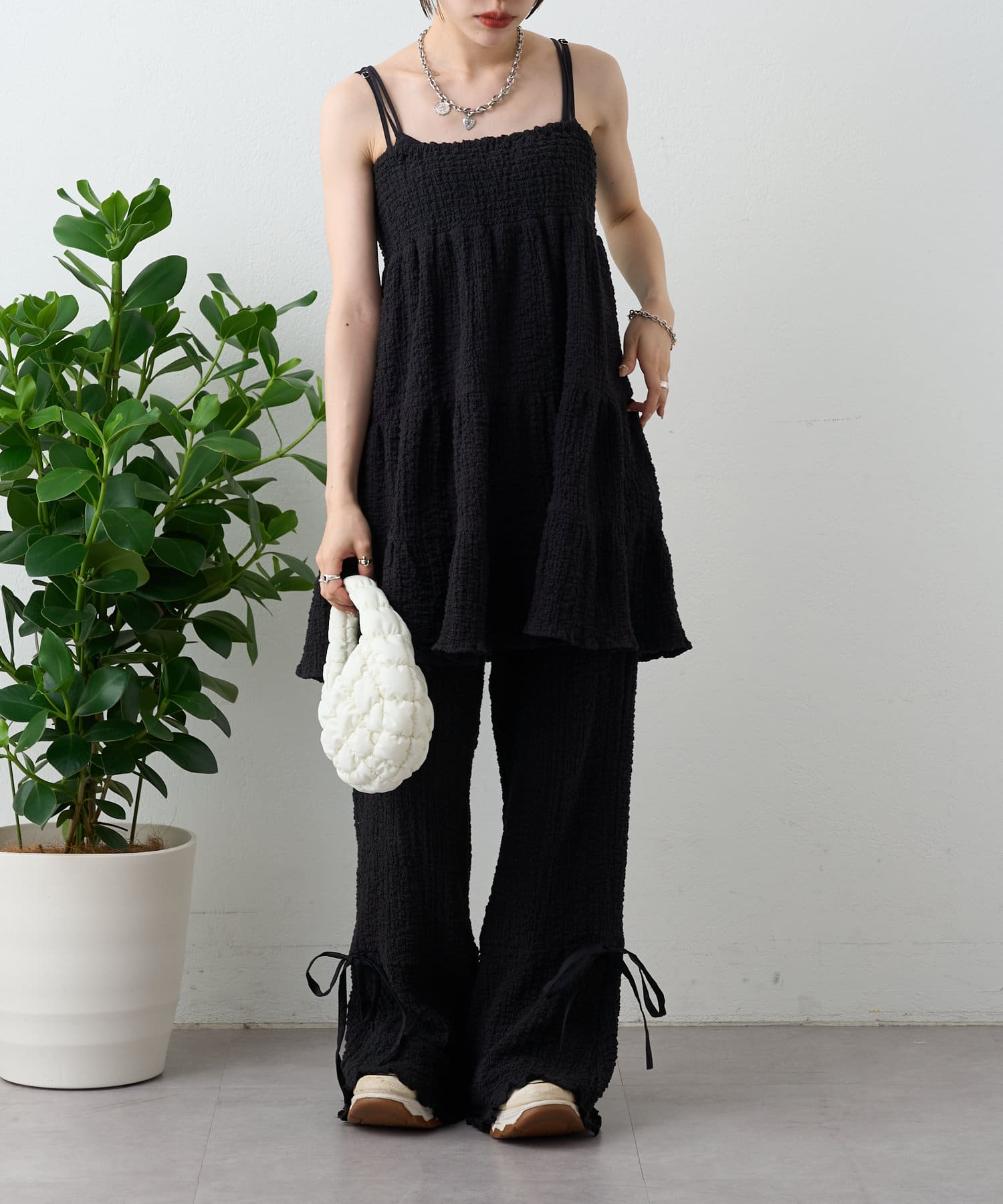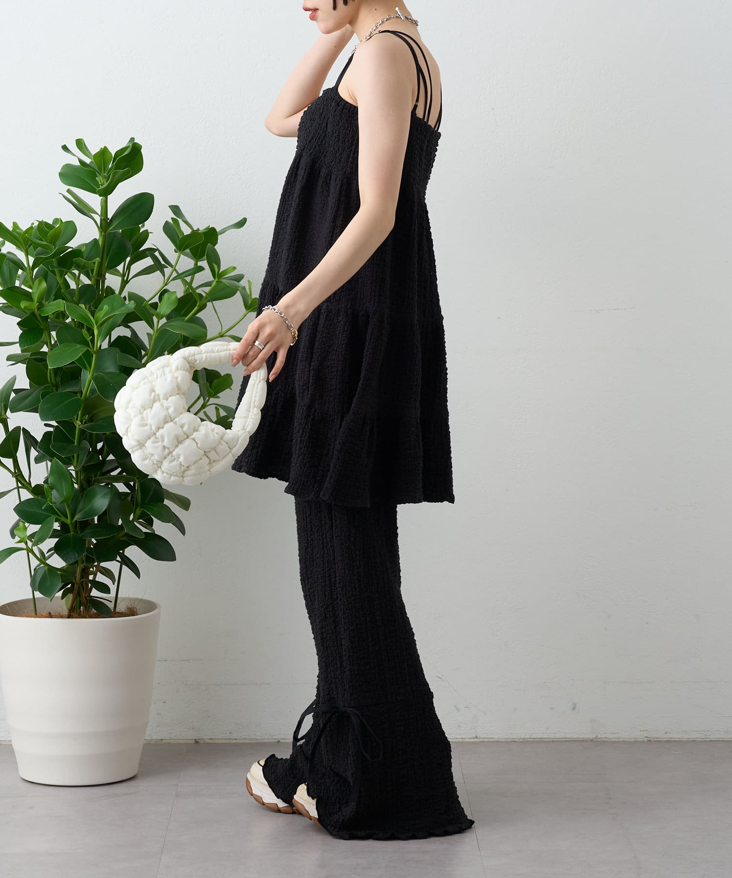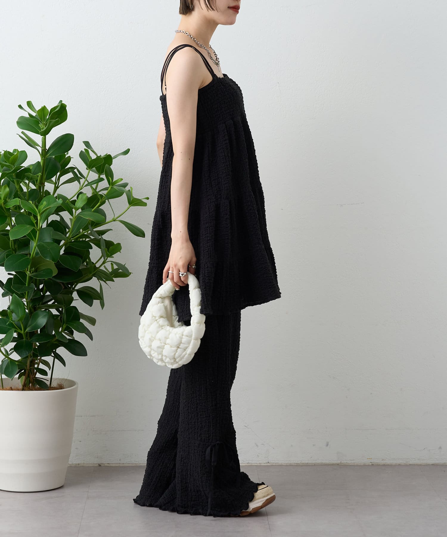 【パンツ2サイズ展開】しぼキャミフレアパンツSET