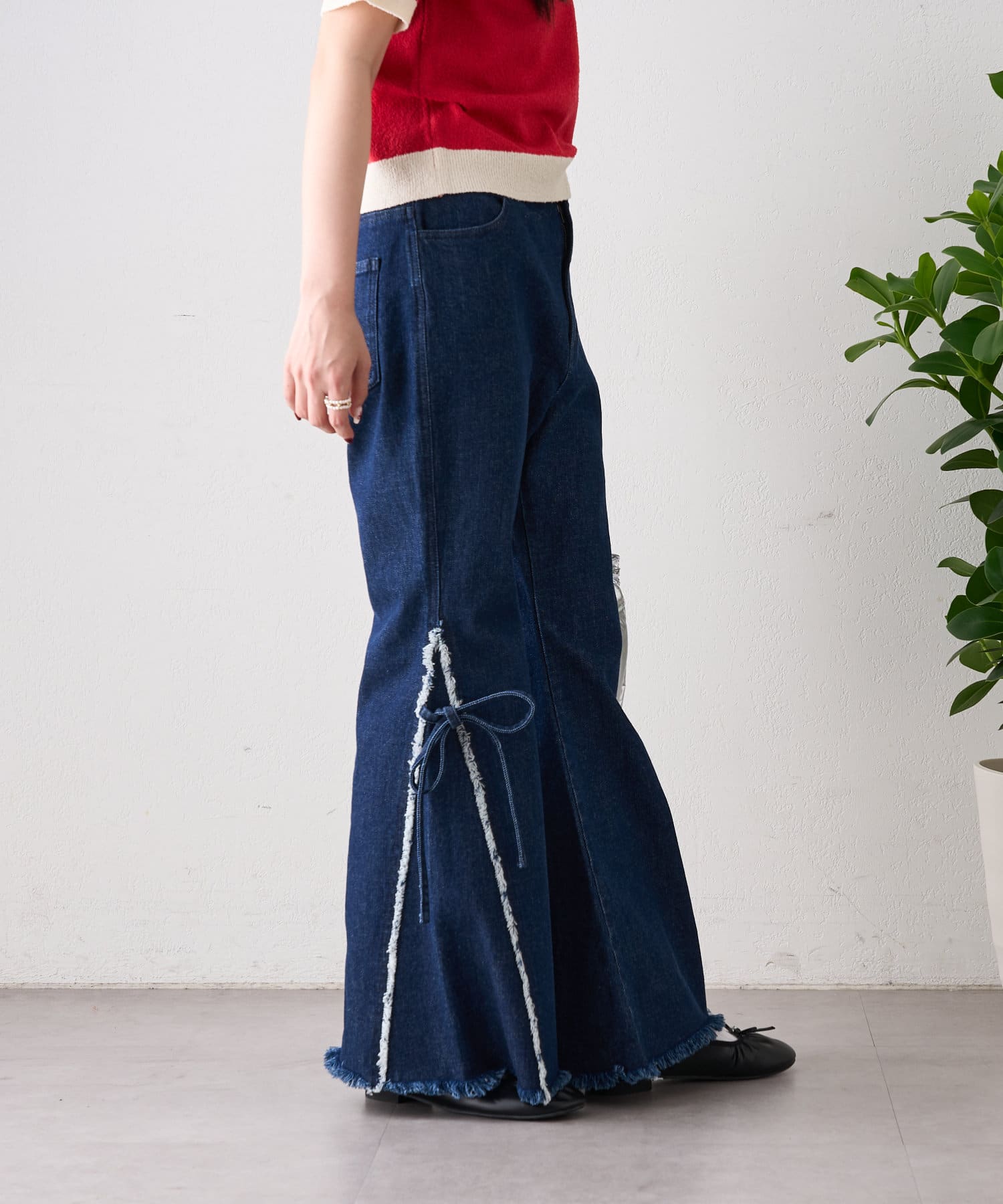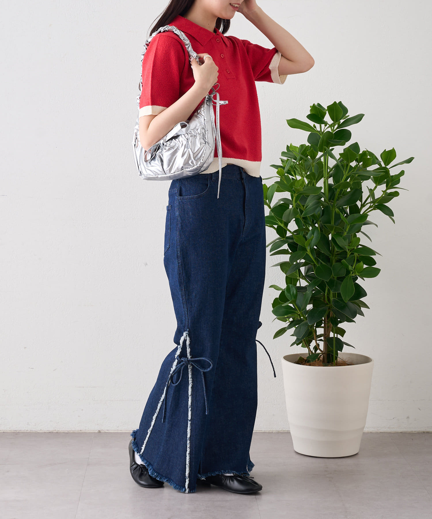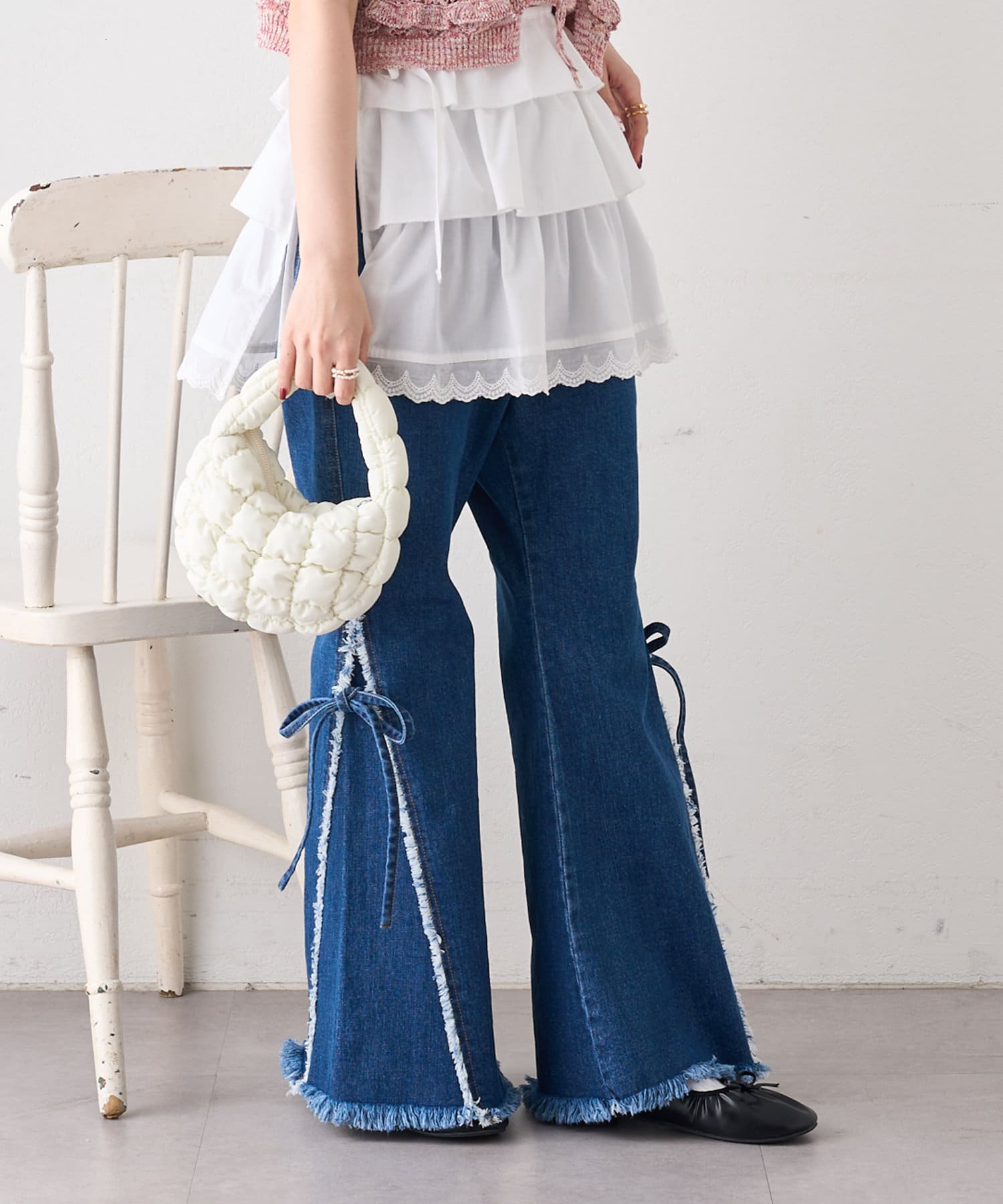 ・切り替え部分に施されたリボンがコーディネートのアクセントに♪