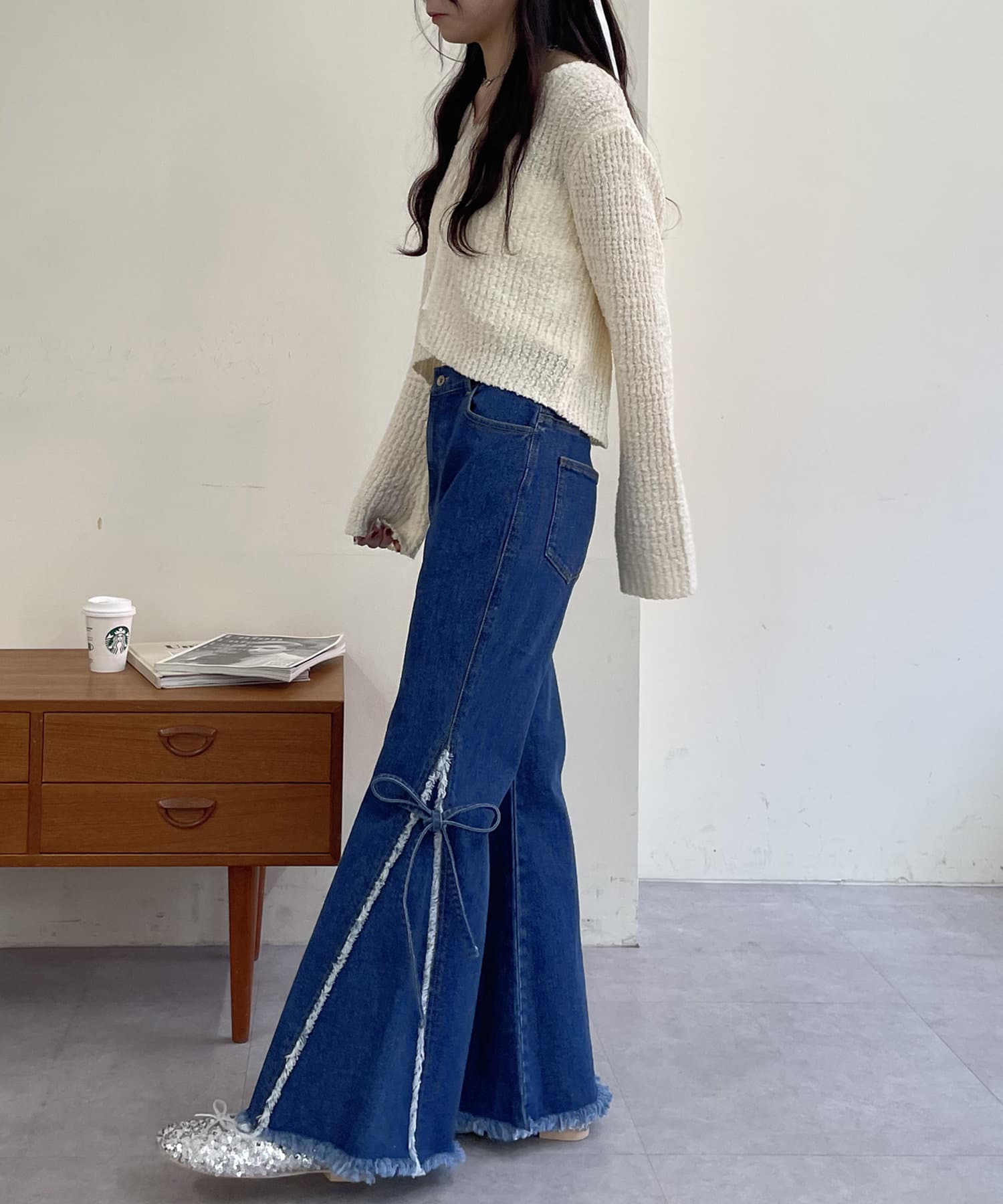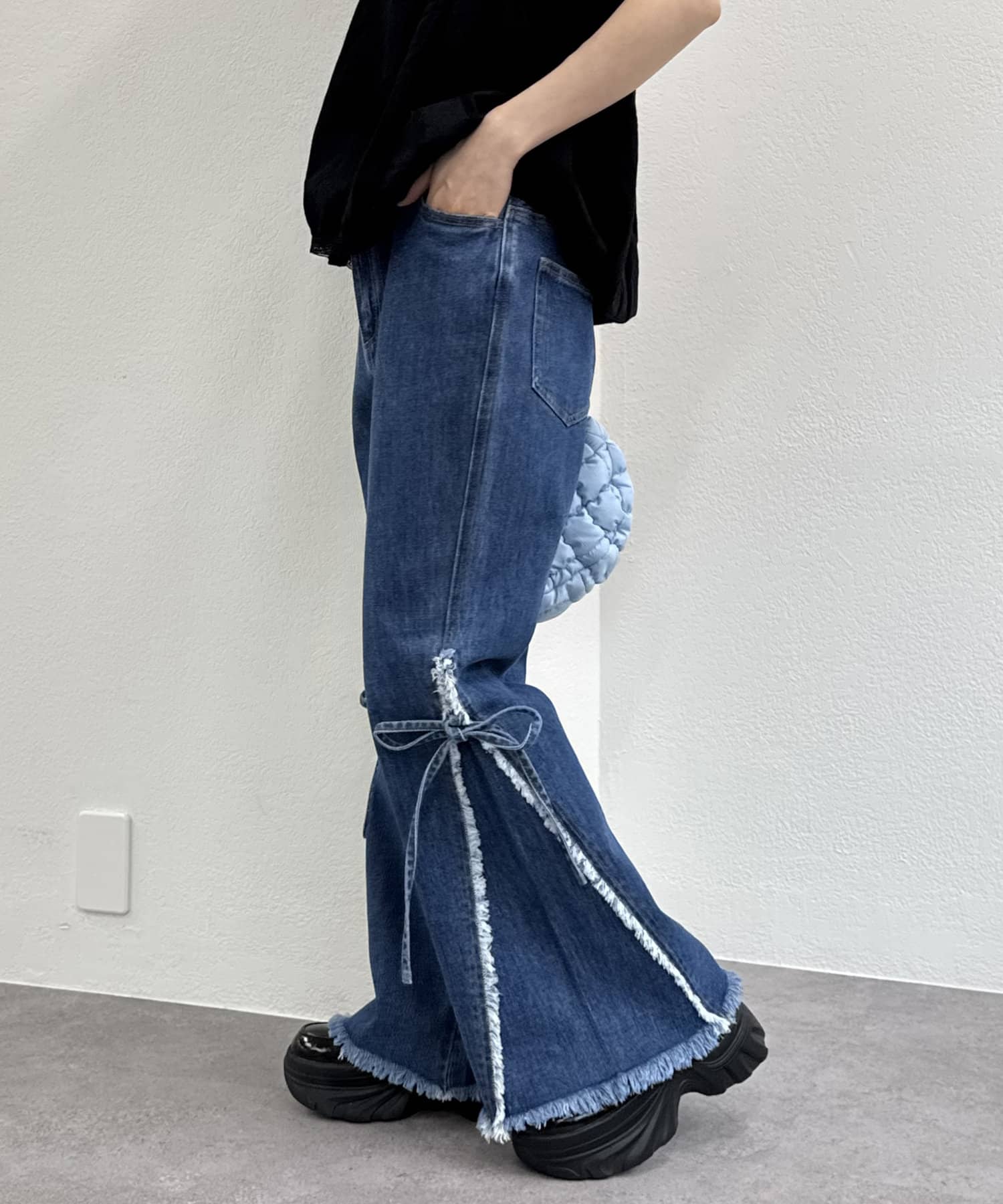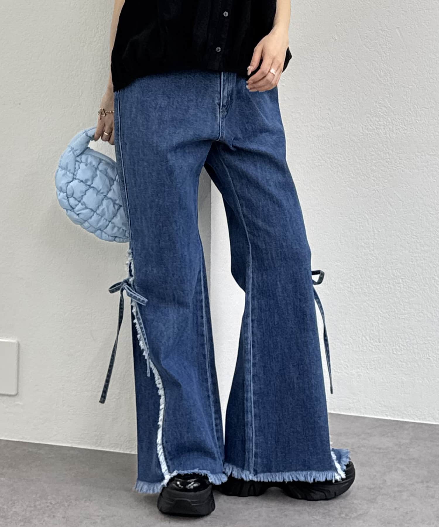 ・切り替え部分に施されたリボンがコーディネートのアクセントに♪