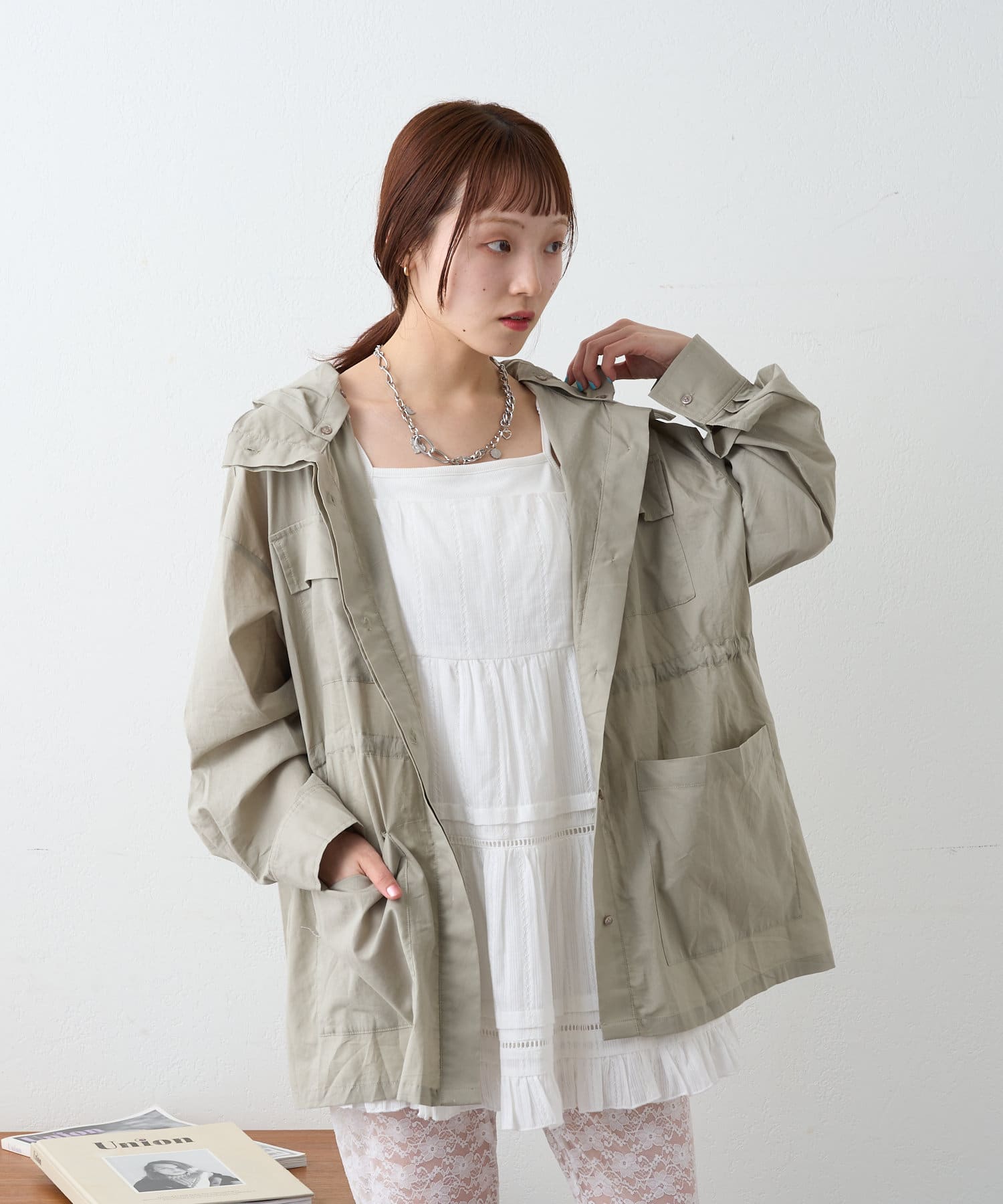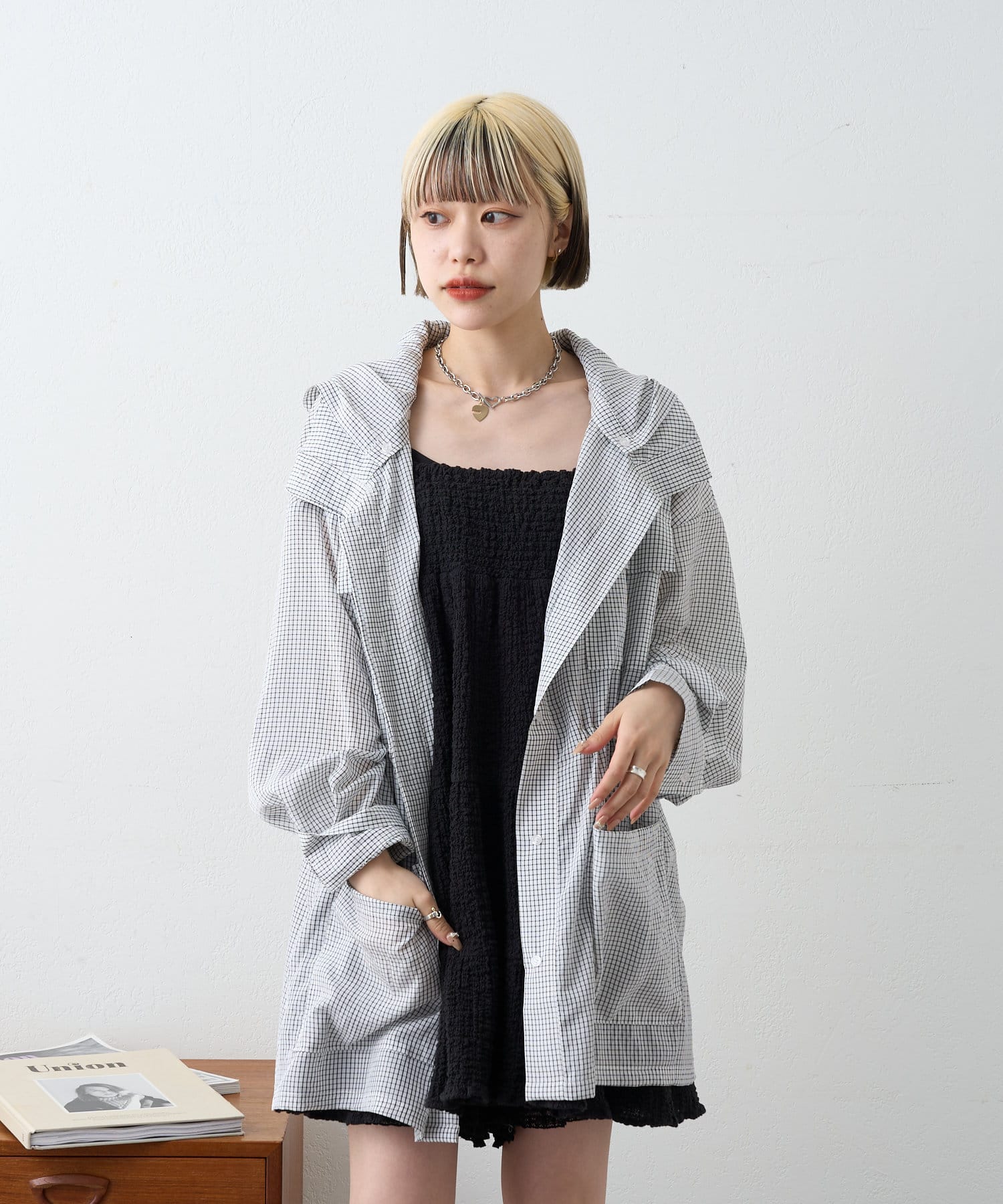 TOP > w closet > レディース > トップス > シャツ/ブラウス(ボタン) > シアーフード付きカバーオール
