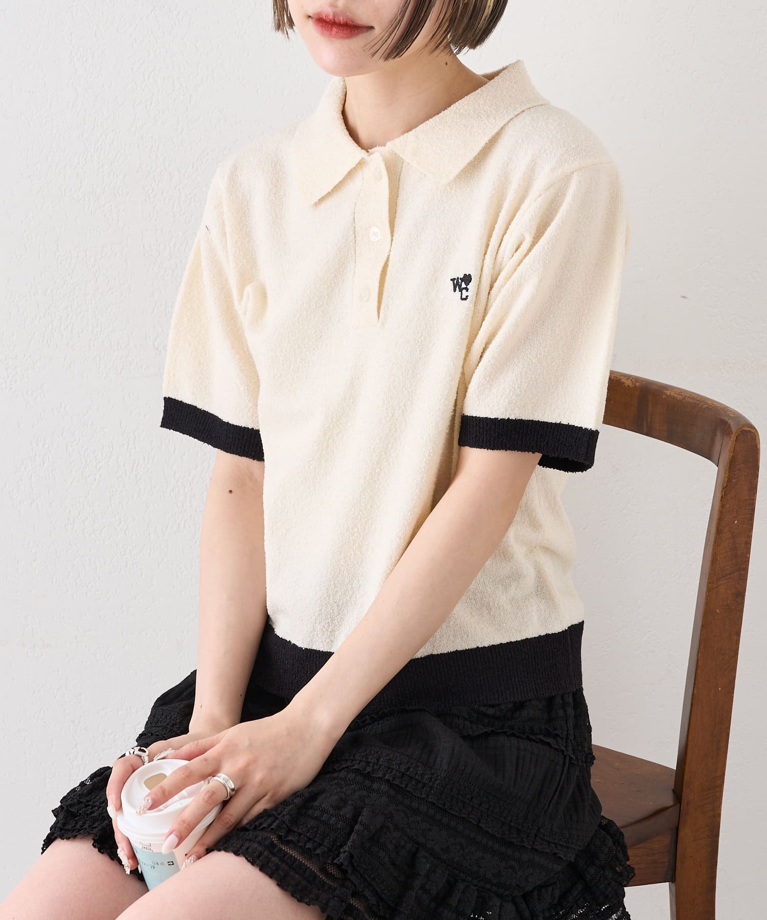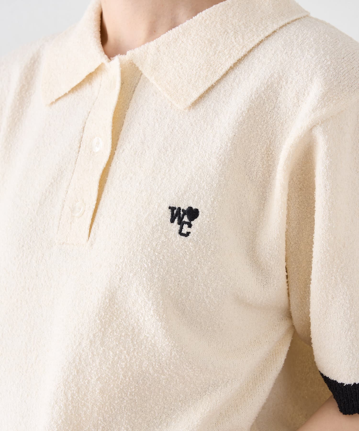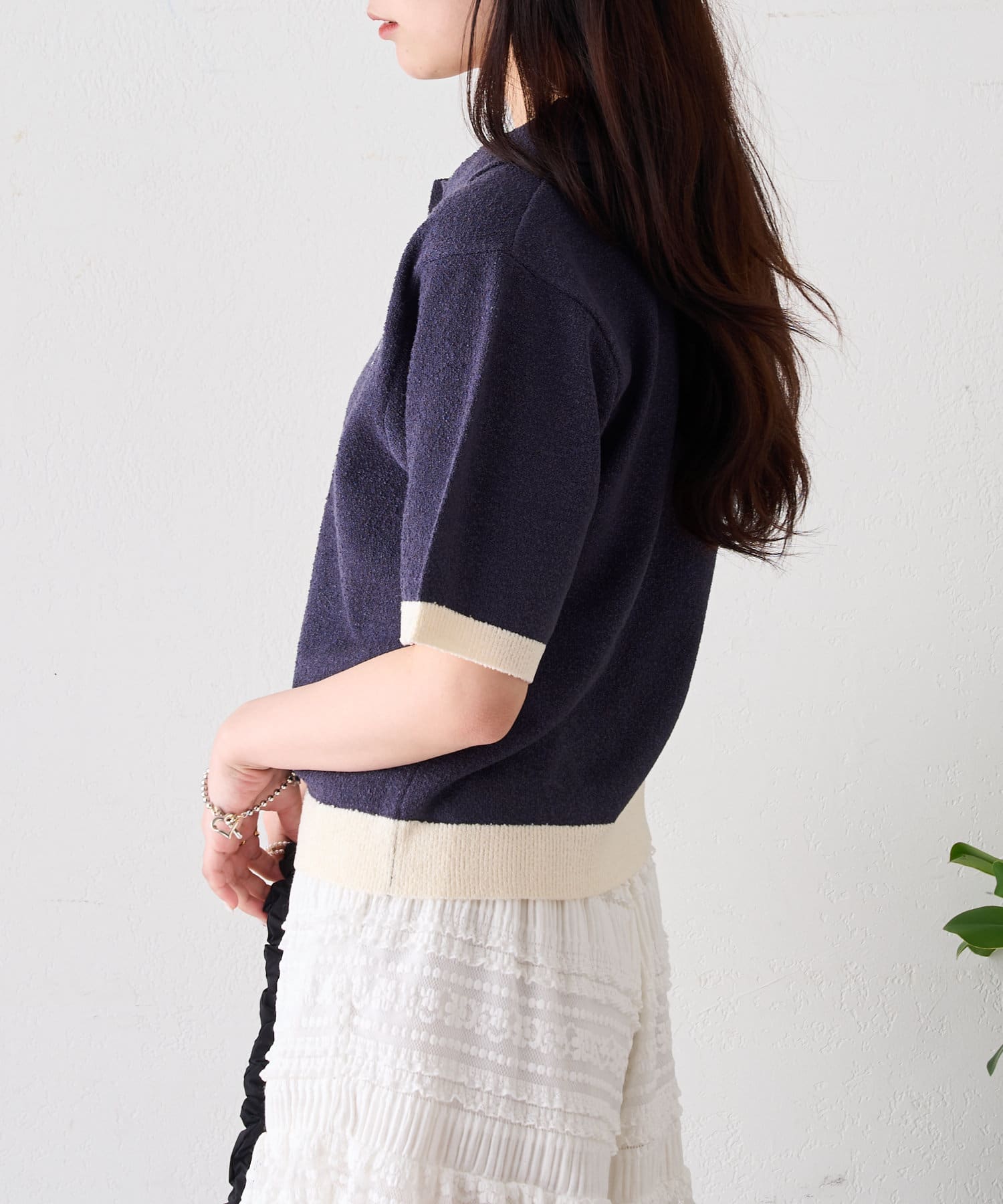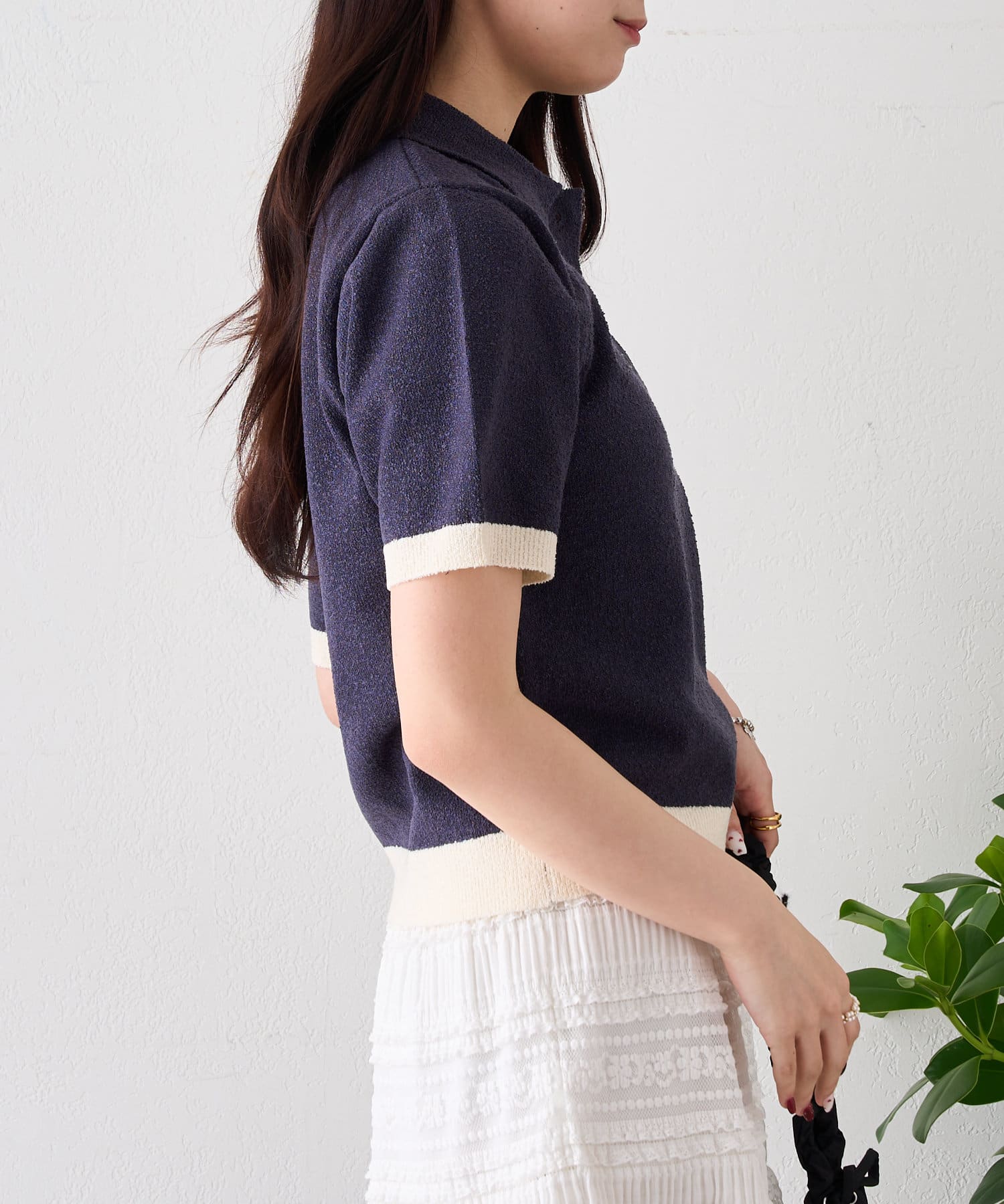 半袖配色ポロニット