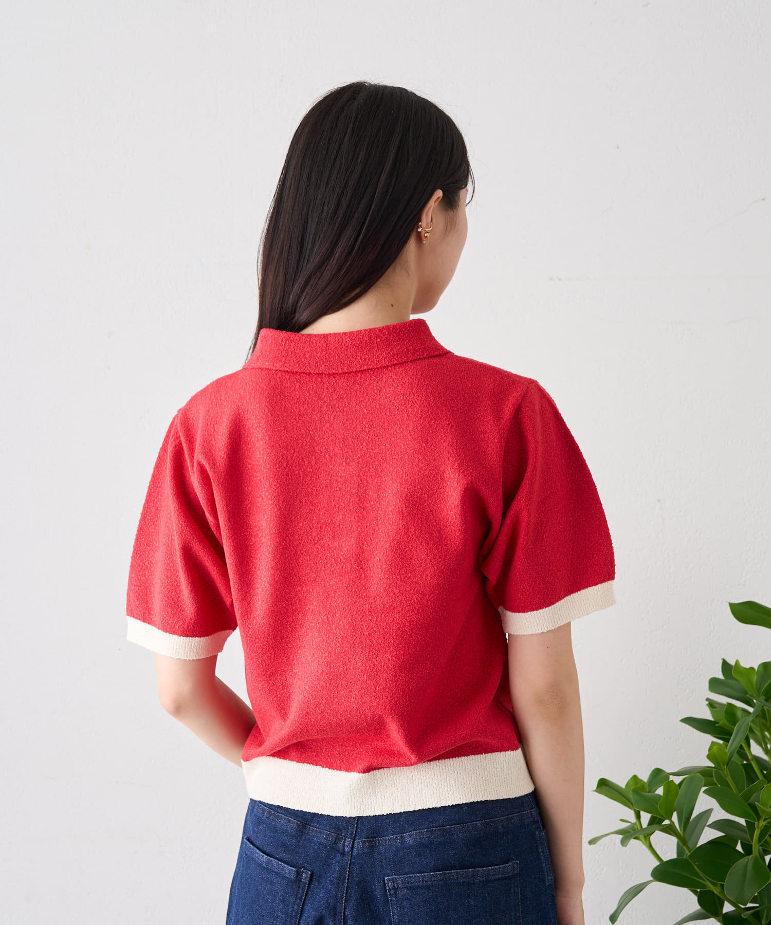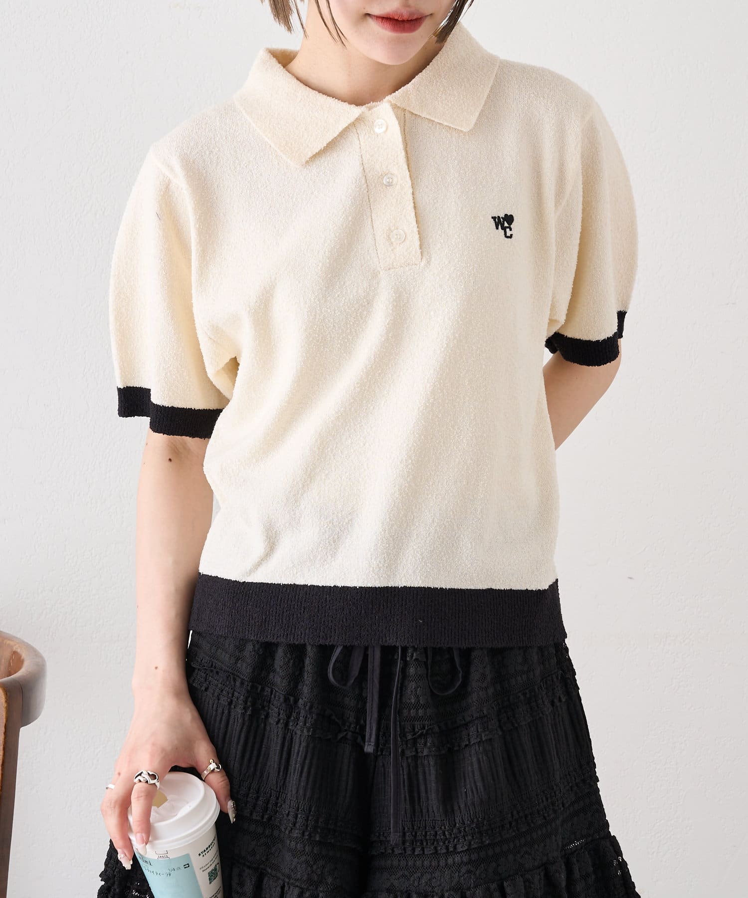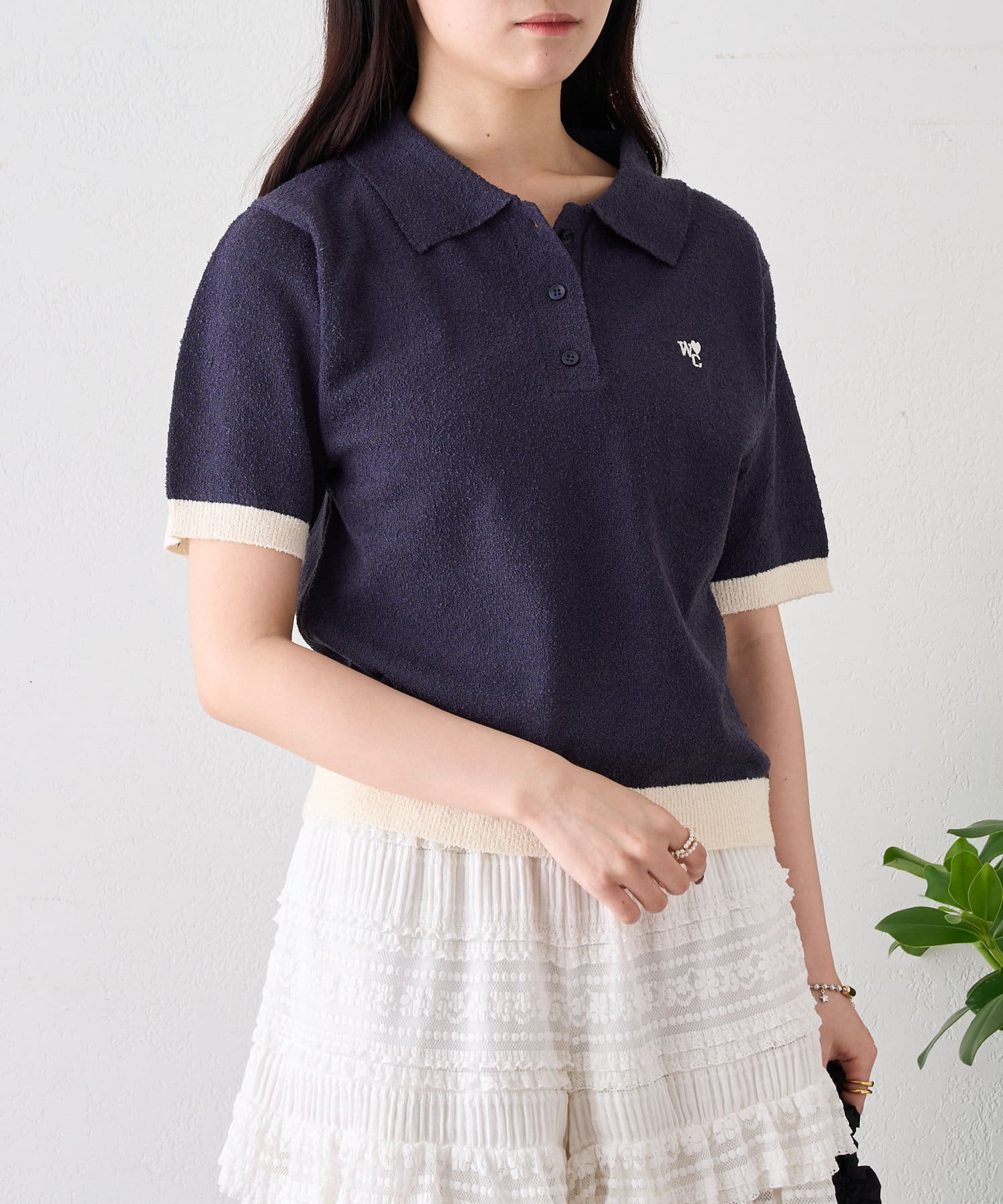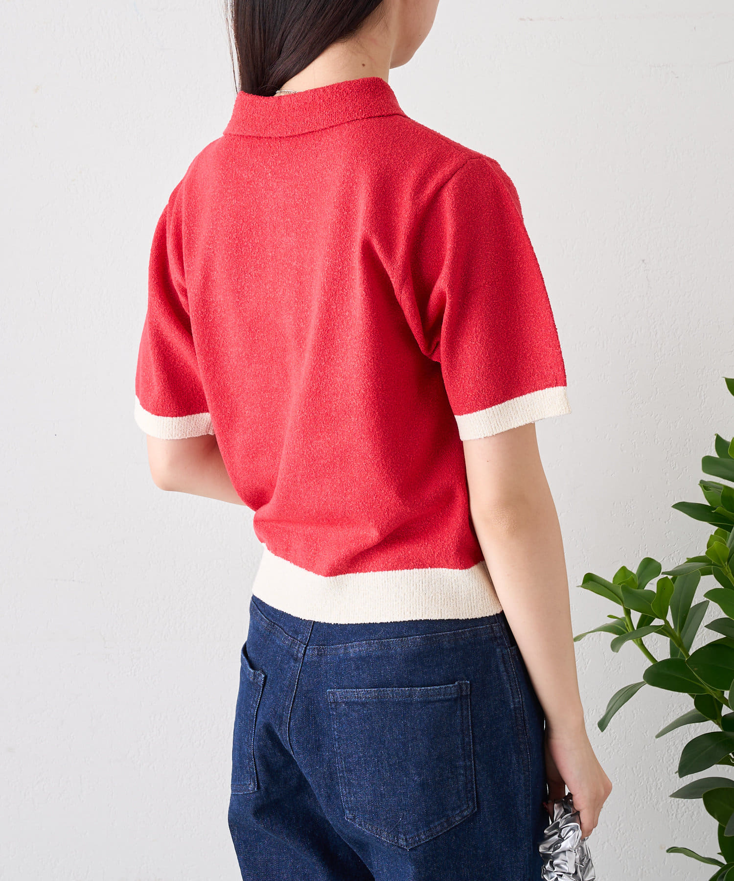 半袖配色ポロニット