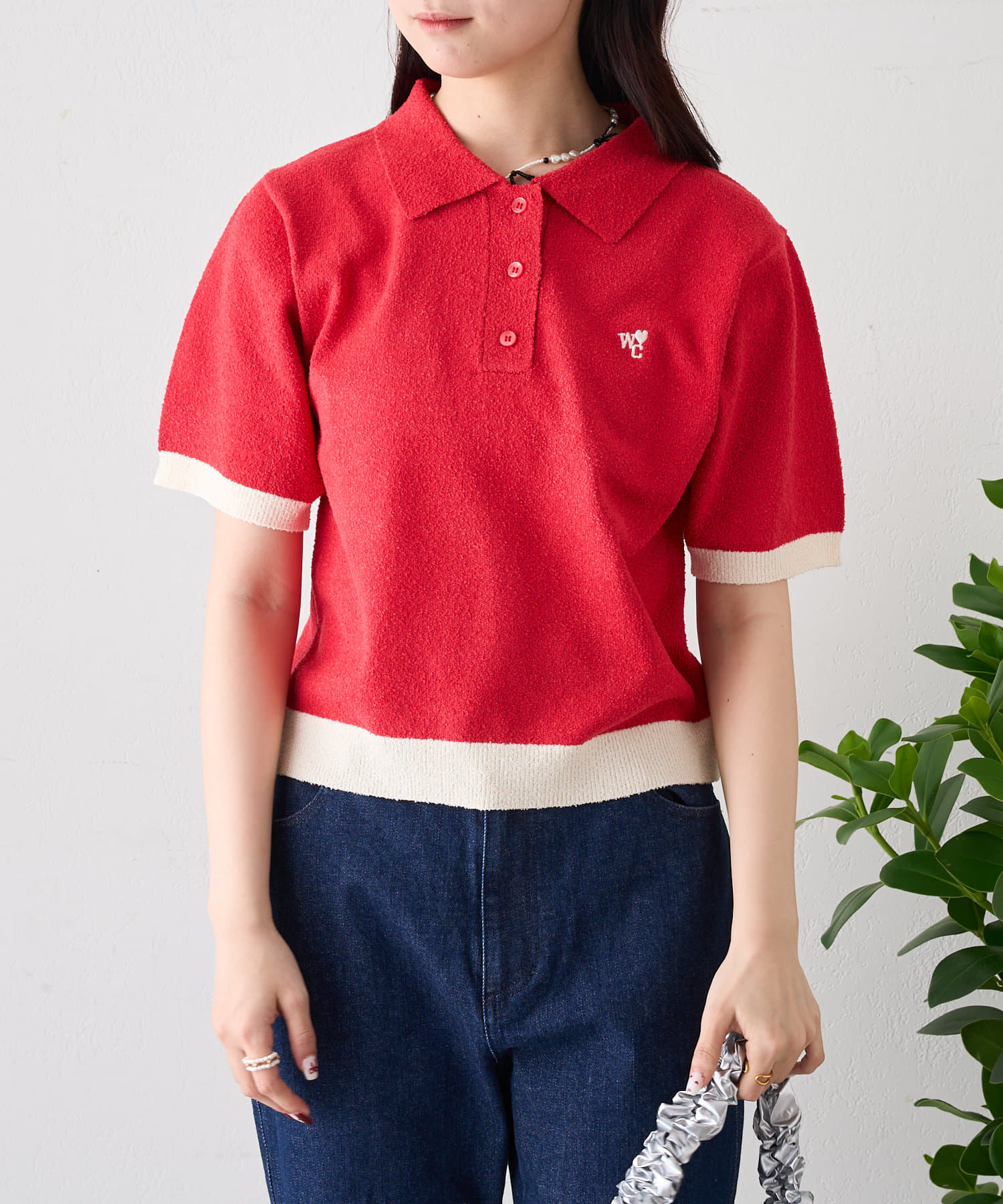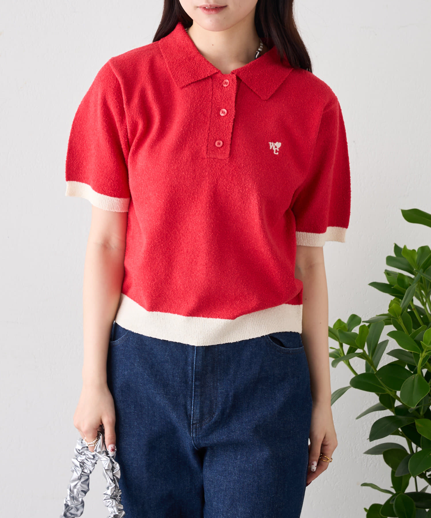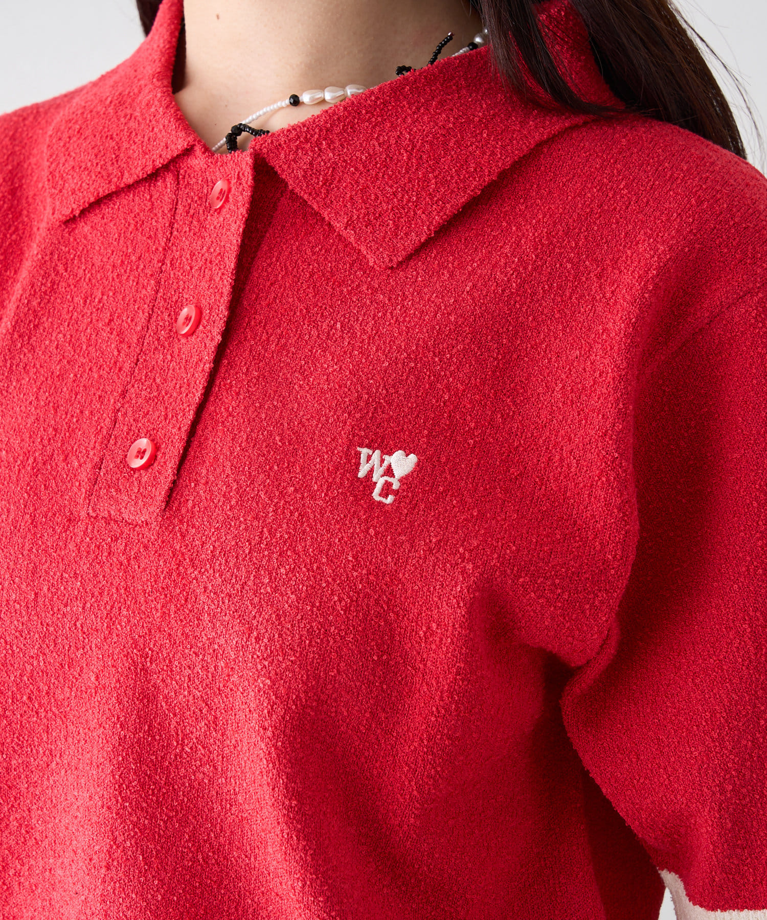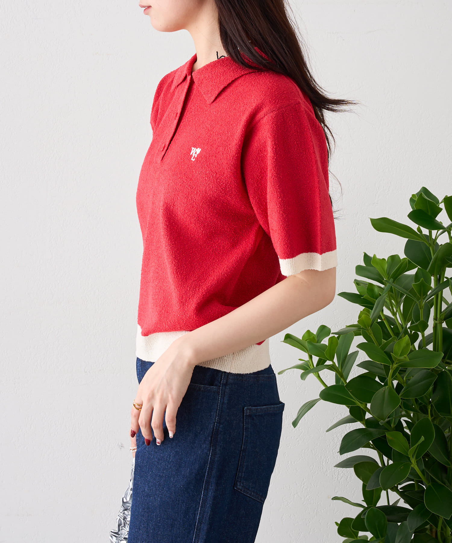半袖配色ポロニット