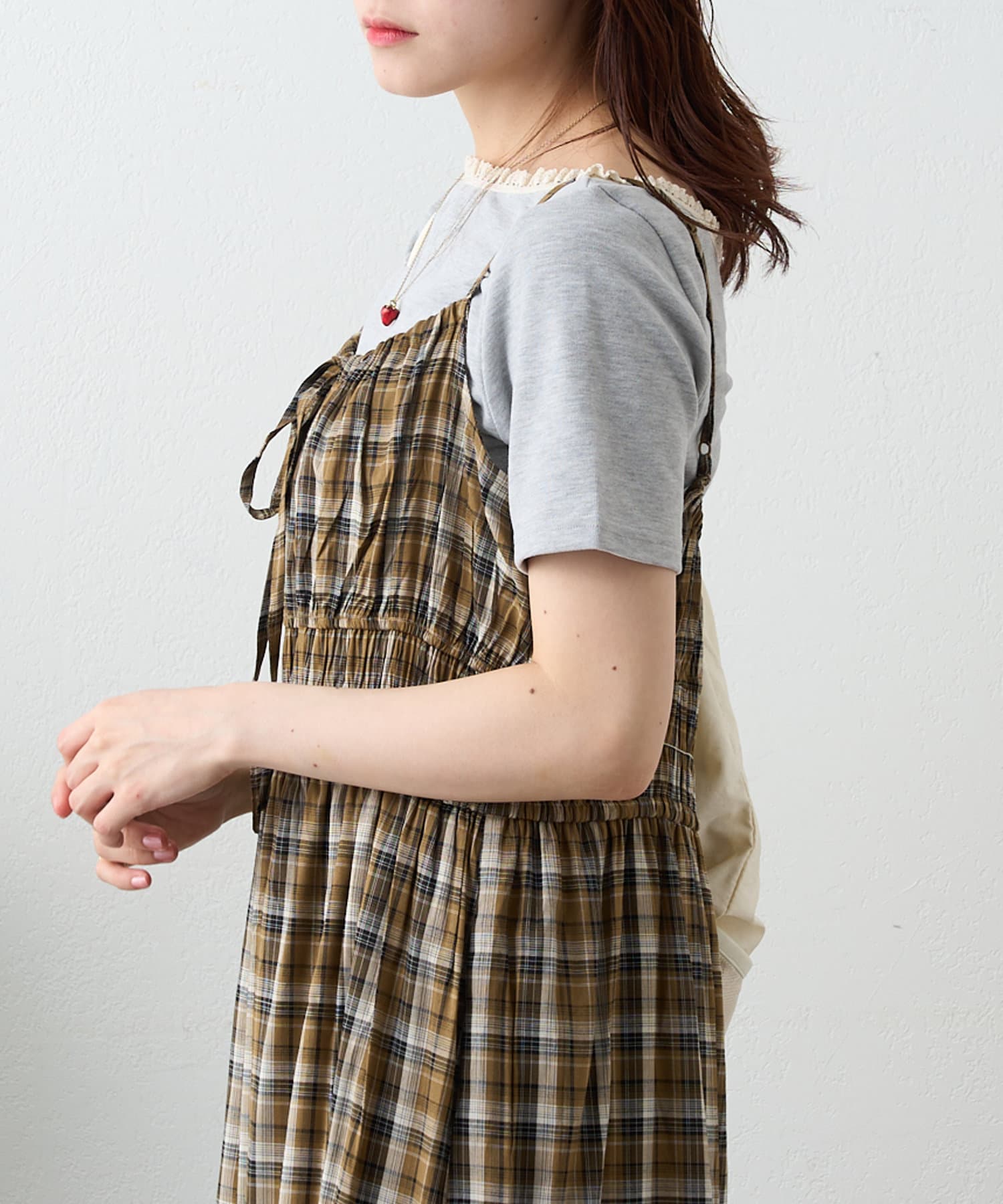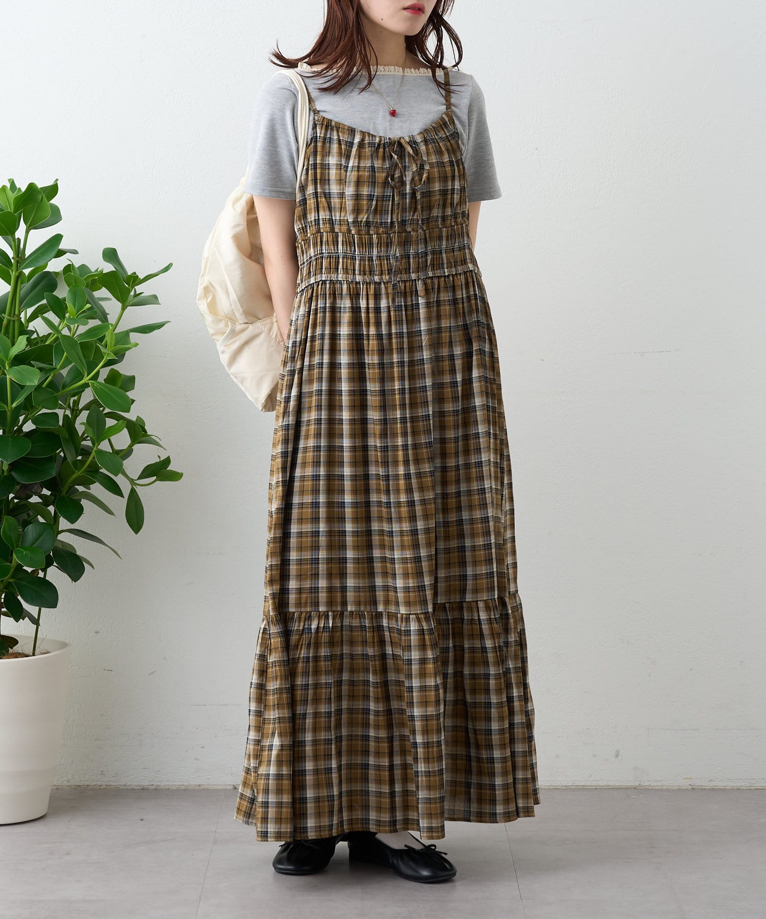 ・上からキャミワンピースを重ね、インナーとしても着用可能でコーデの幅が広がります♪